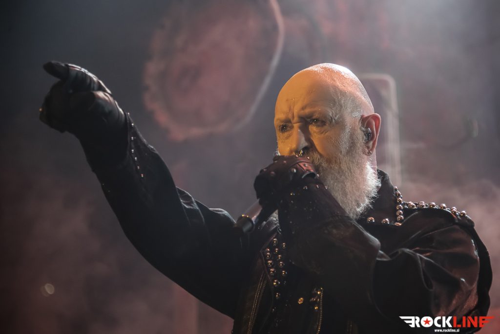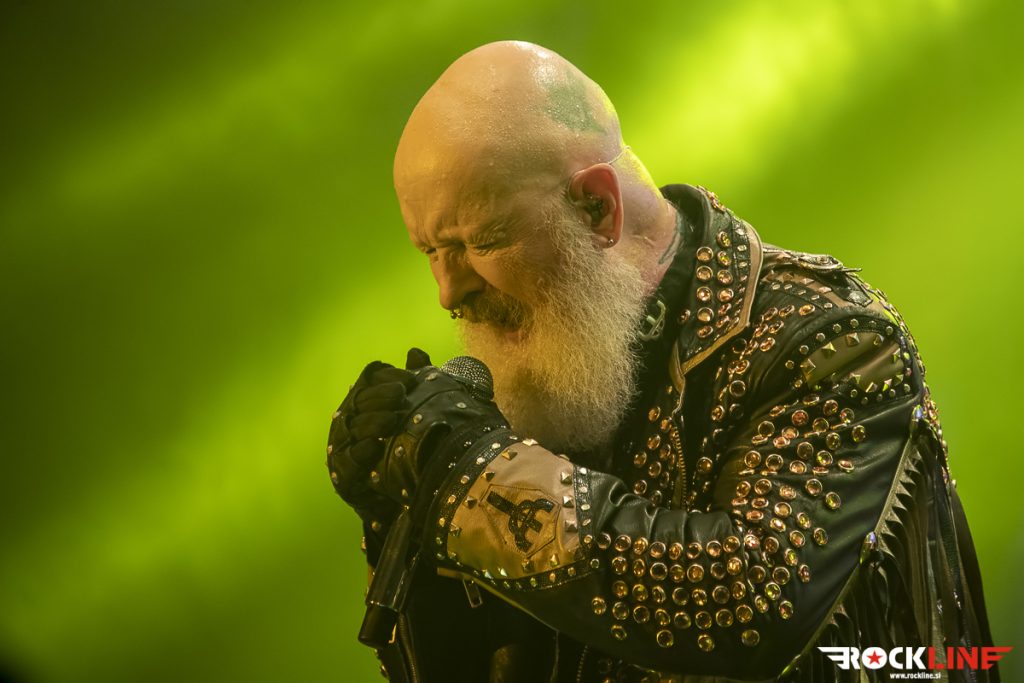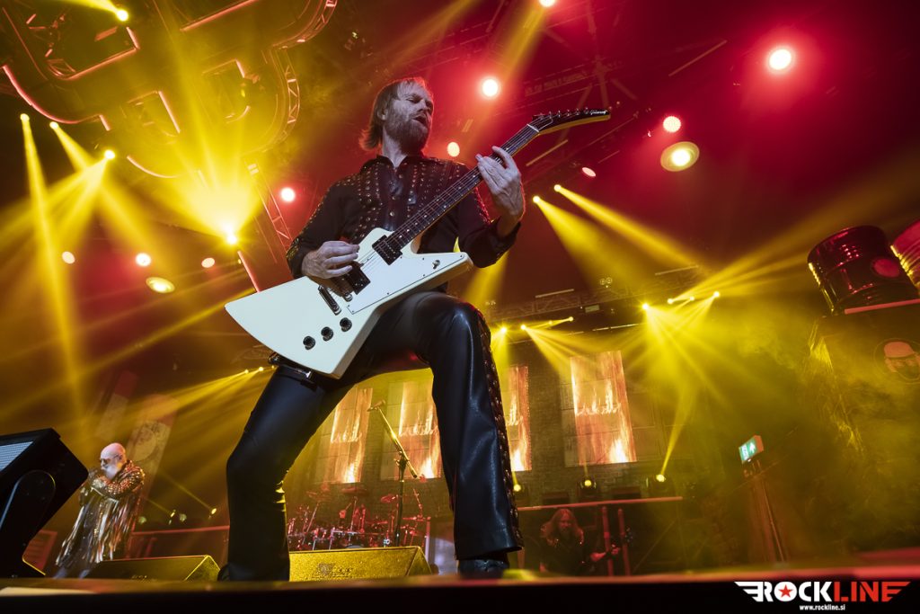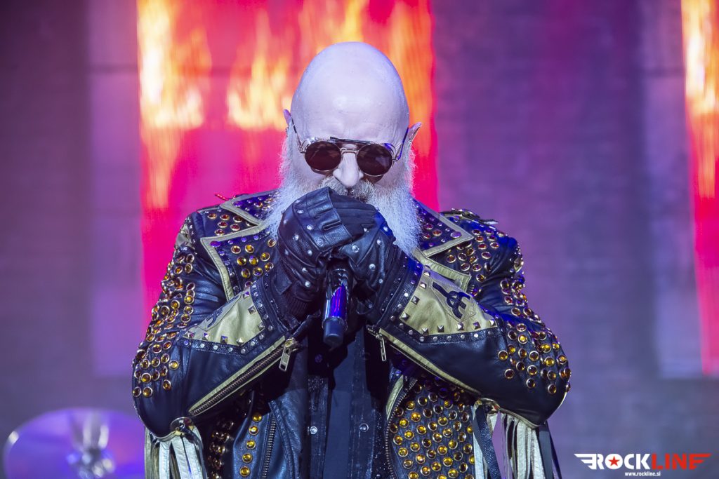 Če je dvorana med The Dead Daisies še precej samevala pa se je do devete ure zvečer že precej lepo napolnila. Povsem vrhnje tribune so bile sicer zastrte s črno ponjavo, medtem ko se je parter skorajda v celoti zapolnil, lepo število obiskovalcev pa je zasedlo tudi spodnje tribune. V dvorani je završalo, ko je iz zvočnikov zatulila Black Sabbath himna War Pigs, še bolj pa, ko se je ob zvokih Battle Hymn nad publiko spustil ogromen Judas Priest križ in z naravnost osupljivo igro svetlobnih učinkov eksplodiral ob prihodu benda na oder in ne, ni bilo mogoče verjeti, da so Judas Priest Ljubljano pozdravili prav z nadaljevanjem Battle Hymn, spregledano Painkiller čarovnijo One Shot At Glory, ki so jo sploh prvič v svoji pol stoletja dolgi karieri v živo zaigrali šele na lanskem Bloodstock festivalu. Kocine so šle ob epski Painkiller bombi pokonci v istem trenutku in tisti precej anemični in rutinski koncert z Metaldays 2018 in vse skrbi, da bi se lahko ponovil so šle hipoma v pozabo. Judas Priest so bili torkovega večera v izjemni formi in odlično razpoloženi! Tudi zvok se je po uvodnem donenju hitro precej stabiliziral in bil za stožiške razmere več kot soliden, le bas Iana Hilla je bil na trenutke nekoliko preveč izrazit in v ospredju (če je že on na odru stalno v ozadju in ves čas prikovan na isto mesto, hehe). Komaj smo si opomogli po uvodnem skoraj sedem minutnem epu, že so Priest udarili z edinim komad s še aktualnega Firepower, Lightning Strike in v vsej svoji veličastno podobi se je razbohotil osupljiv oder, ki je zgledal kot nekakšna industrijska železarna polna opozoril za nevarnost in »vstop dovoljen le pooblaščenim«, poleg tega pa je vsak komad spremljala lastna animacija na ogromnem ozadju, povrh vsega pa še osupljiv »lightshow«. Tako čudovite igre luči v Stožicah bržda še ni bilo. Najbolj prelep in čustven moment je bil vsekakor, ko se je sredi enega izmed komadov v svoji solaži pojavil kitarski bog Glenn Tipton, škoda le, da ga nismo uzrli tudi v živo.