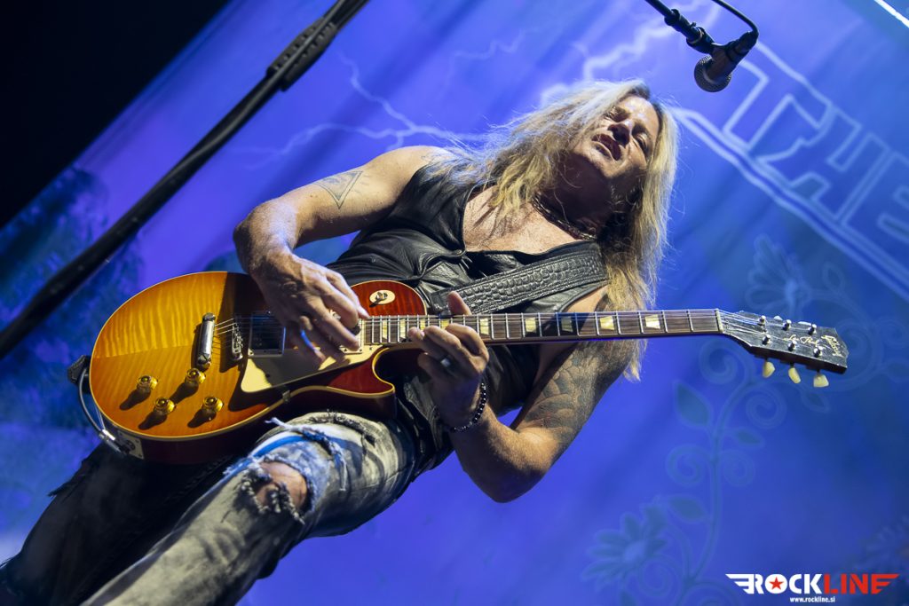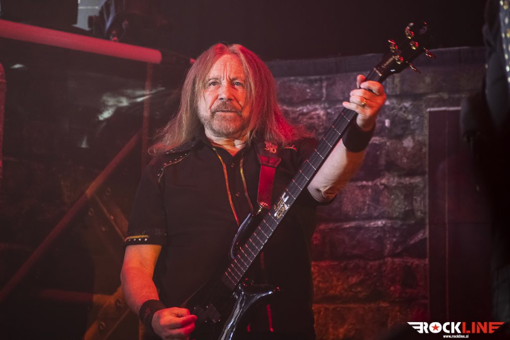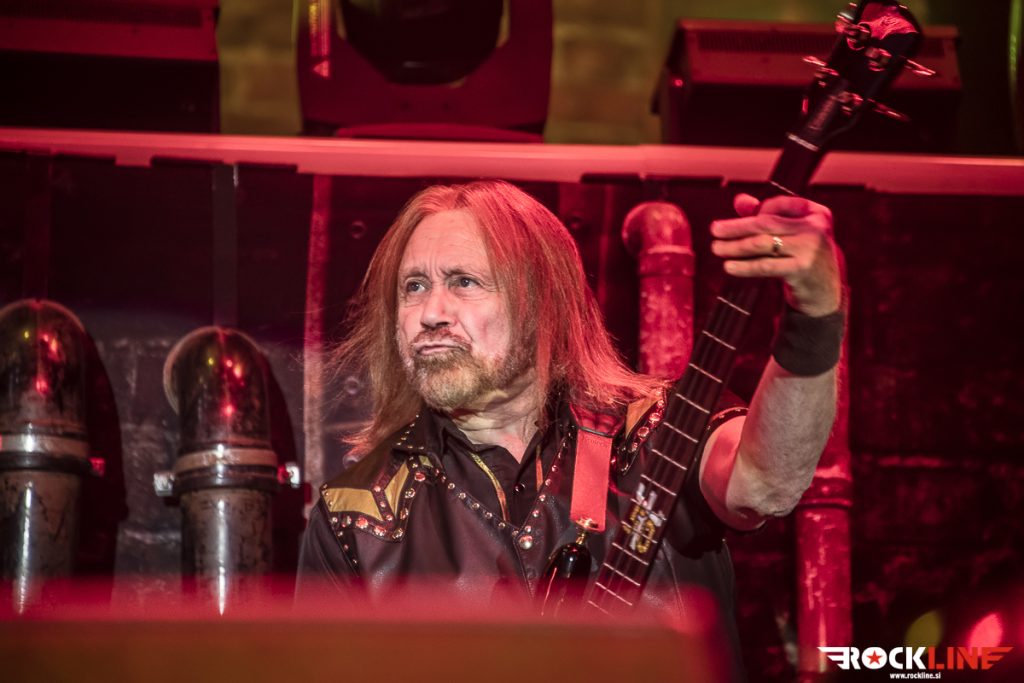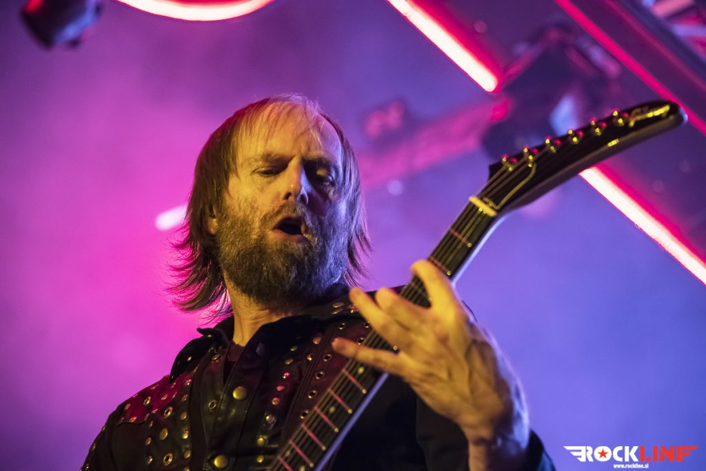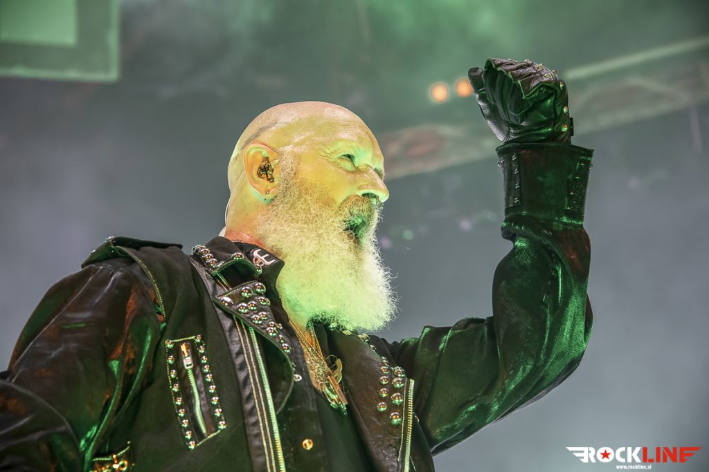 Če je dvorana med The Dead Daisies še precej samevala pa se je do devete ure zvečer že precej lepo napolnila. Povsem vrhnje tribune so bile sicer zastrte s črno ponjavo, medtem ko se je parter skorajda v celoti zapolnil, lepo število obiskovalcev pa je zasedlo tudi spodnje tribune. V dvorani je završalo, ko je iz zvočnikov zatulila Black Sabbath himna War Pigs, še bolj pa, ko se je ob zvokih Battle Hymn nad publiko spustil ogromen Judas Priest križ in z naravnost osupljivo igro svetlobnih učinkov eksplodiral ob prihodu benda na oder in ne, ni bilo mogoče verjeti, da so Judas Priest Ljubljano pozdravili prav z nadaljevanjem Battle Hymn, spregledano Painkiller čarovnijo One Shot At Glory, ki so jo sploh prvič v svoji pol stoletja dolgi karieri v živo zaigrali šele na lanskem Bloodstock festivalu. Kocine so šle ob epski Painkiller bombi pokonci v istem trenutku in tisti precej anemični in rutinski koncert z Metaldays 2018 in vse skrbi, da bi se lahko ponovil so šle hipoma v pozabo. Judas Priest so bili torkovega večera v izjemni formi in odlično razpoloženi! Tudi zvok se je po uvodnem donenju hitro precej stabiliziral in bil za stožiške razmere več kot soliden, le bas Iana Hilla je bil na trenutke nekoliko preveč izrazit in v ospredju (če je že on na odru stalno v ozadju in ves čas prikovan na isto mesto, hehe). Komaj smo si opomogli po uvodnem skoraj sedem minutnem epu, že so Priest udarili z edinim komad s še aktualnega Firepower, Lightning Strike in v vsej svoji veličastno podobi se je razbohotil osupljiv oder, ki je zgledal kot nekakšna industrijska železarna polna opozoril za nevarnost in »vstop dovoljen le pooblaščenim«, poleg tega pa je vsak komad spremljala lastna animacija na ogromnem ozadju, povrh vsega pa še osupljiv »lightshow«. Tako čudovite igre luči v Stožicah bržda še ni bilo. Najbolj prelep in čustven moment je bil vsekakor, ko se je sredi enega izmed komadov v svoji solaži pojavil kitarski bog Glenn Tipton, škoda le, da ga nismo uzrli tudi v živo.