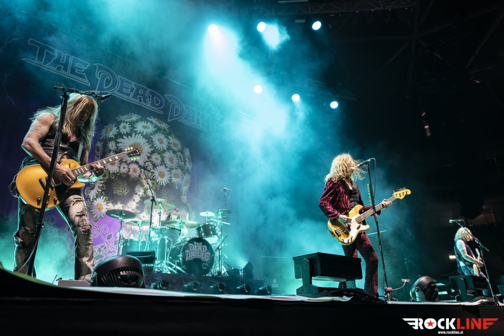 Judas Priest so za goste na tej turneji povabili rock superskupino The Dead Daisies, ki jo je leta 2013 ustanovil Avstralec David Lowy, nekakšna rock verzija Brucea Dickinsona, saj je poleg drgnjenja po šestih strunah še poslovnež in glej, glej pilot. Lowy je v The Dead Daisies v preteklih letih gostil sama imena, ki v rocku veliko štejejo (Darryl Jones, Dizzy Reed, Marco Mendoza, John Tempesta in še bi lahko naštevali), v tokratni inkarnaciji skupine pa mu pomagajo Doug Aldrich (kitara; Dio, Whitesnake), Brian Tichy (bobni; Whitesnake, Foreigner, Ozzy Osbourne) na vokalu pa nihče drug kot veliki Glenn Hughes (Deep Purple, Trapeze). The Dead Daisies so lani v tej postavi (na albumu je sicer bobnal Deen Castranovo) izdali ploščo Holy Ground in z nje je bend odigral pretežni del svojega štirideset minutnega nastopa. Žal se je znova pokazala stožiška hiba; slab zvok namreč, saj je vse skupaj zvenelo precej zamazano in doneče, kar pa se je k sreči do konca njihovega nastopa nekoliko popravilo. Kljub temu so gospodje še precej prazni dvorani pokazali pravo rock lekcijo, ki ji je kraljeval profesor rocka Hughes, osrednja figura na stožiškem odru. Neverjetno je bilo slišati kaj je iz svojega grla spravil sedemdesetletni gospod, ki se mu lahko zaradi neverjetno pestrega in vrhunsko ohranjenega vokala poklonijo tudi pol mlajši pevci. Hughes je tako kričal kot za stavo, med osupljivimi kriki poskrbel za vzdušne in čudovite vokalne linije, obenem pa še basiral kot za šalo. Aldricha je bil med številnimi solažami oder poln vsepovsod, tudi Tichy pa je navdušil s topovskimi salvami izza svoje baterije med katere je vpel precej pozerskega metanja in lovljenja bobnarskih paličic po zraku, s čimer je poskrbel za pravi šov. Hughes se je proti koncu seta skromno in ponižno zahvalil Judas Priest, da so jih vzeli s seboj na turnejo, nato pa so Marjetice Stožice za konec poteptale z večno Deep Purple klasiko Burn, med katero je Glenn Hughes še zadnjič upravičil svoj vzdevek The Voice of Rock.