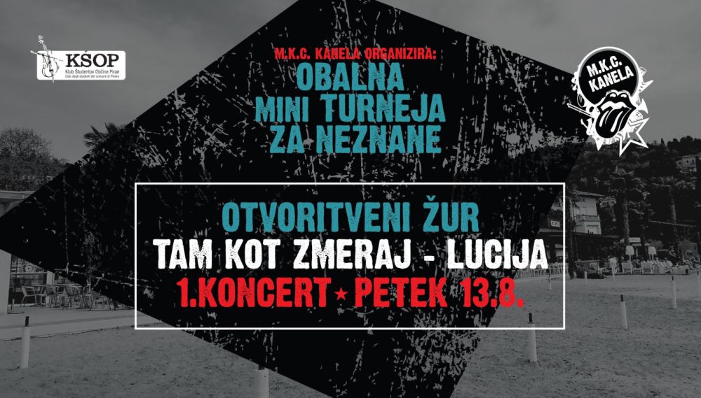 Prvi večer bo že ta petek, trinajsti petek v avgustu, v lokalu Tam kot zmeraj v Luciji, kjer M.K.C. Kanela v sodelovanju s Klubom študentom občine Piran pripravlja predstavitev vseh prijavljenih, pogostitev in predstavitev M.K.C. Kanele. Nanj vabijo tudi klube študentov drugih občin, da skupaj ustvarijo nekakšno ‘mikro Škisovo tržnico’, na kateri bodo študentje lahko igrali odbojko, se udeležili badminton turnirja ali drugih zabavnih iger in prejeli nagrade za sodelovanje. Ponosno tudi sporočajo, da so za otvoritveni žur uredili mobilno enoto za brezplačno testiranje. Pridete na dogodek, se brezplačno testirate in takoj dobite potrdilo.