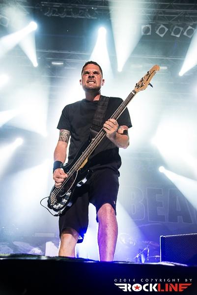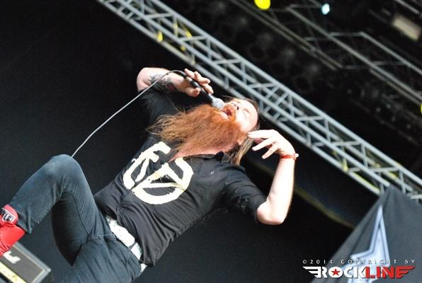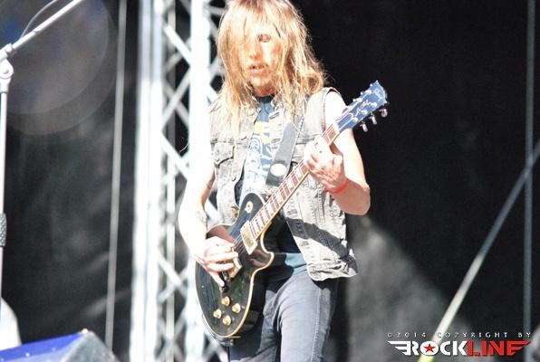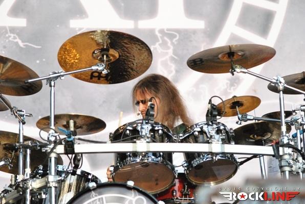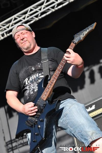 Legendarni danski thrasherji Artillery so zgodaj znašli odru. No lanskoletni izdaji Bang You Head festivala v nemškem Balingenu, so nastopili reci in piši malo preko desete ure dopoldan. Torej učna ura skandinavskih veteranov evro thrash metala katerih vajeti držita še vedno trdno v rokah skupaj brata in kitarista Morten ter Michael Stützer. V ekipi se drži na bas kitari še vedno Peter Thorslund, ki se je skupini pridružil že leta 1989, ko je Morten presedlal iz igranja bas kitare na kitaro. Postavo zapolnjujeta mlajša člana ekipe in sicer bobnar Joshua Madsen ter vokalist Michael Bastholm Dahl, ki se je po nekaj rokadah zasedbe pri iskanju ustreznega vokalista, za Artillery izkazal naposled, kot mož iz pravega testa. To je Michael z odlično predstavo potrdil tudi v Tolminu! Novi album z naslovom »Legions« je izšel v lanskem novembru in bend je postregel množici sredi (ohoho!!!!) še vedno sončnega vremena z naslovno skladbo, nadalje otvoritveno Chill My Bones (Burn My Flesh) ter God Feather. Seveda so sladokusci prišli na svoj račun v nadaljevanju 50. minutne fantastične predstave, ko je bend postreljal nekaj klasičnih projektilov iz svoje konkretno otipljive diskografske zapuščine! V nadaljevanju smo uživali v ostrem, brezkompromisnem mitraljiranju, ko je bend divjal s skladbami 10.000 Devils, By Inheritance, When Death Comes, Khomaniac, The Challenge in sklenil (nekako pričakovano) nastop z razvpitima šrapneloma Terror Squad ter The Almighty. Strupeno in rušilno! Artillery ostaja tudi na zrela leta blazna beštija žejna krvi!