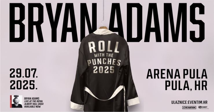 Bryan Adams, katerega hiti so zaznamovali generacije in osvojili srca širom sveta, bo v sklopu svetovne turneje “Roll with the Punches” izvedel koncert v ambientu puljskega Amfiteatra, ki je napovedan 29. julija 2025.