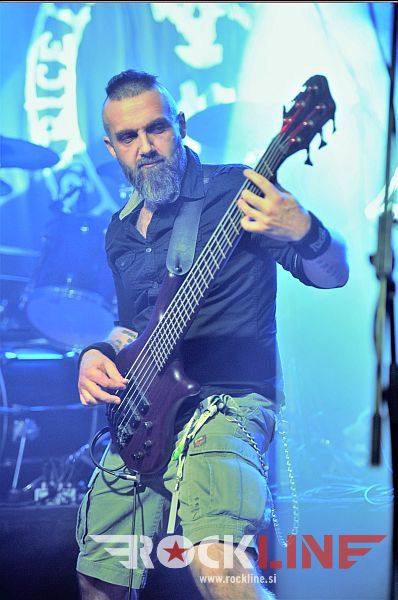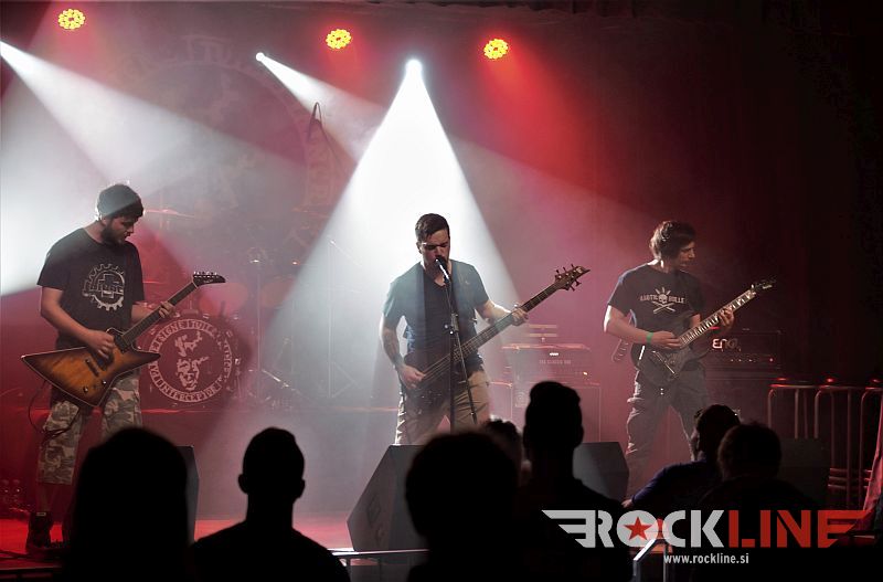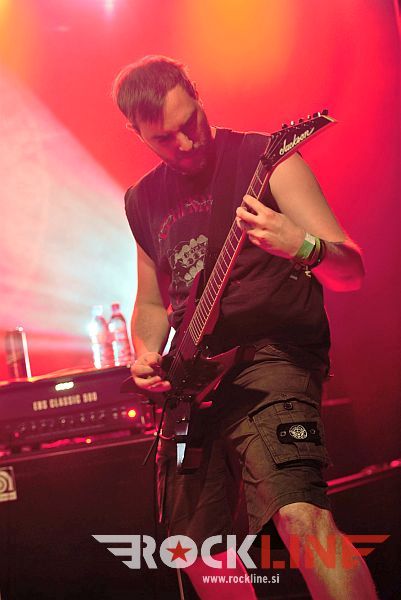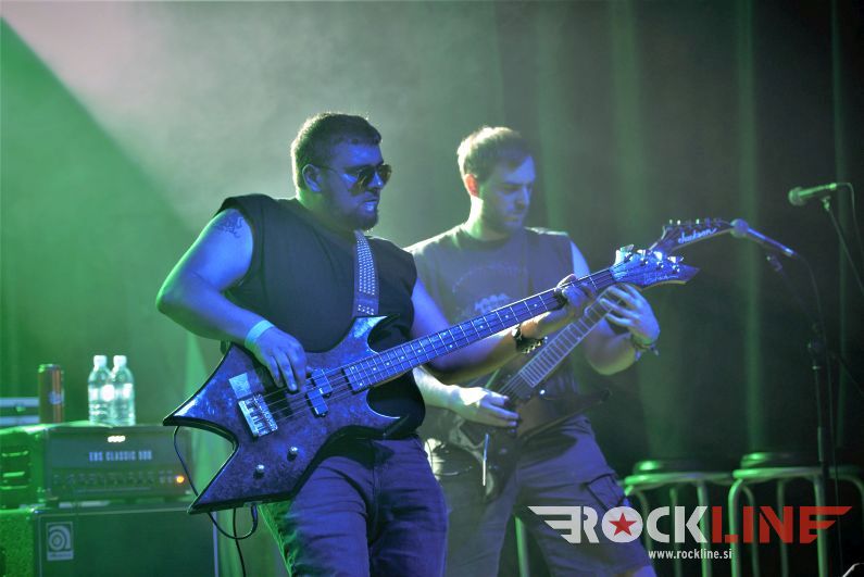 No tisto nehvaležno vlogo, pa so tokrat morali odigrati novorojeni blackmetalci Marax. Gre za kvartet, ki nosi v svojih vrstah ženski black metal vokal pevke Anin. Tu je tudi Cordurin Tim Draksler, ki je nekoč pomagal pri Interceptor, kot je Bagarič pri njegovi Corduri in ga ob sicer krepostnih corpse paintingsih, po značilni pojavi, drži kitare in bradici, ni bilo težko prepoznati. Bend je odigral svoj EP »The Abyss Of Illusion«, ki je izšel sredi aprila letos in ga pravzaprav premierno predstavil v živo. Kot ne-ekspert za black metal težko ocenim, kam bi slogovno vtaknili skupino, gotovo pa je, da jemlje navdih nad bogato skandinavsko falango in zapuščino tovrstnih glasbenih viž, na čelu z Dimmu Borgir, Old Man’s Child, utrnila se je asociacija na projekt Covenant. Bend je kulise konkrektiziral z nasnetimi zavesami sintetizatorjev in orkestracij, izkazal lep nivo kompleksnosti v komponiranju, tudi lepo mero teatralnosti, za kar je skrbela Anin. Mračnjaki torej. Škoda, da je bila faza čakanja zelo dolga. Mislim, da skoraj tričetrt ure. Publika je v tem času (do koncerta) bistveno omagala pod težo prebitka alkoholnih derivatov, prav tako pa se je število poslušalcev v urah, ki so se krepko nagibale v jutro, tudi povsem zdesetkalo. Škoda za skupino. A vsak začetek je težji, kot bi si želel. Bend je pritaknil h koncertu tudi nekaj priredb svojih vzornikov ter tako le spravil skupaj 40. minut nastopa. Gotovo skupina,ki je vredna vse pozornosti Ne le zavoljo tega, da goji samosvojo glasbeno figuro a v black metalu, pač pa tudi zaradi pevke Anin, ki je gotovo posebnost skupine.