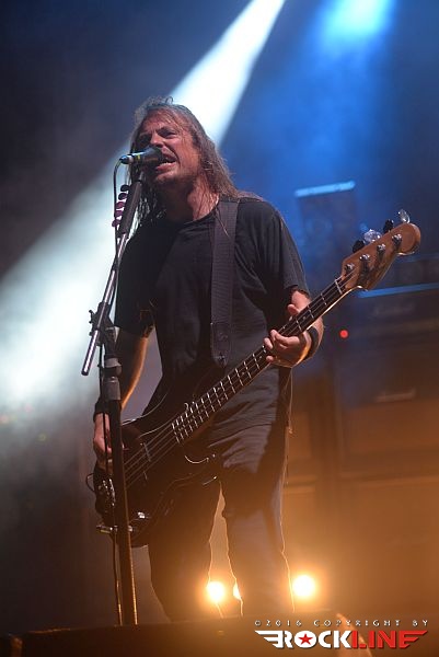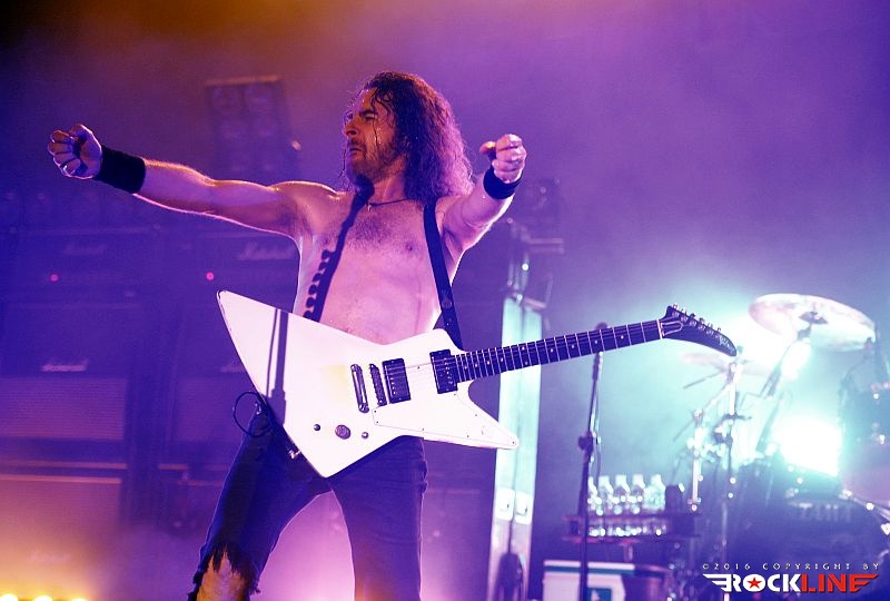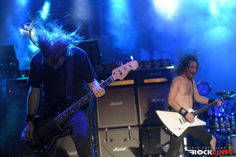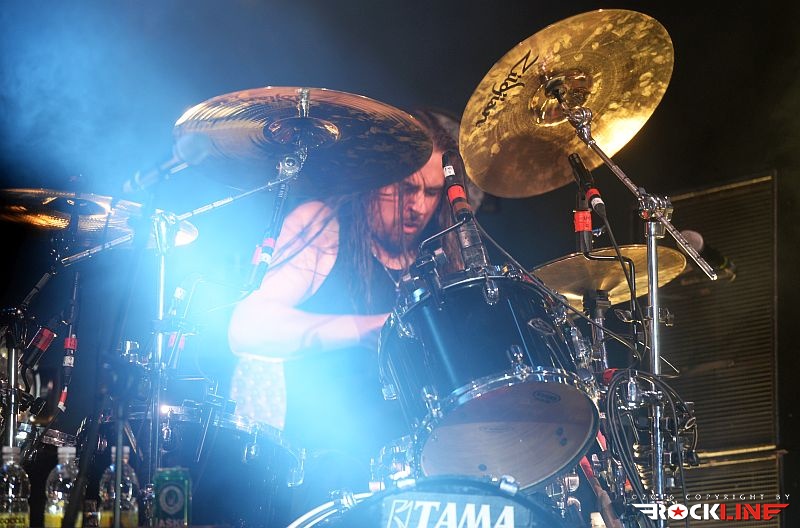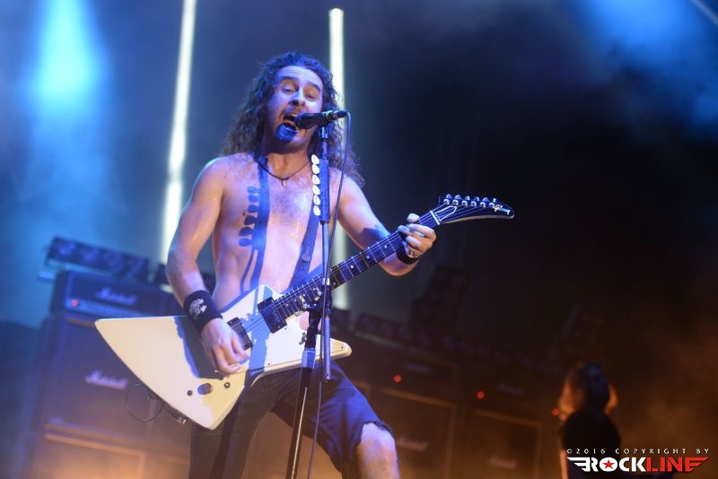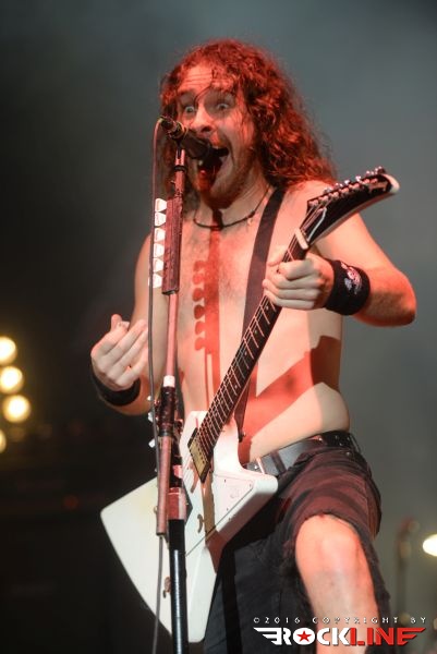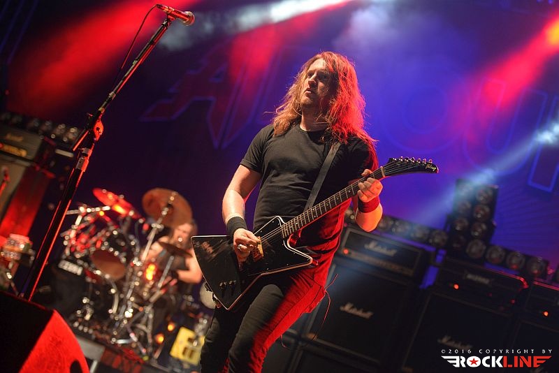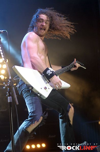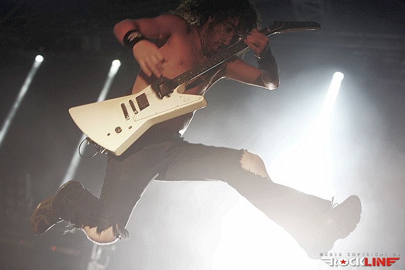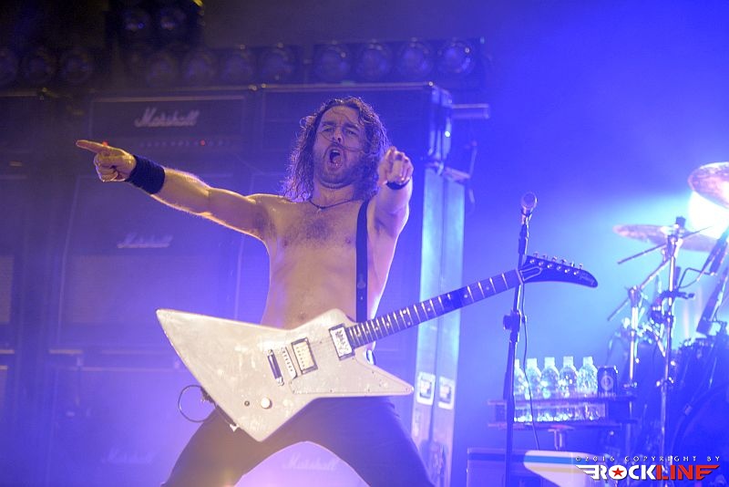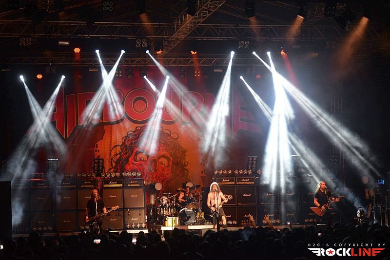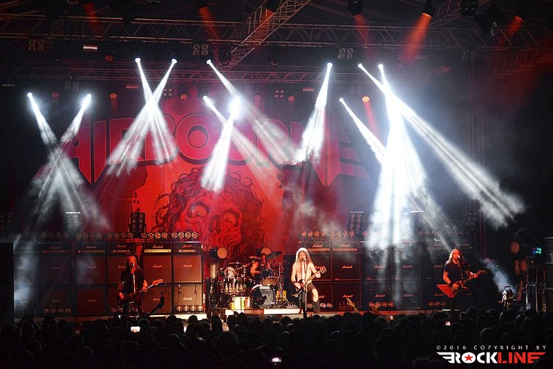 Ob pol desetih zvečer pa so se oder odločili razrušiti Airbourne. Ta bend ni le bend glasnikov nove rock’n’roll generacije, pač pa tudi nadvse dober obliž (vsaj delne) tolažbe vsem tistim, ki se vam posluša v živo AC/DC, pa žal tega (zelo verjetno) ne boste (nikdar več) dočakali. Tudi lep obisk iz Slovenije, še zlasti z goriškega konca, je pozdravil klene Avstralce ob prihodu na oder. Seveda so bile vse oči uprte v neverjetnega Joela O’Keeffeja. Ob tem ni presenečalo spoznanje, da je glavni reflektor z belo svetlobo skozi koncert lovil le njega. Je dejansko glavni vezni člen ekipe, ki drži Airbourne pokonci. Pravi odrski peklenšček stresa vseskozi neverjetne kvante energije! Preznojil je, kar se preznojiti da. Odpel je še en koncert na izredno visokem nivoju, s peresno lahkoto in prodorno kričavostjo, ki pa premore iztisniti le nekaj več nižjih linij kot njegova vzornika Bon Scott in Brian Johnson. Togotni in razkačeni mož je ob tem soliral in držal publiko z nenehnimi komentarji čvrsto ob sebi. Dejansko se je prav vse vrtelo okrog njega. Arena Alpe Adria je bila tega večera komaj do polovice zapolnjena, recimo da je bilo v njej kakih 700 obiskovalcev, vseeno pa ob tem lep sveženj najbolj razgretih, ki so burno sodelovali s skupino. Temu primerno so se tresle prve vrste zlasti ob nezlomljivih hitih skupine, to je zaključni Runnin’ Wild, Live It Up, It’s All For Rock’N’Roll (to je Joel posvetil Lemmyju – slednji je namreč sodeloval v video za to skladbo skupine), No Way But The Hard Way in Stand Up For Rock ‘N’ Roll. Obenem ni izostal teater z orjaškim reflektorjem, s katerim je Joel svetil po publiki ter navijanje zračne sirene ob uvodu v obvezni dodatek, za kar je poskrbel Joelov brat in bobnar skupine Ryan O’Keeffe .