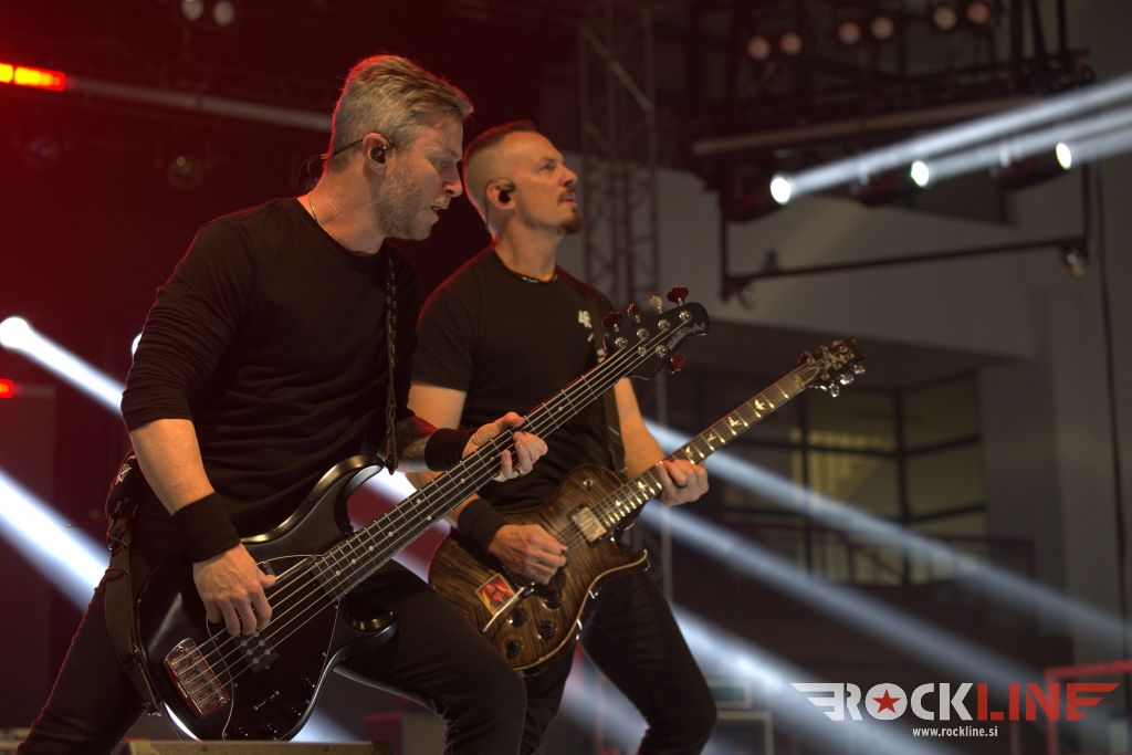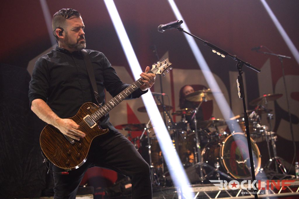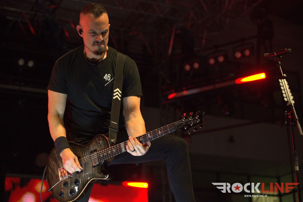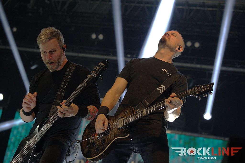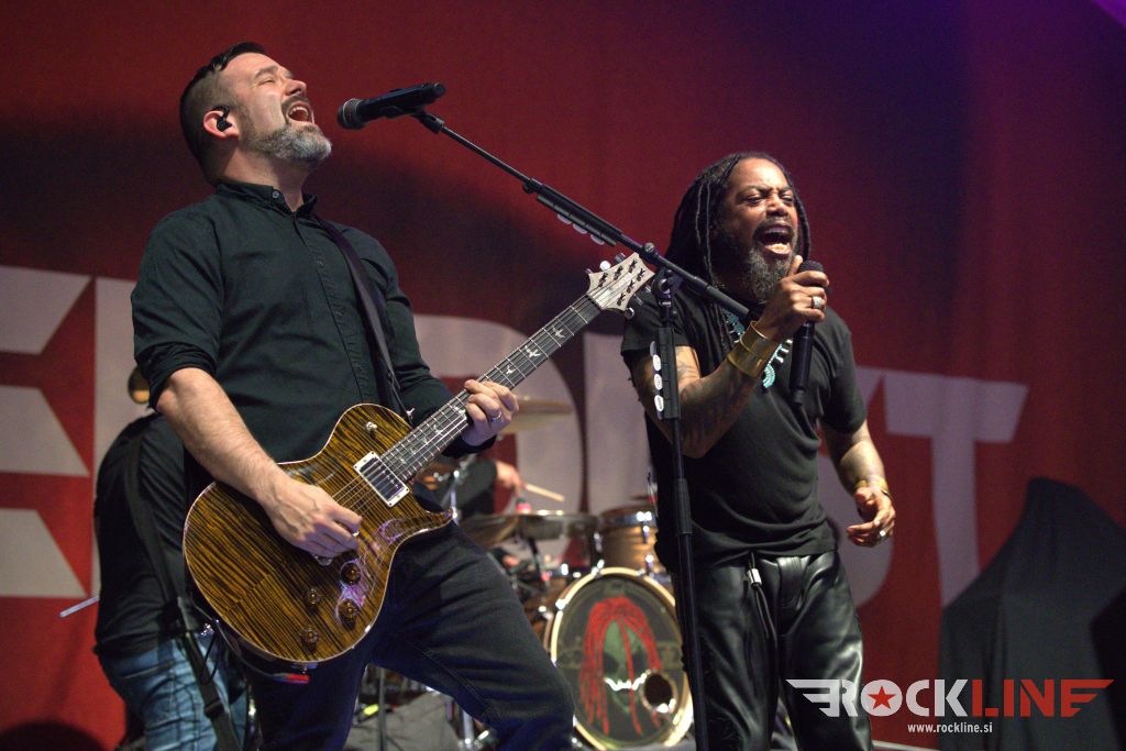 Petnajsti minut preko sedme so na oder vskočili veterani Sevendust. Bend, ki se je pojavil po valu grungea in bend, ki je v tistem času modno združil klasični metal z vplivi grungea, hip-hopa in funka, zaradi česar so jih hitro umestili v linijo novega trenda imenovanega nu-metal. Sevendust krasi dejstvo, da drži skupino vseskozi enaka postava. Kvintet je v dolgoživi karieri izdal že 14. studijskih albumov, novega “One” pa napovedal v začetku letošnjega maja! V pol ure so razbili. Po pričakovanju! Lajon ostaja nor frontman! Poleg strupenega vokalnega performansa, je z dodatnimi triki skrbel vseskozi za izjemno dobro razpoloženje in s karizmo hitro priklenil publiko nase. Bend je razbeljen in v odlični formi. Ekstravagantni bobnar Morgan Rose z obrazno poslikavo je divjal po svojem setu, bend pa je dostavil izjemno uigran set, prelit z visoko oktanskim izgorevanjem, skozi katerega si zaznal neverjetno ubrano kitarsko fraziranje, ki je delovalo kot bomba ultimativne nepokorščine. Sevendust so perfektno so dvignili kvišku publiko in pol ure je bilo definitivno premalo za druženje! Koncert so odprli s prastaro Black – debitantskim singlom iz istoimenskega prvenca, ki je hkrati prinesel skupini preboj. Komad, ki ne sme manjkati! V repertoar so vpeli tudi povsem novo skladbo Is This The Real You iz prihajajočega albuma “One”, medtem ko je preostanek minutaže zabelil material kultnih albumov “Animosity” (2001) in “Seasons” (2003). Kilometrine, izkušnje! Človek bi si želel ujeti to skupino na samostojnem špilu, za kar pa bi bil potreben prekooceanski let!