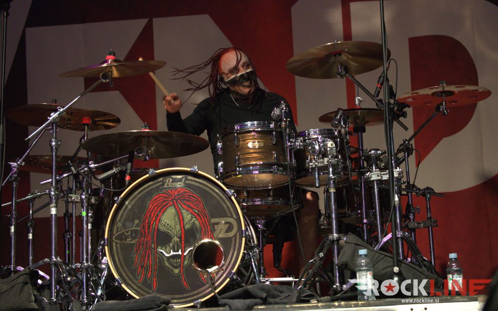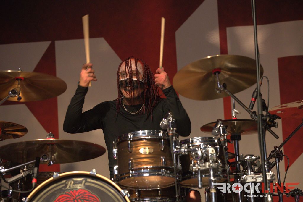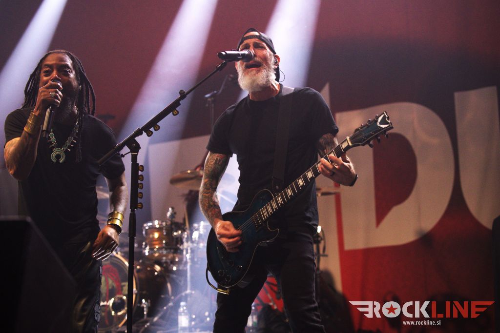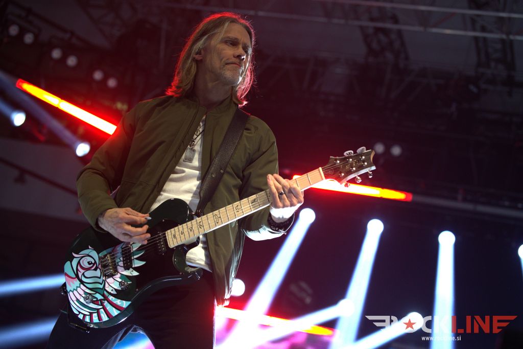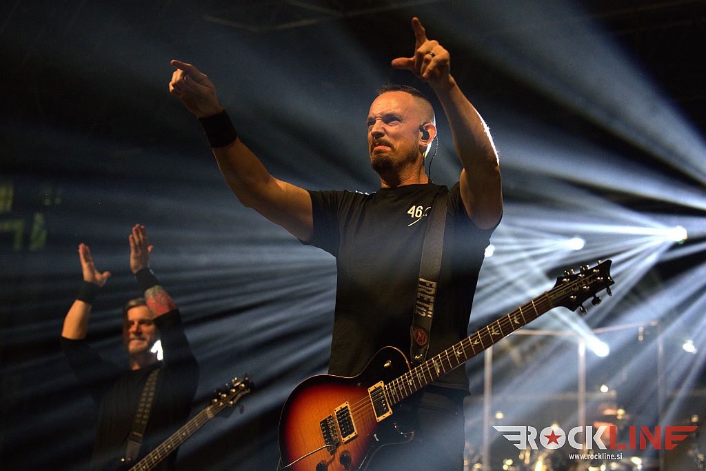 Petnajsti minut preko sedme so na oder vskočili veterani Sevendust. Bend, ki se je pojavil po valu grungea in bend, ki je v tistem času modno združil klasični metal z vplivi grungea, hip-hopa in funka, zaradi česar so jih hitro umestili v linijo novega trenda imenovanega nu-metal. Sevendust krasi dejstvo, da drži skupino vseskozi enaka postava. Kvintet je v dolgoživi karieri izdal že 14. studijskih albumov, novega “One” pa napovedal v začetku letošnjega maja! V pol ure so razbili. Po pričakovanju! Lajon ostaja nor frontman! Poleg strupenega vokalnega performansa, je z dodatnimi triki skrbel vseskozi za izjemno dobro razpoloženje in s karizmo hitro priklenil publiko nase. Bend je razbeljen in v odlični formi. Ekstravagantni bobnar Morgan Rose z obrazno poslikavo je divjal po svojem setu, bend pa je dostavil izjemno uigran set, prelit z visoko oktanskim izgorevanjem, skozi katerega si zaznal neverjetno ubrano kitarsko fraziranje, ki je delovalo kot bomba ultimativne nepokorščine. Sevendust so perfektno so dvignili kvišku publiko in pol ure je bilo definitivno premalo za druženje! Koncert so odprli s prastaro Black – debitantskim singlom iz istoimenskega prvenca, ki je hkrati prinesel skupini preboj. Komad, ki ne sme manjkati! V repertoar so vpeli tudi povsem novo skladbo Is This The Real You iz prihajajočega albuma “One”, medtem ko je preostanek minutaže zabelil material kultnih albumov “Animosity” (2001) in “Seasons” (2003). Kilometrine, izkušnje! Človek bi si želel ujeti to skupino na samostojnem špilu, za kar pa bi bil potreben prekooceanski let!