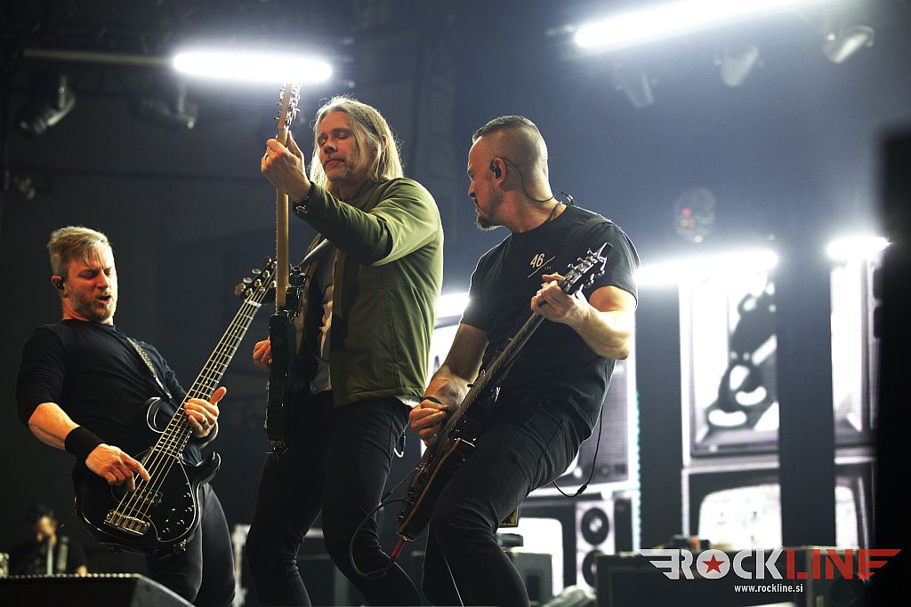 Ob strupenem groovu in grabežljivi zvočni plazovitosti, po čemer slovi ime Alter Bridge, ostaja od nekdaj osnovno vodilo skupine tudi prefinjena dostava bombastike refrenskih napevov, ki hipoma zlezejo pod kožo. Natanko takšna je bila tudi serija preostalih komadov na repertoarju. Zato niti ne čudijo pretekla druženja skupine s simfoničnim orkestrom. Gre namreč za kompozicije, ki jim ne moreš odvzeti ničesar. Pa tudi dodati ne. Zato je koncert tekel naglo in z izjemno intenzivnostjo. Energija je bila briljantna. Kamorkoli si se uzrl je vladalo absolutno navdušenje. In Alter Bridge so se odlično počutili. Zato so dostavili še tisto dodatno piko na i, ko ne govoriš le o koncertni rutini, pač pa ko lahko sleherno sekundo opazuješ kako skupina s polnim zamahom uživa v vsem kar počne na odru. Dramatična nova What Lies Within in za njo še naslovna “Fortress” klasika – magija ne popušča. Slednjo je bend po več letih znova uvrstil v koncertni repertoar. Narod v vzmetenju poskakuje in ekstatično obvladuje tudi besedila (zlasti prva polovica dvorana je bila skrajno naelektrena). Prav v finalnem delu nastopa je v tem oziru slikovito zgodbo pričarala akustična “Blackbird” balada Watch Over You, kjer je cela dvorana spremljala Mylesov tankočutni vokal.