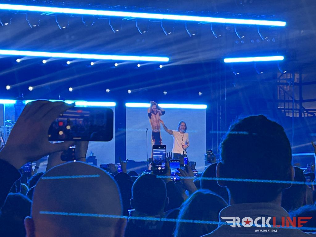 Daughtry je skupina, za katero stoji lik izjemnega vokalista Chrisa Daughtryja. Potem, ko se je uspel prebiti med najboljše štiri v peti sezoni ameriške bitke talentov in po kopici priredb znanih izvajalcev v katerih je navduševal s svojim vokalom, je njegova cena že na začetku kariere skokovito rasla. Zato je tudi ustanovil zasedbo in se že z istoimenskim prvencem odkatapultiral med komercialno najbolj vroče izvajalce nove ere. Daughtry so igrali tri četrt ure. V repertoarju so dominiral komadi obeh nedavno izdanih “Shock To The System” EP-jev, ki so jih Daughtry izdajali posamično in so se v zadnjih dveh letih zlasti med ameriško publiko zelo dobro prijeli. Bend je v začetnem delu nanizal zapovrstjo tri najnovejše single iz drugega “Shock The System” EP-ja (Divided, The Bottom, The Day I Die), ki nakazuje tendenco po usmerjanju skupine v trše, bolj nažigaške sfere! Masiven, nižje uglašen zvok! Chris pa v središču. Človek res uživa v kameleonstvu njegovega vokalnega performansa. Singli spevni. Drug za drugim, vsak z izplenom visoko muzikalne estetike, ki grabi k petju. Himnično, bombastično in pretežno v srednje hitro odmerjenem tempu. Možakar je od nekdaj presenečal z izbiro adaptacij izvirnikov. No, pred kratkim je presenetil tudi z adaptacijo komada, ki pripada v izvirniku slovitim AOR pionirjem iz San Francisca Journey, ko se je lotil njihovega zimzelena Separate Ways (Worlds Apart). Ta klasike je strahovito fantastično dobro funkcionirala v repertoarju tudi v Zagrebu! Moment, ki je spravil k petju tudi peščico stricev, ki s(m)o v osemdesetih rasli gor s to glasbo. Folk je obračal glave medtem ko sem se drl na pamet verze tega komada. Normalno, v Boćarski dom sem tega večera definitivno padel z drugega planeta! Tu sta obvezno uspešnici s prvenca “Daughtry” It’s Not Over in Home, ki jo je Chris izvedel sam, v akustični verziji. Po Heavy Is The Crown (album “Dearly Beloved”, 2021) je bend imel dovolj časa, da izvede tudi teatralni bis (navadno tega od predskupine ne pričakuješ), ko se je vrnil še z enim novejšim singlom Artifical in potrdil svoje vrhunstvo. Uigranost, zvok, sodelovanje s publiko. Popolna perfekcija.