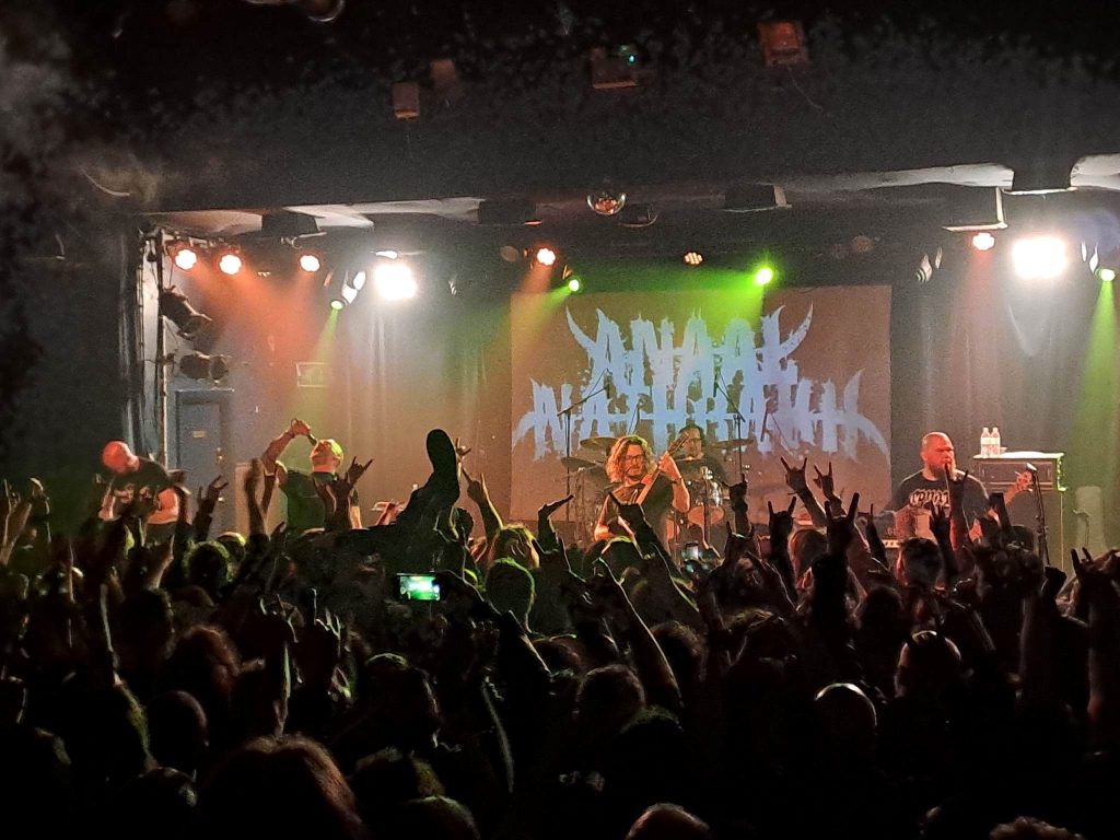 Naj bo glede koncerta Anaal Nathrakh jasno kar na začetku. Še pomnite tistega kultnega prizora z eksplodirajočo glavo iz Cronenbergove packarije Scanners? Ali pa Monty Python skeča Mr. Creosote in kot rezina tanko metino čokoladico? Ali pa posnetkov eksplozij jedrskih bomb? No, natančno tak je bil koncert Anaal Nathrakh v razprodani londonski Scali in natančno tak učinek je imel koncert na ušesa in druga čutila vseh zbranih v napolnjeni dvorani. Dave Hunt je v novi inkarnaciji ob sebi zbral Dana Abelo (bas; Voices), Davida Graya (bobni; Akercocke, Voices), Sama Loynesa (kitara; Akercocke) (in še enega kitarista, čigar ime mi je žal ušlo) in novo postavo imenoval zgolj kot »eksperiment« katerega prihodnost (še) ni jasna. In hudiča, kakšen eksperiment je bil to! Da se bo zgodilo nekaj zares velikega in kaotičnega je tako napovedal že intro Acheronta Movebimus s svojim počasi se stopnjujočim vzdušjem, s katerim je premosorazmerno rasla tudi v napetost v dvorani. Ta je eksplodirala, ko je na oder kot boksar v ring priletel Hunt in bend popeljal v furiozno izvedbo Unleash, celotna zasedba pa je, kljub manjšim začetnim kiksom dokazala, da ne gre za nikakršen eksperiment, temveč za zasedbo, ki je zgledala in zvenela kot, da skupaj igra že leta. Hunt je s svojo prezenco dvorano v hipu spravil v ekstatično gibanje sorodno tornadu, saj pod odrom kar ni bilo videti konca moshanju in crowd surfanju, umanjkal pa ni niti masiven wall of death. Čeprav je opozoril, da ne bo čustven oz. »touchy feely«, kar seveda ne pritiče bendu, ki razgalja vse najbolj temne plati človeštva, pa se je Hunt vseeno vidno presenečen in srečen nad odzivom publike le-tej ves čas zahvaljeval s »cheers« in vseeno dal kanček upanja, da Anaal Nathrakh vendarle še niso rekli zadnje besede. Hunt je razložil tudi Kenneyjevo odsotnost, saj se je ta med pandemijo preselil v ZDA in zaradi obilice producentskega dela ne more več niti zapustiti hiše, nato pa popeljal naprej v pravi blitzkrieg unikatne zmesi black metal kaosa, industrial štancanja in death/grind brutalnost, podprte z odlično vokalno izvedbo v kateri je seveda prednjačil Hunt, ob izdatni in suvereni podpori Abele in Loynesa. O izboru komadov niti ne gre izgubljati besed, saj so fantje predstavili čudovit diskografski presek, kjer je težko izbrati favorite. A nepozabni so zveneli nečloveški kriki v londonsko noč Bellum Omnium Contra Omnes (ki opisuje filozofije Thomasa Hobbesa o naravnem stanju družbe kot »vojne vseh proti vsem«), Between Shit and Piss We Are Born, najbolj surovo zveneč komad večera Submission Is for the Weak z mayhemovsko zvenečega prvenca The Codex Necro, prvosvetovne protivojne epopeje Forward! ter prvič v živo odigranih Libidinous (A Pig With Cocks in Its Eyes) s halfordovsko odkričanim refrenom ter naslovnim komadov aktualne plošče Endarkenment. Ah, res težko je ubesediti kaj so Anaal Nathrakh pričarali v Londonu in edini minus koncerta je bil res njegov prehitri konec, saj fantje ne serjejo z raznimi dodatki, temveč publiko poteptajo brez pavz, kot tudi tokrat z epskim Forging Towards the Sunset ter zaključnim Do Not Speak, ki ga je Hunt napovedal z znanim Orwellovim citatom iz 1984: »If you want a picture of the future, imagine a boot stamping on a human face – for ever«. Točno tako so nas z nepozabno predstavo tistega večera poteptali in v pulpo spremenili Anaal Nathrakh.