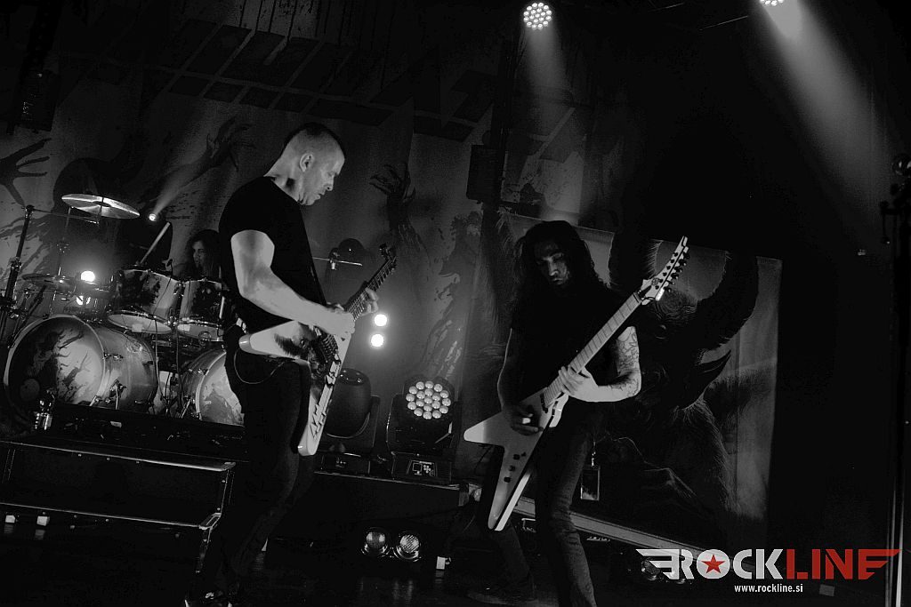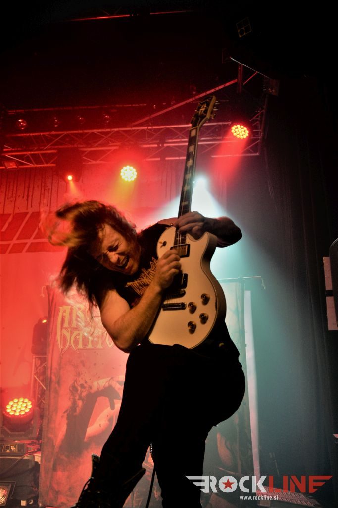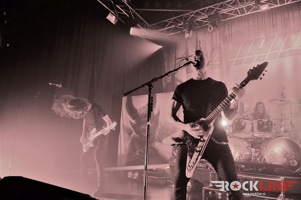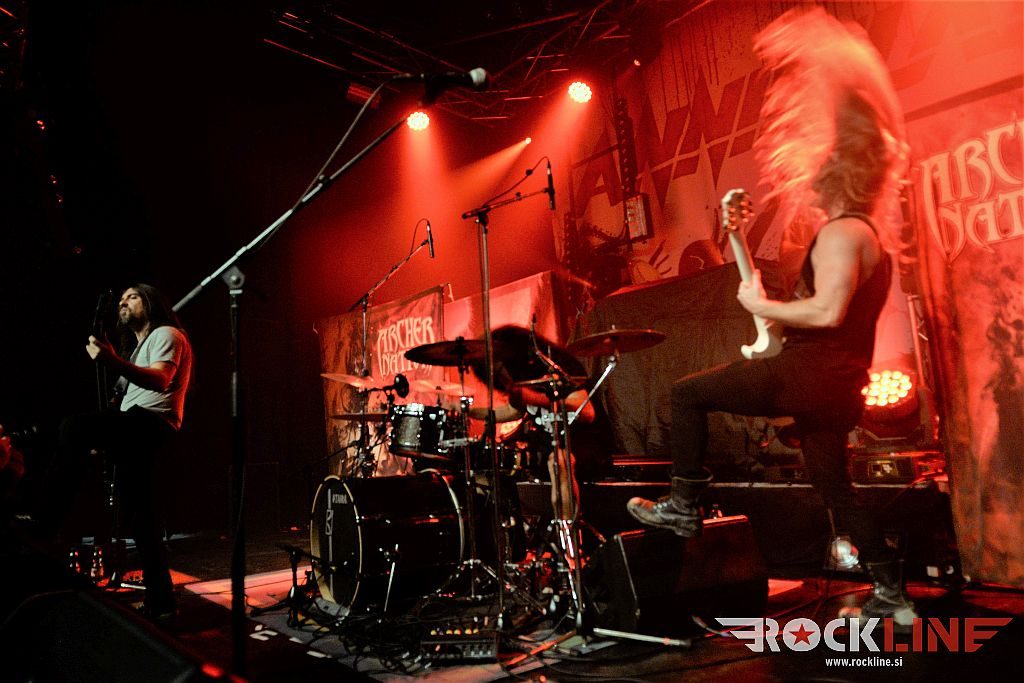 Gremo torej v graški Explosiv! Ob osmi uri so že igrali na odru mladci Archer Nation, varovanci Megadeth basista Davida Elefsona in njegove založbe EMP Label Group. Trio, doma iz kraja Santa Cruz (Los Angeles, Kalifornija), ki je v tričetrt ure natrosil malho metalskega revitalizma, v katerem so bolščale zlasti pogrete cvetke prvin stare šole Megadeth, tudi Metallicae, in pa seveda celo momenti, ki bi lahko bili zabavni poznavalcem N.W.O.B.H.M. gibanja. Vsekakor popolni revival bend. Dylan Rose (vokal, ktara), DavidDe Silva (bas kitara in Keyhan Moini (bobni), je predstavljal novi studijski izdelek, ki je izšel v letošnjem februarju z naslovom »Beneath The Dream«. Energije triu ne manjka. Dylan je večkrat prehajal iz zahtevnih solaž in prehodnih okraskov ekstremno hitro do mikrofona. To preklapljanje med obema funkcijama je zelo zahtevna, vendar pa mladenič odlično rokuje. Vsekakor se je skozi minutažo poznalo, da koncentracija nekoliko popušča, saj je nekajkrat pozabil izpostaviti avtoritativnost in intenzivnost na vokalni funkciji, medtem ko ne gre oponirati njegovi tehnični kitarski izpiljenost ter veliki agilnosti. Bend je udaren, eksploziven, dobro ubran, koherenten ter odrsko naoljen! Silno angažiran in kot povedano. Ne odkriva sicer tople vode, pač pa trka na duše retronostalgikov! Vneto in z vehemenco. Lep uvod torej.