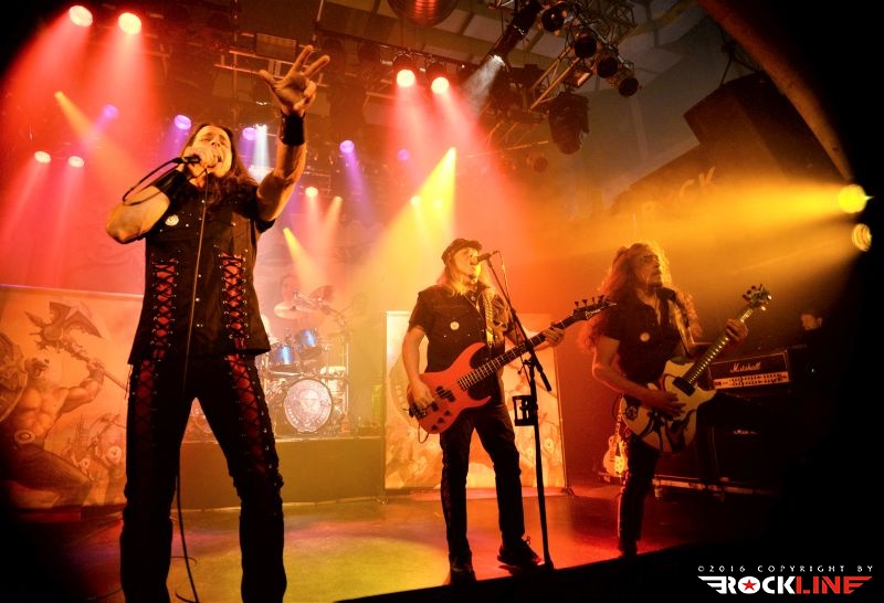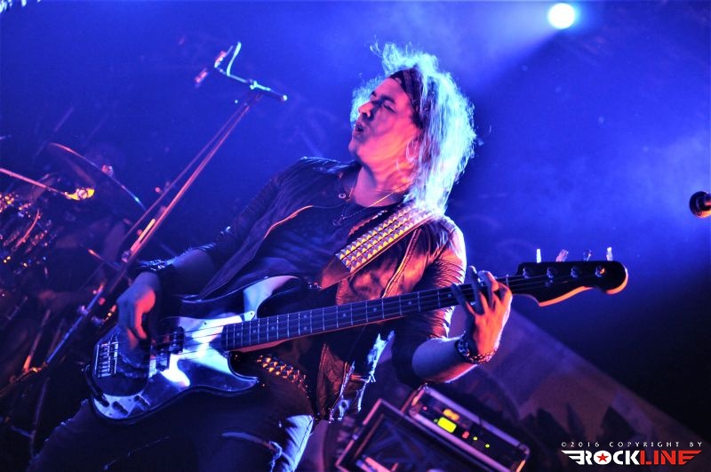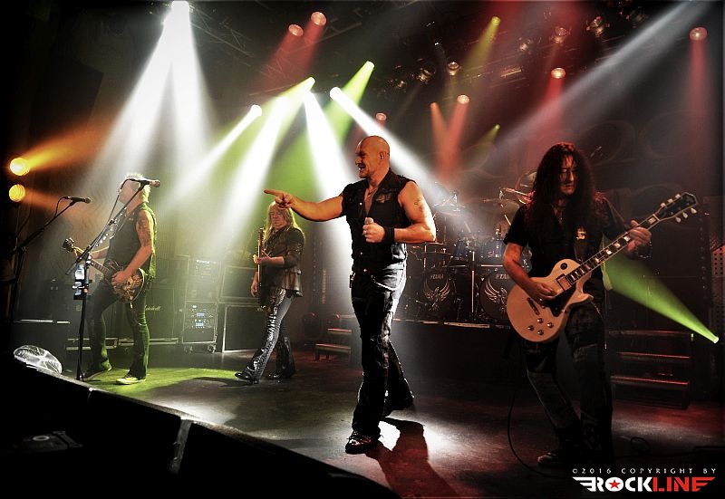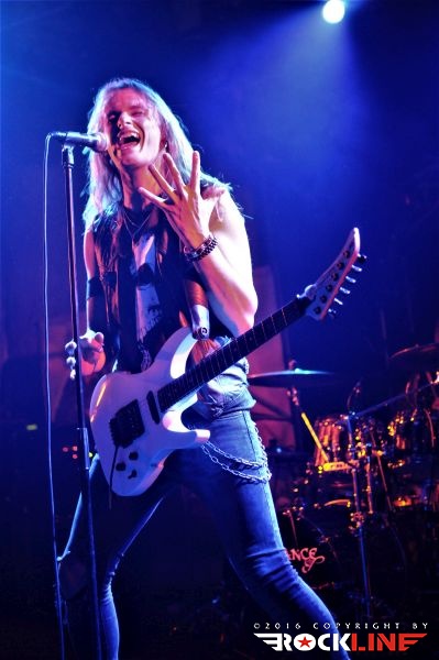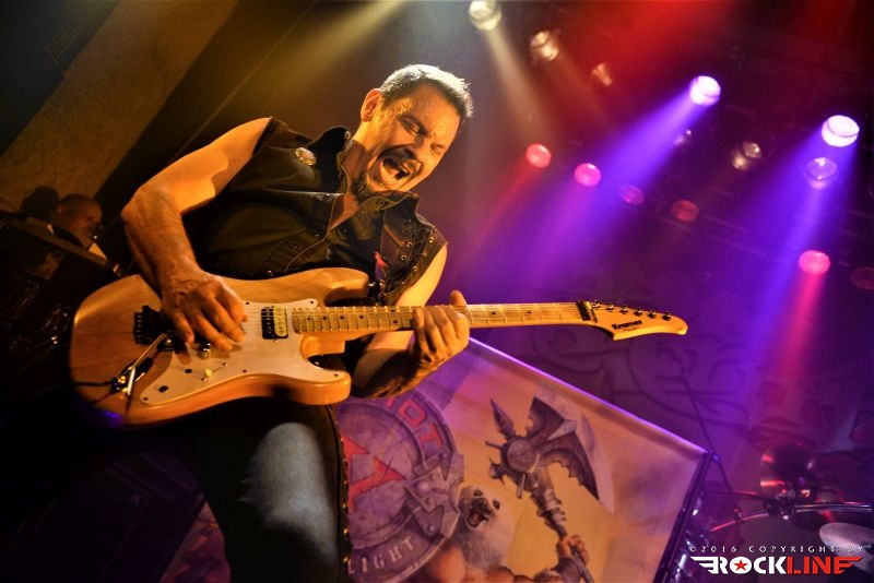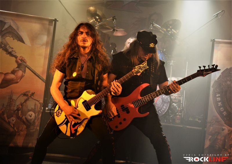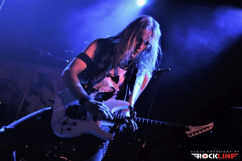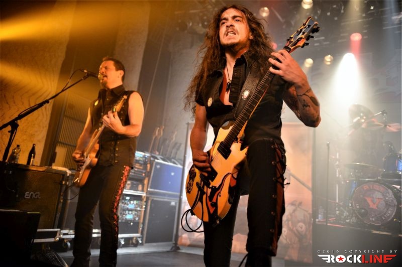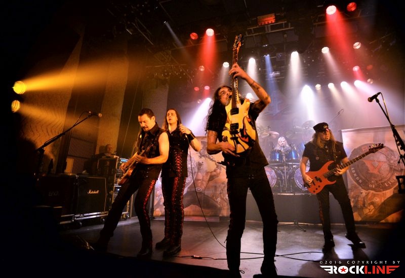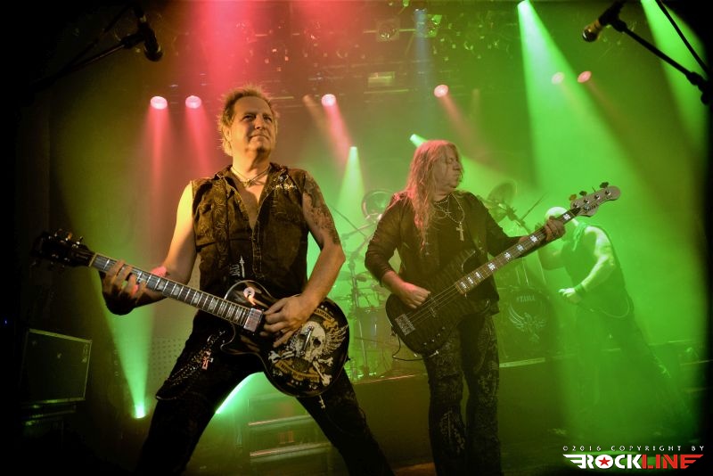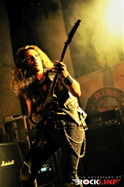 Tega večera je bilo kar nekaj vnetih privržencev zasedbe Riot na prizorišču. Danes živi zapuščina te legendarne in kultne ameriške zasedbe pod imenom Riot V, uspešno torej dalje. V ekipi sta od sodobnikov Marka Realea, izjemni kitarist Mike Flyntz ter kleni basist Don Van Stavern, zasedbo pa zapolnjujejo še mladi in nadarjeni Nick Lee na kitari, ki je sicer Flyntzov učenec, nadalje izjemno izkušeni gospodar dvojne bas boben stopalke Frank Gilchriest (ex-Virgin Steele) ter pa neverjetni kričač Todd Michael Hall. Riot V so tako, kot na obeh naših srečanjih s skupino pred leti na festivaloma Metaldays in Bang Your Head!!!, uročili publiko z izjemno ubranostjo, nepopustljivo odrsko zagrizenostjo ter vso oktansko voltažo s katero so tega večera tresli Rockhouse. Ko gleda človek Flyntza, ve da je to mož, ki je v ročnih spretnostih kitarske igre, šaman svojega posla. Le enkrat se je nekoliko spozabil, ko je stopil za stojalo Hallovega mikrofona, da napove komad, ob tem pa je zamudil do svojega footswitcherja, kar je rezultiralo v tem, da je »zaspal« na uvodnem rifu, sicer pa ostaja njegova predstava prava pravcata pravljica pristopanja h klasični šoli heavy metala. Bend je seveda predstavil novi studijski album »Armor of Light«, ki je tako kot predhodnik »Unleash the Fire (2014)«, izvrsten dosežek, vsi pa smo seveda čakali zlasti na nepozabne sladkorčke skupine ustvarjene v osemdesetih, sedemdesetih, pa tudi v devetdesetih. Ob obvezni Bloodstreets, eni najimenitnejših kompozicij železnega repertoarja skupine, ob podpori pričakovanega standarda Johnny’s Back, je zaključek enourne nevihte s skupino pripadel »sveti trojici« Warrior, Swords & Tequilla ter seveda nadobveznim Thundersteel Že na začetku je nadvse ljubo presenetila »Narita« (1979) klasika Road Racin’, malo kasneje so izvedli skupno še četrto Thundersteel klasiko Flight of the Warrior, docela pa presenetili z integracijo fantastične Angel Eyes z izvrstnega, a blago spregledanega »Inishmore« (1998).. Take Me Back skladba zadržana s predhodnika »Unleash the Fire«, izvrstno vozi po zapuščini klasik in deluje, kot komad napisal v prvi polovici osemdesetih, svojo krepostno pozicijo na metalskem zemljevidu, pa so utrdile seveda nove skladbe načelom az uvodno Victory, pa Angel’s Thunder Devil’s Reign ter Caught In A Witche’s Eye. Bend stalno menja repertoar. Na slehernem koncertu zamenja do pet točk, pri tem pa seveda ohranja v njem klasike železnega repertoarja.