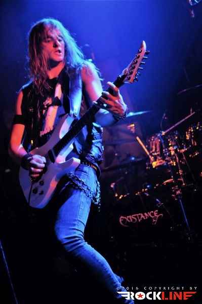 Malo pred pol deveto zvečer so na odru že razbijali francoski heavy metal revitalisti Existance, z zgledno in občutno opornico navdihovanja nad zapuščino NWOBHM. Bend ni povsem zelen. Deluje od leta 2008, v žepu pa ima dva studijska albuma in sicer »Steel Alive« (2014) ter aktualnega »Breaking the Rock« (2016). Na dokazilo, da kreše kvartet suvereno kamenje, ni bilo treba dolgo čakati. Glavni in osnovni pogonski motor skuine, to je kitarist in vokalist Julien Izard, premore zapustiti suveren vtis. Poseduje všečen in kompatibilen vokal, k sicer hitrostnem in nabrušenem riffovskem rožljanju. Bend je, ne glede na Julienovo prikovanost za mikrofon, vseeno še vedno odrsko agilen in tako je tudi spretno izkoriščal mali oder, pri čemer je povzel nekaj teatralne nomenklature od bendov osemdesetih (Iron Maiden). Julienu nudi oporo še drugi kitarist Antoine Poiret, s katerim si delita solaže. Rifi so večkrat okrašeni s tercetnimi harmonijami, kar ni revolucija. Skratka. Existance res niso glasbena revolucija, niti niso tako brezbožno utrgani, kot kakšni belgijski Evil Invaders. Daleč od tega, da bi dajali vtis porednih fantov. Minilo je solidne uvodne pol urice prijetnega druženja s suvereno in nasršeno skupino, ki pristopa do vsega zavzeto in zato zelo prepričljivo.