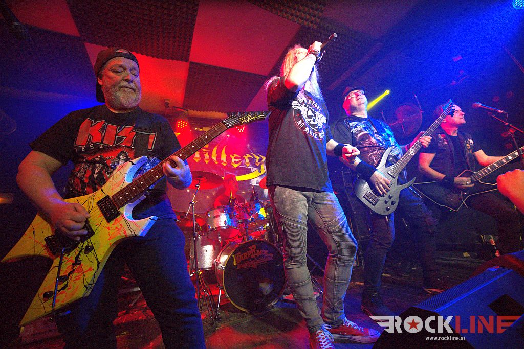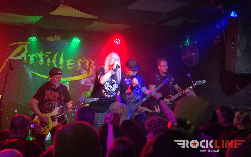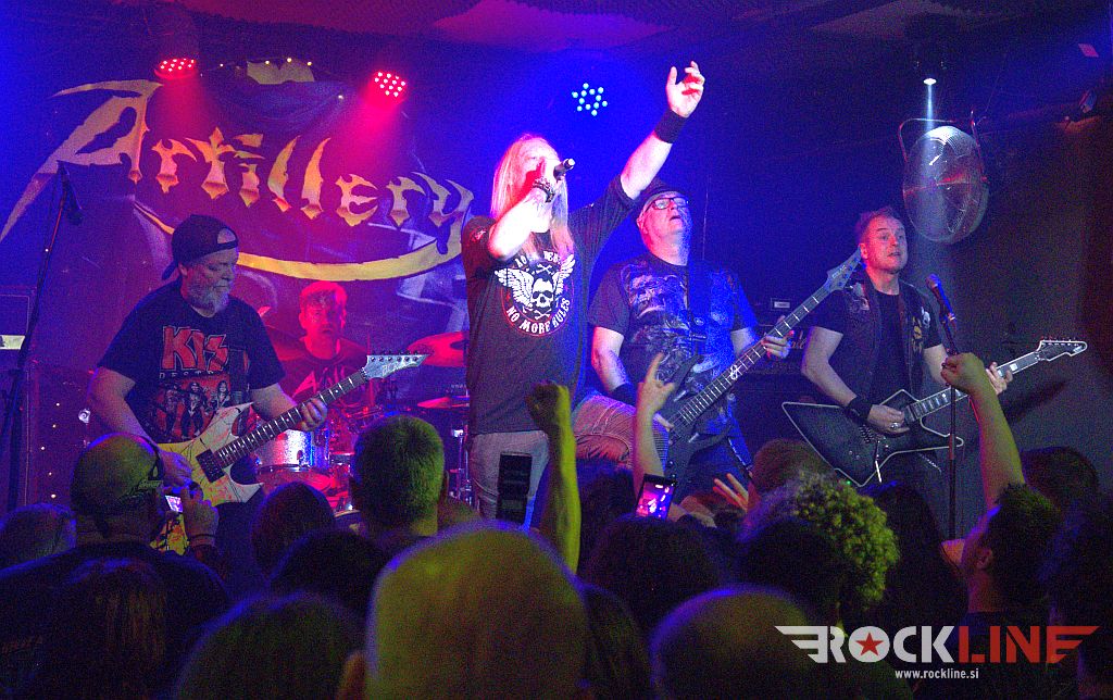 Seveda pa se je vse spremenilo, ko so oder zasedli legendarni Artillery. Skupina je čakala, da pride na vrsto za svoj nastop kar za mizo pred klubom, kjer se je kvintet kratkočasil mdr. tudi z vrčki piva. Artillery so leta 2023 znova šli skozi tornado prenove kvinteta. Legendarnemu ustanovnemu in originalnemu članu, to je kitaristu Michaelu Stützerju, ki mu od starejše garde dela v ekipi danes družbo basist Peter Thorslund (v ekipo je prispel tik pred tretjim albumom “By Inheritance”), so se po novem pridružili mlajši pobje, in sicer: svetlolasi dolgin na vokalu Martin Steene, nadalje bobnar Frederik Kjelstrup Hansen in ritem kitarist René Loua. Nekje ob desetih zvečer so planili na oder. Že prvi štirje štikli bo bili direktni odstrel v zlato dobo osemdesetih. Bend je dvignil publiko kvišku že uvodoma z dvema Fear Of Tomorrow klasikama Into The Universe in The Eternal War ter vztrajal v nadaljevanju v tej zlati eri tudi z naslovno skladbo albuma “By Inheritance” (1990) ter The Challenge, vzeto iz drugega albuma “Terror Squad” (1987).