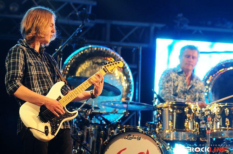 Asia je stopila malo pred deseto na oder in sestopila z njega malo preko enajste. Dovolj, da občutimo karizmo in formo biblijskih očakov v povesti AOR glasbe! Zanimivi so bili razgledi na komunikacijo med mladim »vajencem« Coulsonom in tremi Gandalfovskimi vešči. Couslon se je odlično spoprijel z kolosalno številko Howeove obutve! Dejansko je zadeve poenostavil le toliko, da je odigral vse skladbe z eno samo samcato kitaro (Howe bi jih v takšnem setu izmenjal zagotovo 10-15). Fant je natreniran, da bi lahko v spanju igral, kar mu ukažejo kameradi v Asii, vseeno pa ne premore tako mehkega, prožnega in prilagodljivega gripa kot Steve Howe. Ta zvočna hiba interpretacije se je čutila zlasti v mirnejših prehodnih pasažah, ki so zahtevale »mirno roko«, saj so na teh točkah nekateri Coulsonovi toni delovali kanček zakrčeno. Fant pa je oborožen z spretno in hitro roko, ki nosi solidno mero kontrole, kar ga težko izneveri, ko pluje skozi zapuščino Stevea Howea. Kapo dol mlademu kitaristu, ki obeta zelo veliko! Coulson je v manj pomembni opazki tega spisa neverjetno spominjal na kitarista Paula Bielatowicza, sicer člana Carl Palmer Trio. Gotovo sta oba šla skozi šolsko tutorstvo učiteljev Davea Kilminstra in Guthrie Govana (slednji je bil član skupina Asia med leti 2000 in 2005). Coulson je prevzel zlasti v drugi polovici in v samem izteku koncerta, skozi koncert je svojo igro vseskozi stopnjeval.