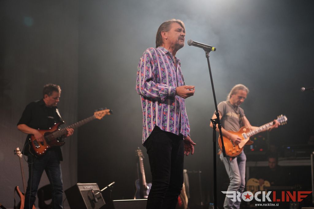Bend je odprl dve uri in pol trajajoč spektakel rondoja uspešnic z najnovejšim singlom Potujemo, ki v navdihu deluje nostalgično, vleče nekaj ‘mimobežnih art fines’ z ultra hitom Skozi leta – a lovi sedanjost in estetiko moderne produkcije. Zato draži ravno prav. V uvodnem delu so tehniki zvok še blago uravnavali in kalibrirali, a se je prava zvočna kulisa hitro ustalila in ko je sledil novemu singlu prvi veliki hit Ljubezen ne stanuje tu, je bend dejansko krenil v nadaljevanje v najvišji prestavi. Drugega mu ni ostalo. Na rokah vživete in dodobra podžgane publike definitivno ne.