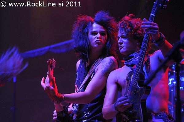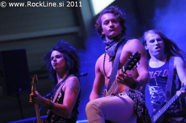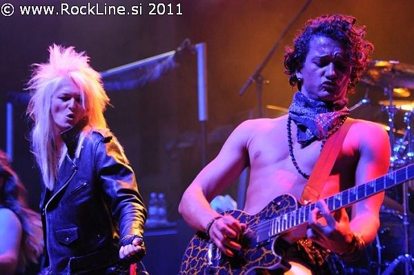 Kissin’ Dynamite je kvintet potentnih žrebcev, ki je že pred dvema letoma nastopil na festivalu Bang Your Head. Takrat so se predstavili, kot tipični revitalisti heavy metasla stare nemške šole. Tako po slogu aranžiranja skladb, kot tudi po samem zunanjem videzu. Gre za domačine doma iz Balingenu bližnjega Reutlingena, ki so komaj presegli starostno dobo 18 let. Johannes Braun (vokal),njegov brat Ande Braun (kitara), Jim Müller (kitara), Steffen Haile (bas kitara) in Andi Schnitzer (bobni), so po tej plati resnični fenomen. Zasedba, ki je leta 2008 spremenila ime iz Blues Kids v Kissin’ Dynamite (po eni izmed AC/DC skladb), se je to pot predstavila v Balingenu z drugim studijskim albumom v žepu imenovanim “Addicted To Metal” (2010). V dveh letih kar se nismo videli, so Kissin’ Dynmaite popolnoma spremenili odrsko opravo in se načičkali v sleaze rock zasedbo, ki je očitno našla vzglede v vzpenjajoči falangi skandinavskega oživljanja tovrstnih glasbenih trendov s konca osemdesetih let na čelu s skupinami Crash Diet, Hardcore Superstar itn… kot tudi v uspehu vročekrvnih avstralskih rock n’ roll prepotentnežev in AC/DC prepisovalcev Airbourne.