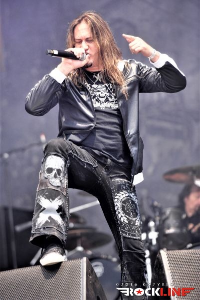 Sledil je nastop izvrstnih in zelo cenjenih irskih blackmetalskih mračnjakov Primordial, ki so v svoji ustaljeni navadi, prinesli na Balingen pravo črno mašo v kateri so vrezali vrata v pekel. Primordial so tu že nastopili in vendar. Vedno jih nastavijo v program podnevi, čeprav bi tak bend izjemno godil v kakšnem temačnem gozdu, polnim skrotovičenih dreves, v najbolj črni noči, kjer tulijo volkov in vlečejo neusmiljeno vetrovi, tako kot je bilo to na letošnjem tolminskem nastopu skupine. Če so tam res postreljali lahko vse rafale in dostavili vrhunski zaključek festivala, so morali na Bang Your Headu!!! stopiti na zavoro in skrajšati set listo. Svoj uro dolg nastop, so odprli velikopotezno. Z izjemno in na preko deset minut raztegnjeno Nail Their Tongues, vzeto iz aktualnega in novo izdanega »Exile Amongst the Ruins«, ki sta se ji priključili v nadaljevanju še To Hell or the Hangman in Upon Our Spiritual Deathbed. Že kmalu v začetku je bend izvedel skladbo No Grave Deep Enough iz albuma »Redemption of the Puritan’s Hand« (2011), z albuma »To The Nameless Dead« sta bili izvedeni As Rome Burns (na sredini koncerta) ter Empire Falls, s katerim so Primordial, kar se da zlovešče, sklenili svoj izvrsten nastop. Odjeknila je tudi Coffin Ships iz albuma »The Gathering Wilerness« (2005). Vso pozornost prevzema mož teatra. Eden in edini Alan Nemtheanga, ki je publiko dobesedno hipnotiziral. Ne le s svojo pojavo, pač pa s svojim odrskim zaletom, svojim teatrom, igro. S svojim pridigaštvom. Povsod smrt in črna tuleča noč. Rojstvo zla in pogube. Skušnjave vsepovsod. Prepadna brezna in globeli od koder ni vrnitve. Kup keltskih folk elementov in izjemna mračna bombastika. Čeprav je Alan v središču, človek včasih kar pozabi, kako odličen bend ga spremlja. Kako izvrstno grizejo in kako mogočen zvok ustvarijo Primordial. Kot celota. Gibson SG kitare in Rickenbecker bas. Stara šola. A edinstveno in unikatno. Takih bendov ne delajo več. Obenem pa so kompozicije vse po vrsti dole in silno zahtevne za poslušanje. Na krilih mogočne in srhljive atmosfere, polne urokov in blasfemiične hipnoze. Teatra torej, ki bi v drugačnem ambientu, zasijal še bolj intenzivno, kot je v Balingenu.