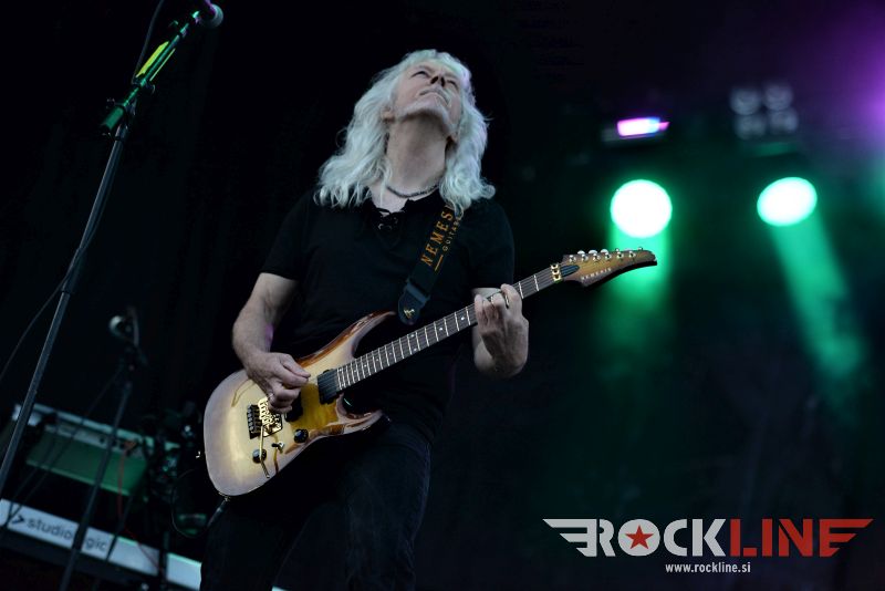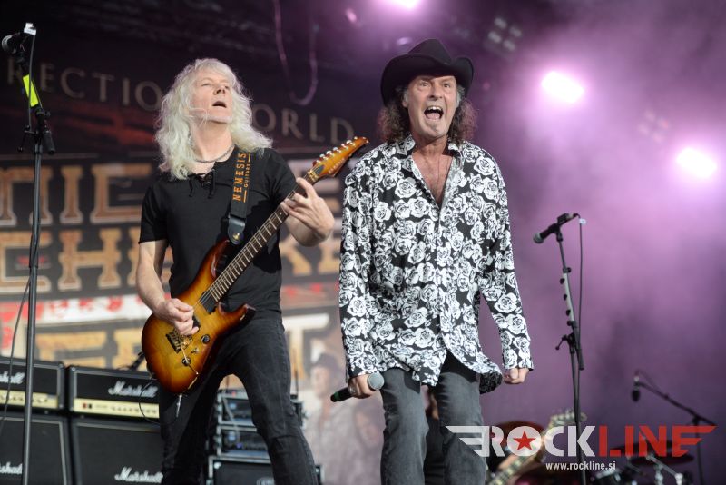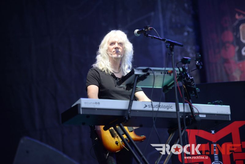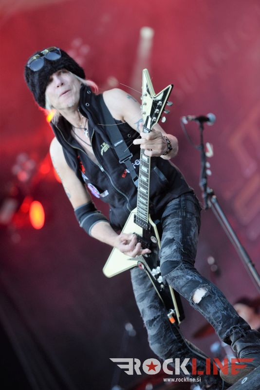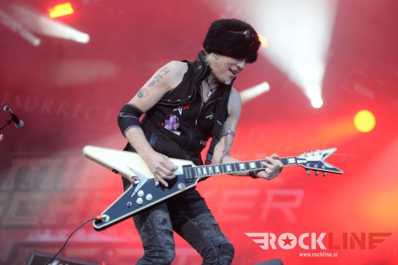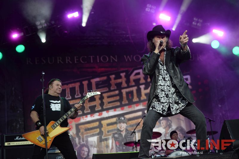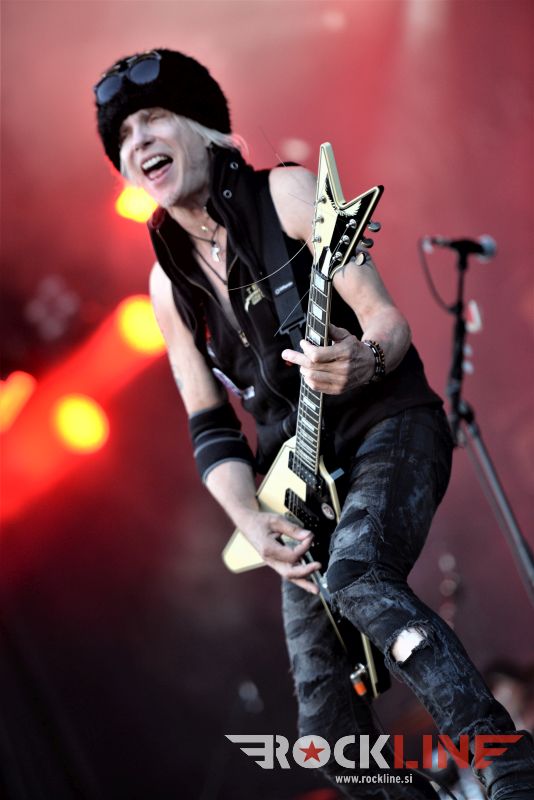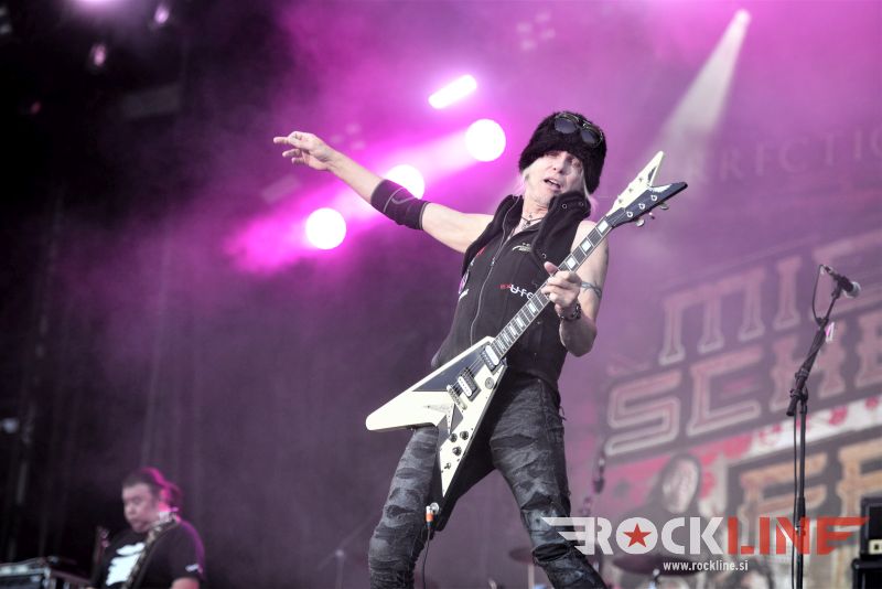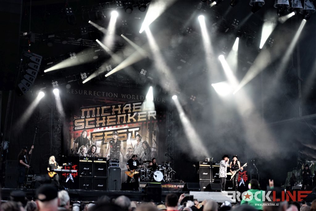 Ura je pol devetih zvečer in vse je nared, da stopi na glavni oder glavni nosilec prvega dne festivala. Ta čast je letos pripadla edinstvenemu Michaelu Schenkerju in njegovi novi formaciji Michael Schenker Fest. Schenker velja za ikonskega kitarista in enega največjih in najpomembnejših, če ne kar najbolj zaslužnih, saj je njegov pristop do komponiranja ter zlasti formatiranja solaž v mid eight pasažah, postal navdih in vzor generacijam. Gre za človeka, ki je s svojo dejavnostjo premaknil heavy metal, pa tudi hard rock, za nekaj stopničk navzgor in konkretno pripomogel k njegovemu nadaljnjem razvoju in razmahu. Schenker se s svojo formacijo nekako vrača naravnost na sam začetek ustvarjanja z MSG in več. Koncert na Bang Your Headu je pravi mali praznik njegove kariere, kjer nas je izjemni glasbenik popeljal prav v vse ere delovanja, na čelu s časi Scorpions in UFO. Schenker je k svojemu Festu povabil tri originalne MSG pevce in sicer Garyja Bardena, Robina McAuleya ter Grahama Bonneta, k tem trem pa dodal še četrtega, ki je z Michaelom Schenkerjem sodeloval v obdobju Mcihael Schenker’s Temple Of Rock, to je nekdanji Rainbow in Yngwie J. Malmsteen’s Rising Force vokalist Doogie White. Štirje pevci, pa naprej originalni MSG basist Chris Glen, klaviaturist in kitarist Steve Mann iz obdobja McAuley Schenker Group in na bobnih? Namesto pokojnega Teda McKenne je na njegovo pozicijo vskočil Bodo Schopf, ki je med letoma 1986 in 1990 sodeloval v McAuley Schenker Group. McKenna, ki je preminil sredi letošnjega januarja, je bil s strani Schenkerja med koncertom močno pogrešan in kitarist je svoj nastop na Bang Your Head!!! festivalu posvetil spominu nanj.