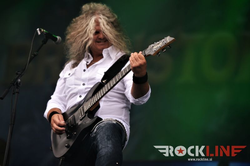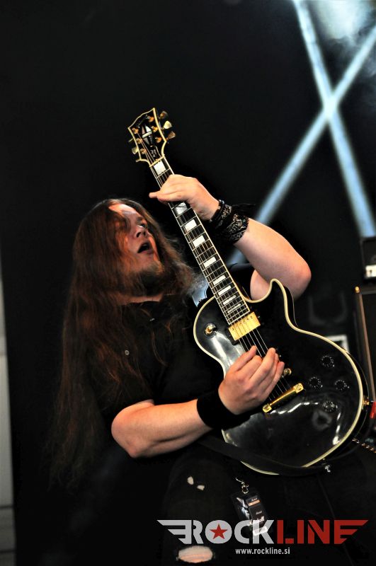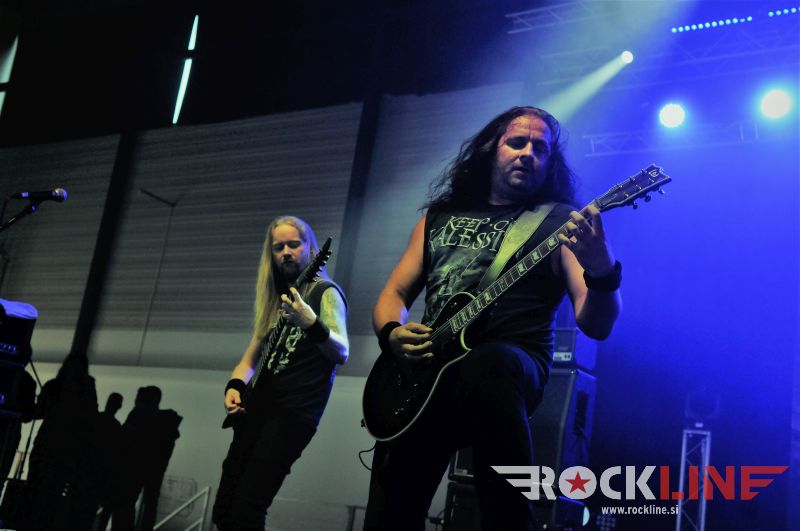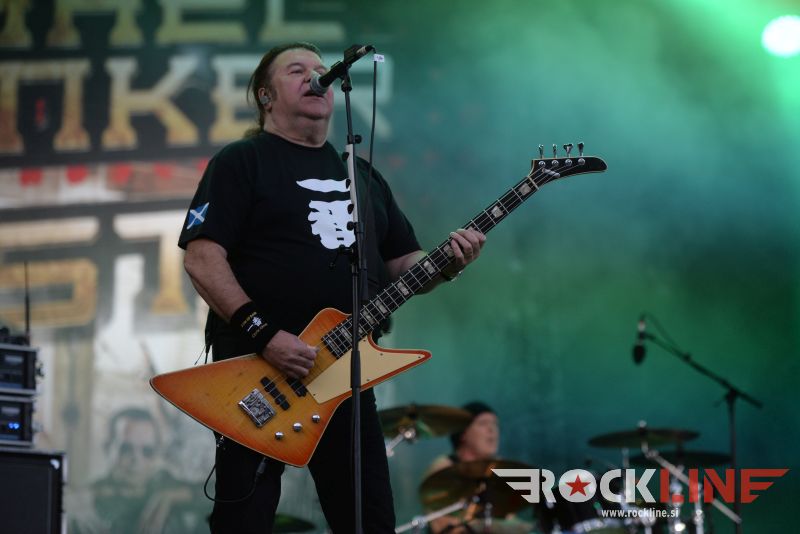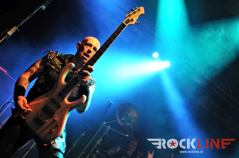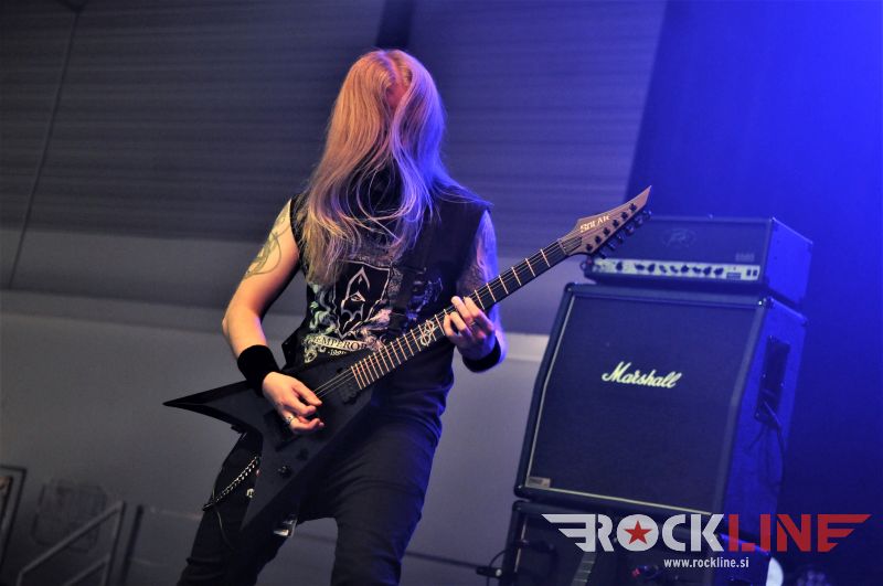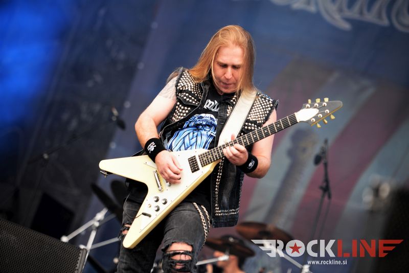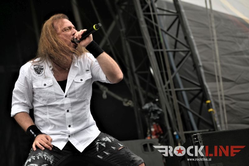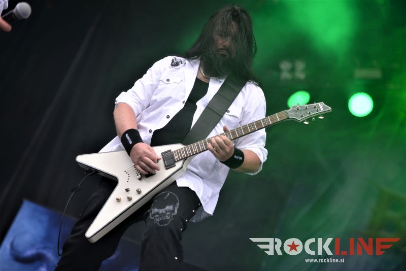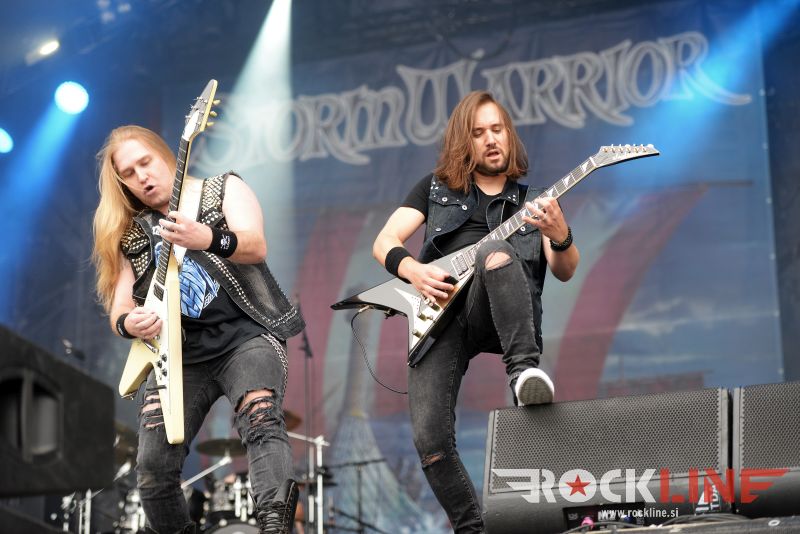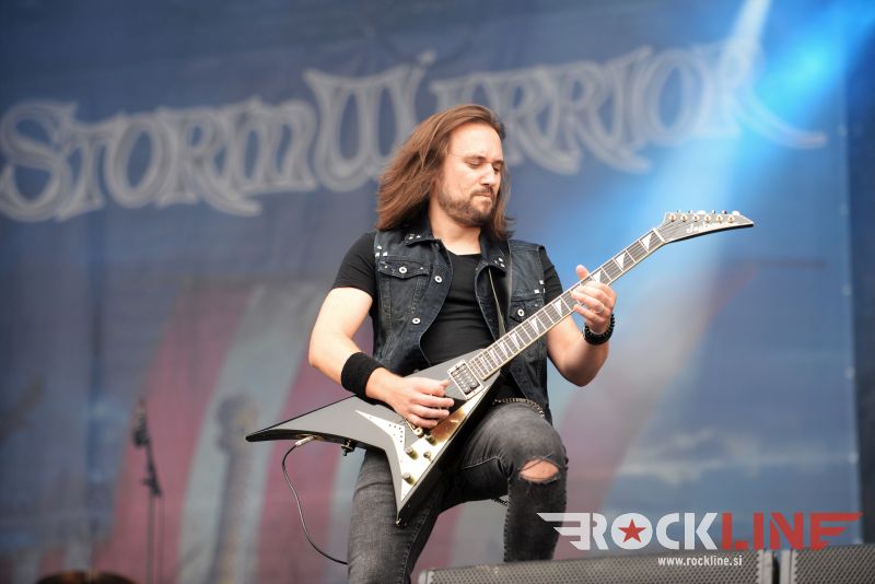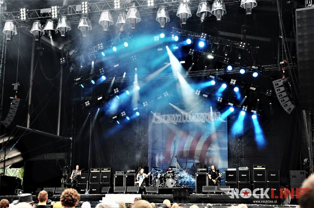 Skratka. Letošnji warm up smo izpustili, kar se ni zgodilo prvič od kar hodimo na ta čislani festival. Tu je že prvi festivalski dan in na odru so ob enajsti uri že stari znanci festivala Stormwarrior. Neverjetno kako beži čas. Stormawrrior beležijo v letošnjem letu namreč že 21. let delovanja. Ko so se pojavili na sceni s prvencem, so bili pravi powermetalski zelenci, no vera in kljubovanje opravita svoje in Lars Ramcke, veliki poglavar, kitarist in vokalist skupine, se danes lahko pohvali, da ima v žepu šest studijskih albumov, zadnji med temi »Norsemen«, pa izide v letošnjem novembru. Lars Ramcke je pridobil kak siv v las in kakšno gubico, a ostaja enak na odru. To kar vidiš, to dobiš. Nikdar ni slovel kot pevec, ki bi ga spremljala tehnična izpiljenost, vendar tudi sam stil, ki ga gojijo Stormwarrior tega brezpogojno niti ne zahteva. Vikinška besedila o herojih so tu in bend deluje korektno. Oblaki so se združili, nad nebom je pnela sivina in oblaki so postajali vse težji in težji. Čmerilo je. Bend je v petdesetih minutah odigral kar pet komadov iz studijskega prvenca »Stormwarrior« (2002), tri med njimi (Signe of the Warlorde, Sons of Steele, The Axewielder) že kar v samem začetku. Ni manjkala niti Defenders of Metal ter Iron Prayers s katero je bend sklenil koncert. Bend je nemalo presenetil s prastaro »Possessed by Metal« EP/demo skladbo Heavy Metal Fire, repertoar pa so zastopale še skladbe albumov »Heading Northe« (naslovna skladba) ter »Northern Rage« (Odinn’s Warrior ter Lindisfarne). Kvartet je dobro vnovičil vlogo otvoritvene skupine, deluje zrelo in izkušeno, Ramcke ima ob sebi zanesljive tovariše, to so Yens Leonhartz (bas kitara), bobnar Björn Daigger in kitarist Jörg Uken in Stormwarrior so med drugim obudili lepe spomine tudi na svoj pradavni nastop v sklopu festivala Metal Mania Open Air v slovenskem Komnu leta 2008.