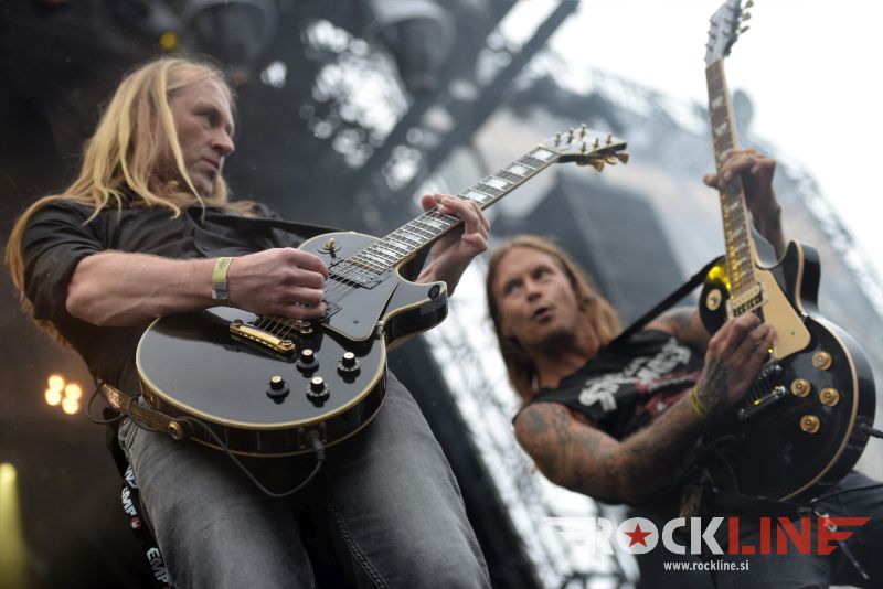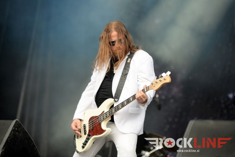 Potem pa je začelo deževati. Konkretno deževati. Že med Sorcerer. Dež se je še okrepil, na oder pa so stopili Audrey Horne. Pravi naslov za odklop in zabavo. Audrey Horne so norveška zasedba iz kraja Bergen, vsekakor bend, ki drži kanček parodije, ko združuje prvine stare šole metala ter celo melodičnega hard rocka. Kvintet sestavljajo neverjetno zabavni vokalist Toschie, nadalje kitarista Ice Dale in Thomas Tofthagen, pa bobnar Kjetil Greve in basist Espen Lien. Člani ekipe so igrali pred formacijo Audrey Horne v skupinah, kot sta Gorgoroth in Enslaved. Na black metal spominja torej? Le izvrstna igra. Res odlični glasbeniki. Vse do milimetra natančno in neverjetno uigrano. Lilo je čedalje bolj, vendar si Toschie ter ekipa s tem niso belili glave. Vokalist je prispel na oder v opravi nogometnega sodnika, z windstopper jaknjico in vseskozi skrbel za izredno pozitivno in vedro razpoloženje. Med predzadnjo skladbo Waiting For The Night je celo skočil z odra, zlezel preko ograje in se podal med ljudi, ki so družno z njim »meketali« spevni refren skladbe. Bend je odprl koncert v stilu. V sozvočju aktualnega albuma »Blackout« s katerega je zapovrstjo nanizal skladbe This Is War, Audrevolution in Blackout. Sicer pa se je po svojem diskografskem opusu sprehodil le dva albuma v rikverc, to je do albuma »Youngblood«, s katerega smo slišali Pretty Little Sunshine ,Straight Into Your Grave, Youngblood ter Redemption Blues, ki sta mu delali družbo še dve točki albuma »Pure Heavy« in sicer Out Of The City ter prej omenjena Waiting Fot the Night. Odličen žur, ki ga ni mogel pokvariti niti dež.