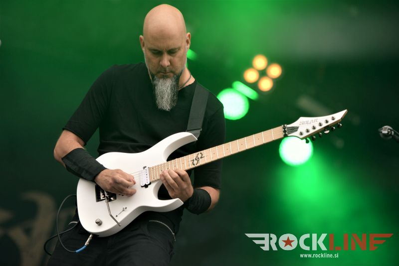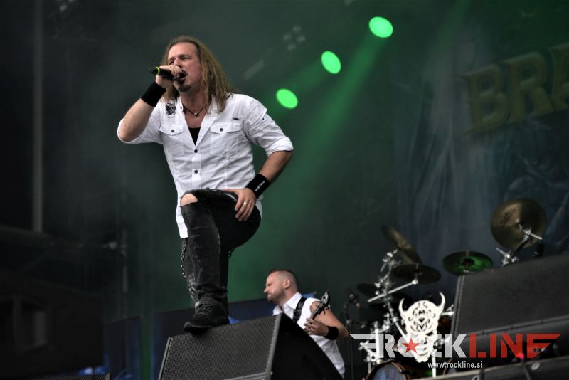 Deževalo je dalje. Globoko v koncert naših prijateljev Brainstorm, ki smo si jih ogledali konec januarja v ljubljanskem Orto Baru. Pri Brainstorm gre težko kaj narobe. Vokalist Andy B. Franck je imel v Ljubljani sicer težave z vnetjem grla, kar se niti ni tako hudo poznalo na predstavi, no to pot pa je stal na odru povsem čil in zdrav, zato je pristopil na vso moč. In Brainstorm? Omislili so si opravo belih srajčk. Z odra sicer niso delili sladoleda, pač pa prave power /thrash metal rifovske klofute naphane z epsko bombastičnostjo refrenskih napevov. Glavnino repertoarja je po pričakovanju zastopal aktualni album, odlični »Midnight Ghost«. Bend je odprl koncert z novo Devil’s Ghost potem pa potrkal na čustva nostalgikov z integracijo Words Are Comin’ Through, vzeto iz 13. let starejšega albuma »Liquid Monster«, ki sodi med najbolj cenjene izdelke te skupine. Z »Midnight Ghost« so odjeknile še Jeanne Boulet (1764) Revealing the Darkness The Pyre in Ravenous Minds, s katero so sklenili fantje koncert. Tu je Shiva’s Tears, obvezna klasika iz albuma »Soul Temptation«, bend pa je zabelil nastop s še eno »Liquid Monster« klasiko All Those Words ter dodal tudi naslovno skladbo albuma Firesoul. Brainstorm so kot vedno strupeno naoljen stroj, ki vedno polnokrvno prepriča. Odličen zvok, odlično zaznavanje. Super kompanija. Dvojec Ihlenfeld/Loncaric kot vedno v vsakem trenutku na pravem mestu. Odlično kombiniranje solaž obeh kitaristov, vsekakor ne gre zanemarjati vseskozi silno dinamične in razvnete ritem sekcije za katero skrbita odlični bobnar Dieter Bernert ter nič manj odlični basist Antonio Ieva. Skratka. Brainstorm so pričarali tisto v čemer so najboljši in edinstveni. Pravo možgansko nevihto, ki je dodobra skuštrala razmočene glave na festivalu in je obstoječi dež postal v primerjavi z njo pravi mali in komaj opazni škratek. Po pričakovanju nova izvrstna predstava zasedbe.