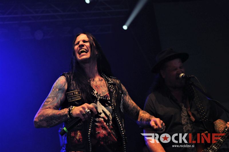 Deset minut pred osmo zvečer smo v dvorani torej le dočakali nastop švedskih sleaze rock revitalistov, ljubiteljev zglednega tatuja, to je Hardcore Superstar, ki so imeli, kot že omenjeno velik problem, Na letališču jim je nekdo ukradel opremo, zato so za silo igrali na izposojeni. Od začetka koncerta se je poznala velika konfuzija, ki je spremljala nastop skupine. Preprosto to niso bili pravi Hardcore Superstar in bend je bil vidno izživciran ter nesproščen. Sicer je nori in vedno do konca utrgani vokalist Joakim “Jocke” Berg na vse pretege ubiral prijeme s katerimi je skušal odtegniti oziroma preusmeriti pozornost publike od nenehnih zvočnih težav skupine na odru, med katerimi je daleč najkrajšo potegnil prav kitarist Vic Zino, ki nikakor ni mogel uglasiti kitare na zahtevano zvočno raven. Jocke je celo skočil med publiko, ki ga je dvignila na roke in skušal tako vzdrževati samo dinamiko koncertnega dogajanja. Bend je skozi Moonshine, Electric Rider ter We Don’t Celebrate Sundays, prešel na Liberation, potem pa družno sprejel odločitev, da prekine koncert. Preprosto. izposojena oprema s katero je bend skušal rešiti koncert ni vzdržala, prav tako pa kvartet ni bil z glavo pri stvari, kar je povsem logično. Hardcore Superstar uživajo veliko priljubljenost v Nemčiji in mnogo glav je bilo tega dne zavoljo prekinitve koncerta konkretno poparjenih. A je organizator še pred iztekom festivala, to je na njegov tretji dan, potrdil prvi sveženj nastopajočih za leto 2020, med katerimi so potrjeni tudi Hardcore Superstar, ki se bodo tako drugo leto za spodrsljaj, za katerega niso dosti krivi, pač lahko pošteno odkupili.