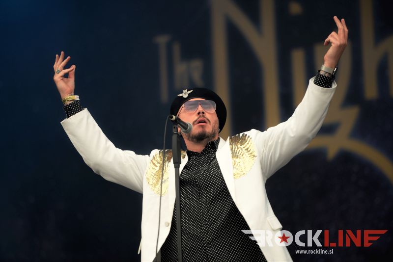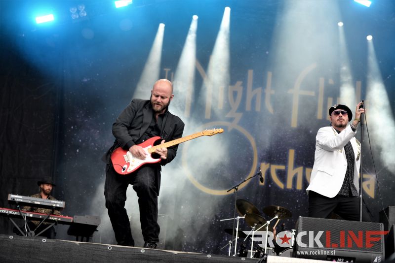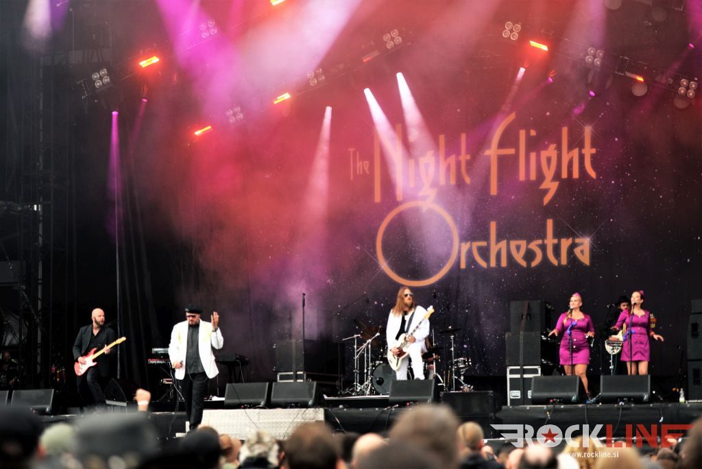 The Night Flight Orchetra so vrsta parodije na čase AOR glasbe. Skupina ne bi bila v današnjem času prav nič posebnega in hitro zanemarljiva ,v kolikor ne bi bila sestavljena iz zanimivih imen, ki so se očitno naveličala let vztrajanja v sferah ekstremnega metala. Na odru je ekipa zelo številčna! Vokalist Björn Strid, ki je kmalu po tem nastopu obiskal slovenski Tolmin s svojimi Soilwork, je opravljen po vzoru Survivor pevca Davea Bicklerja. Ray Ban očalca, beretka, bela oprava., Podpirajoč se na stojalo mikrofona, je tako zelo ležerno vstopil v otvoritev koncerta. Tu je tudi drugi član skupine Soilwork in kitarist David Anderson. Na bas kitari dela Stridu in Anderssonu družbo Sharlee D’Angelo, izkušeni nekdanji Mercyful Fate in King Diamondov basist, ki je prav tako kot Strid in Andersson, čez nekaj dni odpotoval v Tolmin, kjer je nastopil s svojo zasedbo Arch Enemy. Zasedbo zapolnjujejo še bobnar Jonas Källsbäck, klaviaturist Richard Larsson, tolkalist Sebastian Forslund ter dve obli spremljevalni pevki, ki ju kličejo v skupini, kot Airline Annas, točneje Anna Brygård in Anna-Mia Bonde, ki sta se med koncertom v opremi hostes »igrali« z vijoličastimi telefoni. Bend je predstavil sveže izdani studijski album »Sometimes The World Ain’t Enough«, odprl koncert z naslovno skladbo, ki se ji je takoj pridružila Turn To Miami. Andersson se je postavil v vlogo porednega dečka, si prižgal cigareto med tretjo Midnight Flyer ter skrbel za odlično soliranje, pri čemer je zavzemal različne poze, do najbolj zabavnih, ob tem pa ni naredil kiksa, kar zgolj potrjuje kako dober je ta kitarist. Dejansko zabavna parodija. The Night Flight Orchestra vseskozi spominjajo na čase, ko je na lestvicah kraljevala AOR glasba, kjer ni težko preslišati navdahnjenosti nad likom in delom zasedb Journey, Survivor, Boston in Night Ranger. Iz »Amber Galactic« so odigrali tudi skladbi Gemini in Something Mysterious, koncert pa je sklenil dvojček albuma »Internal Affairs« in sicer 1998 ter West Ruth Avenue. Malo govorjenja, veliko zabave. Čeprav je zabavno prav to, ko delujejo pootročeno v posnemanju neke ere rocka, pa po drugi plati odlično igrajo in ekipi ni ničesar očitati, Strid pa se v takšnem glasbenem okolišu, tako lahko izkaže tudi s svojim normalnim glasom oziroma petjem.