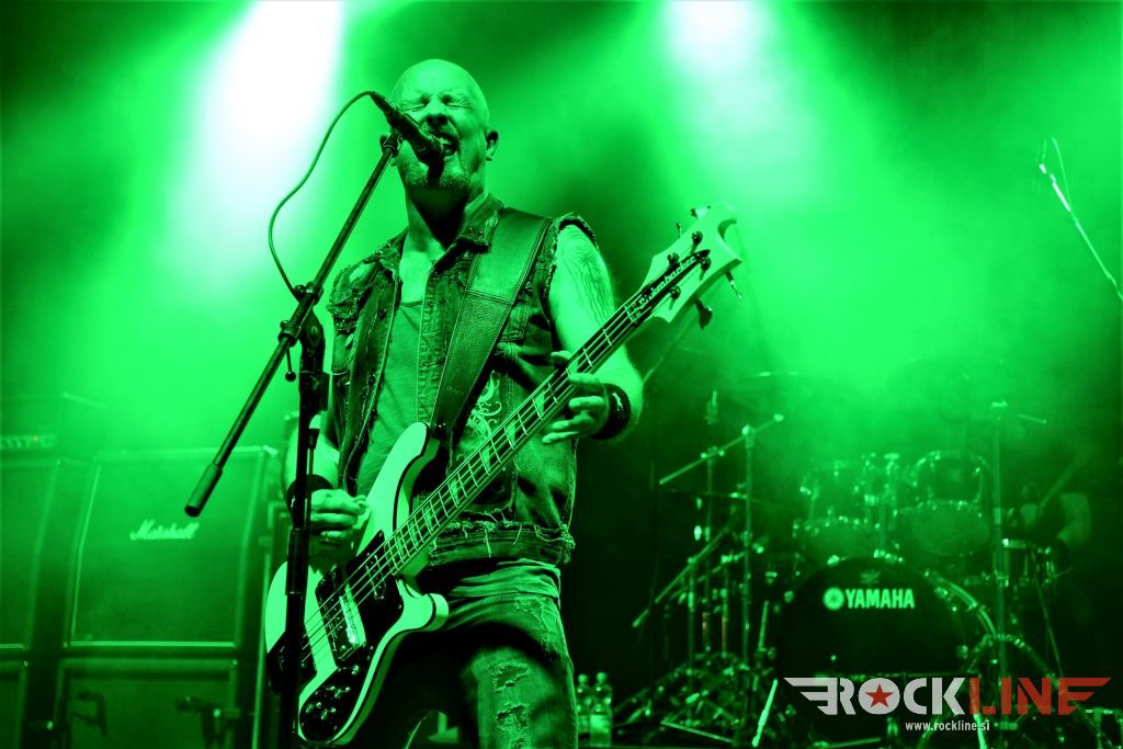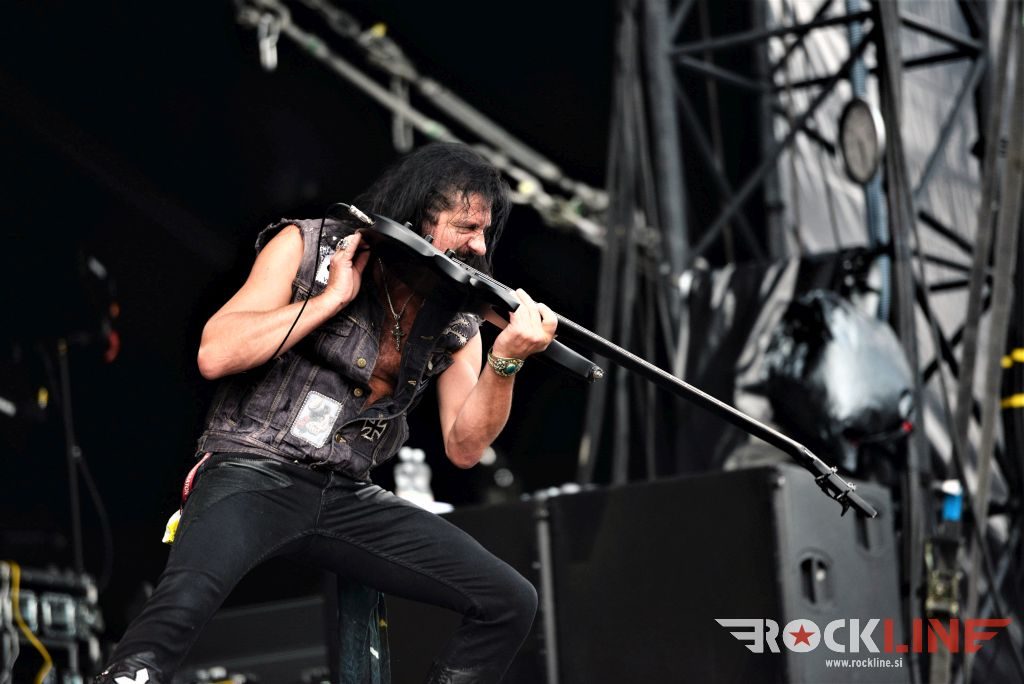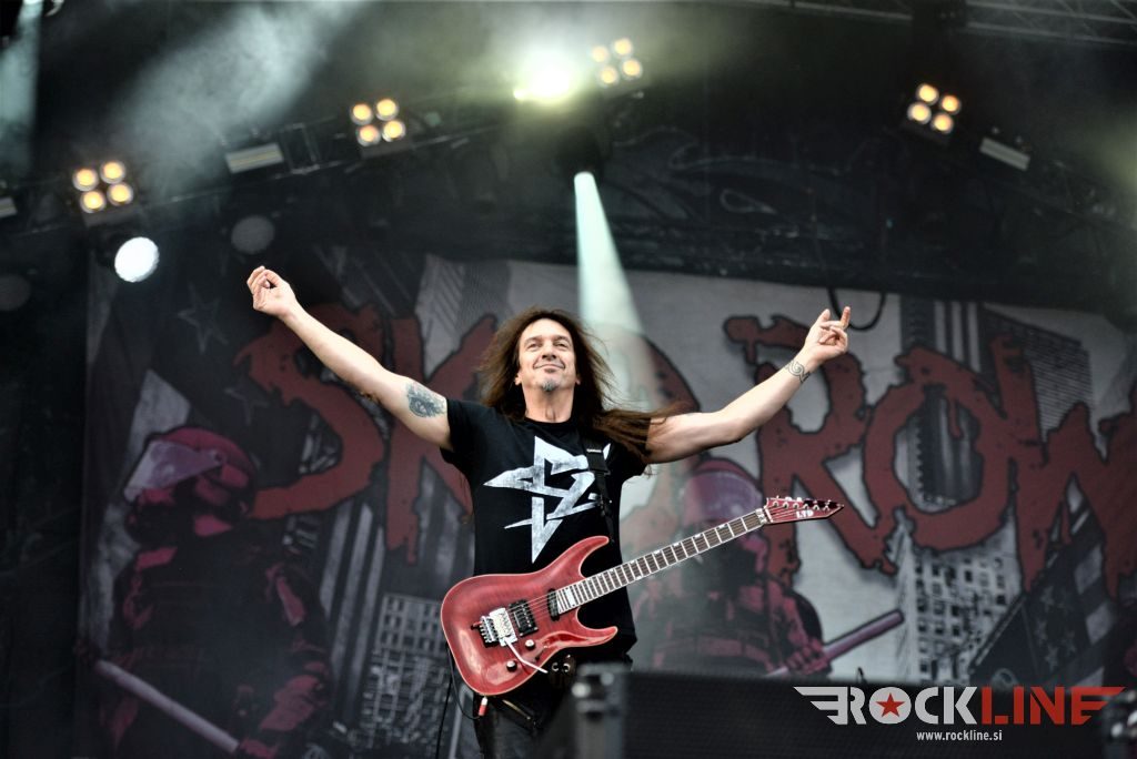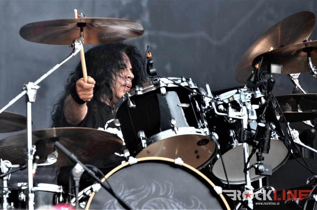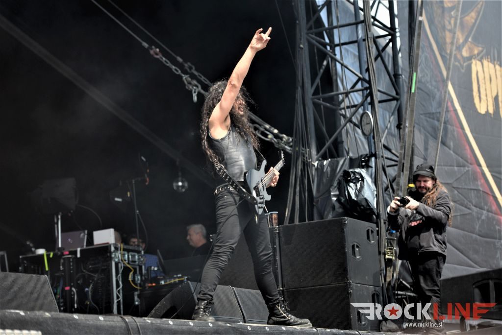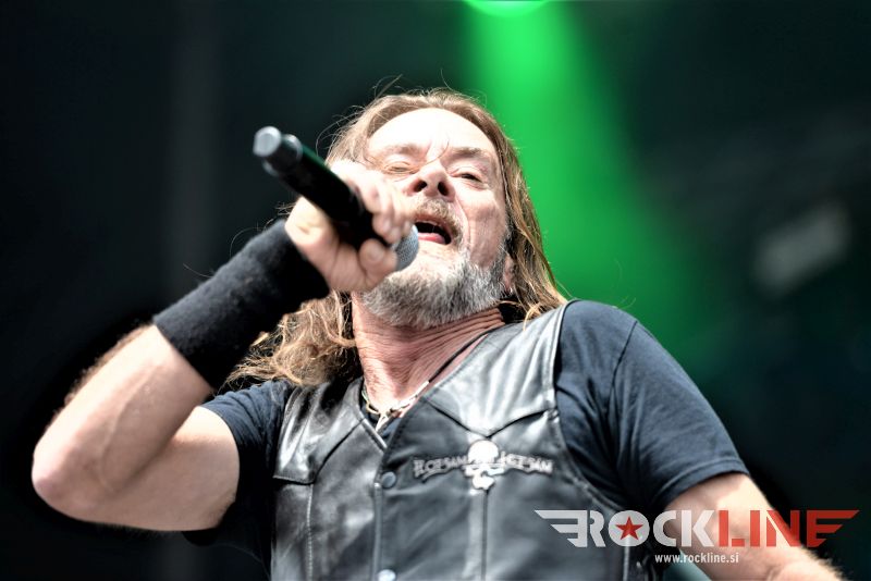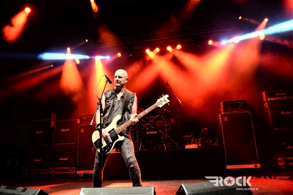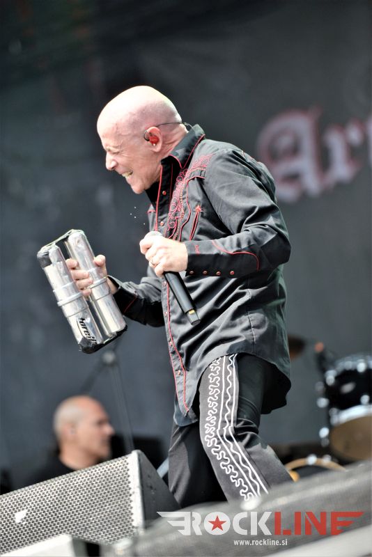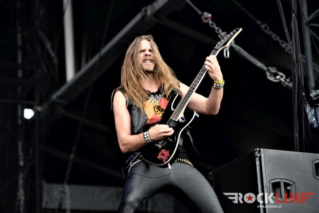 Flotsam And Jetsam veljajo danes za velike legende thrash metala. So posebneži v tem žanru. Pred odrom se je zbrala že konkretna vojska častilcev stare dobre šole thrash metala, bend pa po pričakovanju ni zatajil. Sonce se je konkretno uprlo v oder, bend pa je vtekel vanj kot roj jeznih rdečih mravelj. Govorimo o legendah. Da in energije jim nikakor ne primanjkuje niti na zrelejšo dobo delovanja. Vehemence, drznosti, ostrine in perfektne odrske eksekucije. Kar težko se je sprijazniti z dejstvom da traja ogled koncerta Flotsam And Jestsam v festivalskih razmerah le slabo uro pa vendar. Vokalist Eric A. Knutson je dobro previharil vse viharje. Vokalno je suvereno zdržal skozi nastop in dostavil odlično odrsko predstavo, kitarski dvojec na relaciji Michael Gilbert, ki deluje za originalnega člana skupine še vedno, kot mladenič in pred nekaj leti pridruženi Steve Conley, deluje jedrnato in natančno in je fenomenalna naveza ne stori kiksa. Seveda pa kraljuje nad vsem izjemno bobnanje šele v lanskem letu pridruženega Kena Maryja, ki je z nekaj izjemnimi rollingi in eksplozivnostjo na prehodih ter izjemno natančno eksekucijo le teh, hipoma razblinil vse jalove misli, da bi Flotsam And Jetsam ob odhodu Jasona Bittnerja, ki se je lani priključil Overkill, slučajno izgubili na kakovosti. Ne igra vsak lahko pri Alice Cooperju, v zasedbah Impelliterri in/ali Accept. Kapo dol! Tu je seveda tudi kultna statua basista aMichaela Spencerja. V letošnjem letu je bend izdal novi album »The End Of Chaos« in po pričakovanju odprl koncert z novo Prisoner Of Time, potem pa hitro naklestil klasiki kultne plošče oziroma prvenca »Doomsday For The Deciever« in sicer Desecrator in Hammerhead, med kateri so vpeli novejšo Iron Maiden (»Flotsam And Jetsam«, 2017). Prvi del koncerta je sklenila prav tako nova Demoliton Man, v drugo polovico pa je bend zajurišal z nazobčano in jedko »When The Storm Comes Down« klasiko »Suffer The Masses«, ki je spravila v vrtinčenje lepo bero glav pred odrom, a glavni vrhunec je šele sledil, saj je skupina od tu dalje pa do konca koncerta pravzaprav kar obstala na klasičnem albumu »No Place For Disgrace«, ko je nanizala tri jeklene klasike Dreams Of Death, I Live You Die in sklepno, to je naslovno skladbo albuma. Rušilna nevihta, arizonski tornado! Brez preživelih! Natanko to kar smo si nadejali pred koncertom. Legendarni bend se ne predaja in ne ustavlja. Klasični časi stare dobre šole thrasha so oživeli s skupino, ki je od nekdaj gojila svojo avtorsko pronicljivost in samobitnost. Spoštovanje!