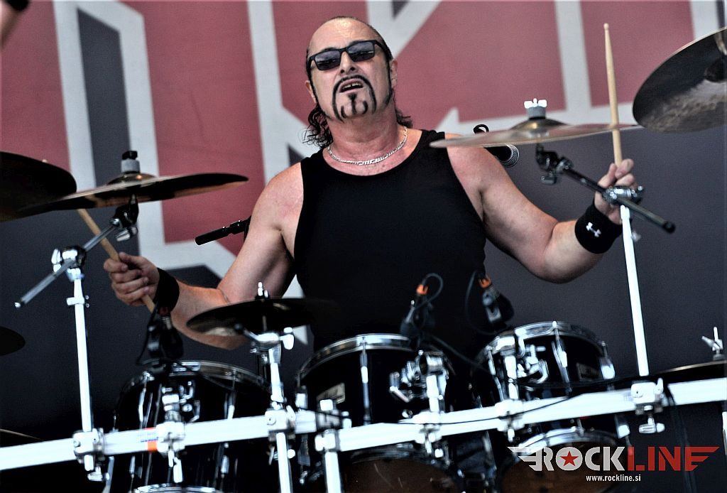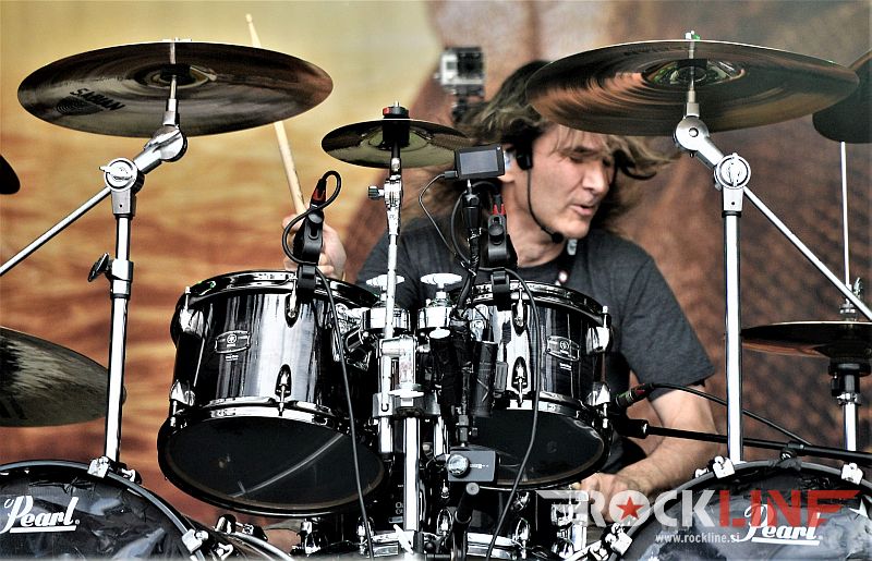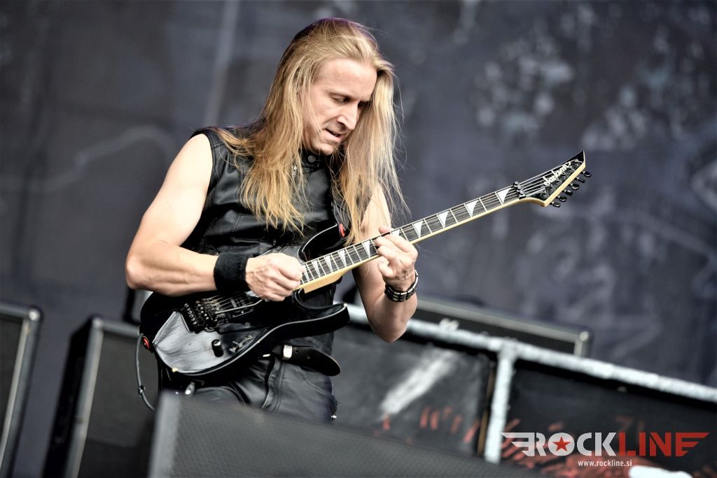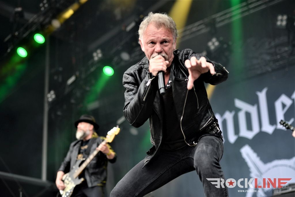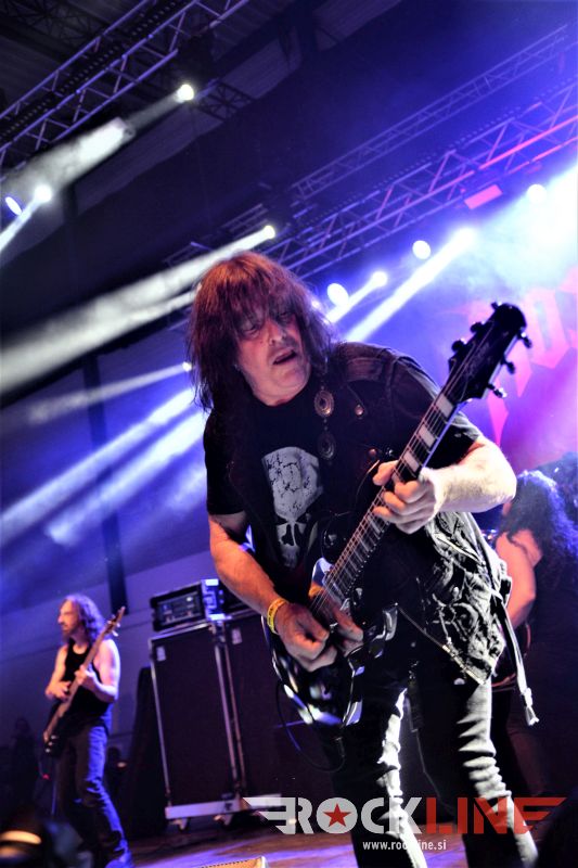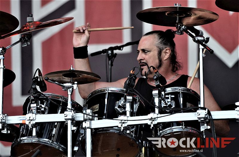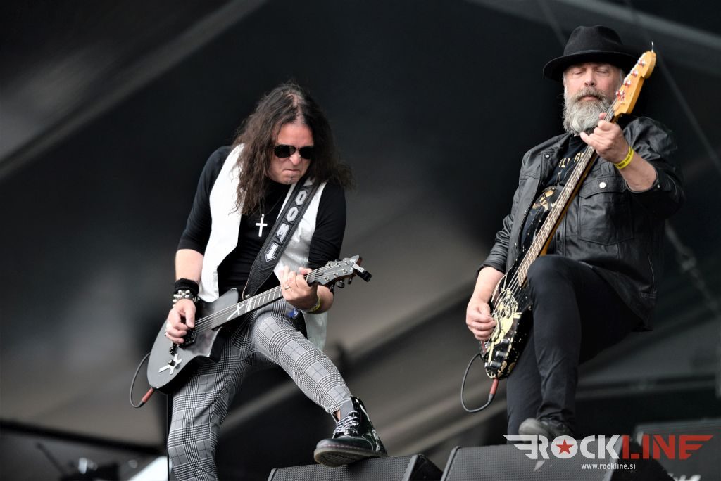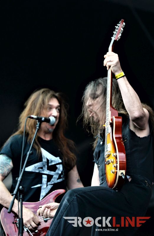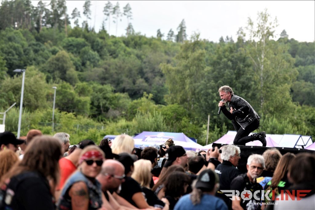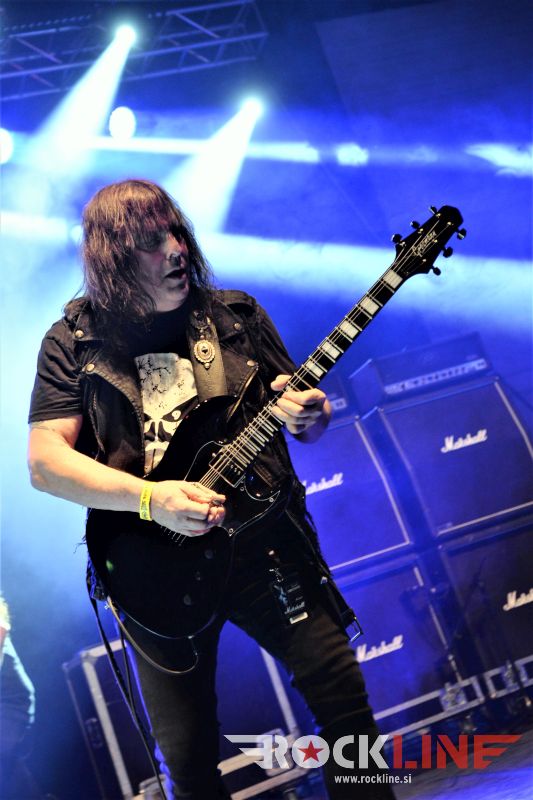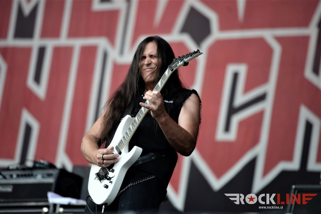 Sledil je nastop še ene kultne ameriške heavy metal zasedbe Metal Church, ki z vrnitvijo pevca Mikea Howea doživljajo pravi preporod. Bend je tako v presledku dveh let nanizal dva nova studijska albuma, aktualnega »Damned If You Do« prav v lanski jeseni. Skupino vodi neomajni »riffmeister« Kurdt Vanderhoof, na bobnih se je v ekipo vključil nekdanji W.A.S.P. bobnar Stet Howland – spomin na preteklo skupino ohranja njegova naličenost okrog oči, tu je izkušeni basist Steve Unger in mlad,i a silno agilni kitarist Rick Van Zandt, s katerim se je skupina predstavila pred leti na tolminskem Metaldays festivalu, ko je pel v skupini še Ronnie Munroe. Skratka. Set lista je to pot prikazala bolj kompleksno Vanderhoofovo plat komponiranja. Vanderhoof je sicer večplastno obtesan glasbenik, pravzaprav se glasbeno ne omejuje, to pa odraža tudi večkrat razgiban razvoj kompozicij, čeprav pripadajo Metal Church sicer okosteneli stari šoli metala. Tako je bend postavil v središče najnovejši izdelek »Damned If I Do« s katerega je izvedel v svežnju desetih skladb naslovno, By the Numners in The Black Things. En album »v rikverc«, se pravi predlani izdani album »XI«, je zastopala »Needle And Suture«, ki jo je bend odigral takoj drugo po vrsti. Skupina je vrnila v repertoar tudi nekaj več materiala iz obdobja, ko je glavne vokale za Michaelom Wayneom v ekipi prevzel Howe in sicer vedno vžigajočo »Hanging In Balance« klasiko Gods Of A Second Chance ter dve »Blessing in Disguise« točki, se pravi Badlands ter sklepno Fake Healer. Bend je pretežno statičen na odru, sploh oba kitarista, z Vanderhoofom na čelu, medtem ko je to statičnost povsem razbil hiperaktivni Howe, ki je pretekel kar se preteči da in preznojil hektolitre potu. Obrazna zariplost ter napete vratne žile v popoldanski pripeki so o tem nazorno pričale. Howe je sicer izvrstno vreščal, zadel vse najvišje lege, čeprav mu je prav pred koncem slišno pobralo nekaj moči. Izmed kultnih klasik se je bend lotil »Metal Church« klasike, sicer fenomenalne Beyond the Black, medtem ko sta ji delali družbo še dve »The Dark« kompoziciji, epska mini suita Watch The Children Pray ter Start The Fire. Bend stoji za svojimi avtorskimi stvaritvami nove dobe in to je glavno. Na odru vidno uživa in kemija, ki jo izžareva je briljantna. Kup hecov, med drugim tudi snemanje s smart phoneom basista Stevea Ungerja, ki je v tem nagajivo pristopicljal povsem do Vanderhoofa. Skratka. Bend seva izredno vedrino. Za še kakšno klasiko je skupini zmanjkalo časa, tako da jo bomo morali loviti na kakem izmed klubskih špilov. Upajmo, da se pojavijo na tleh stare celine znova čimprej, čim bliže in seveda na čim daljši turneji!