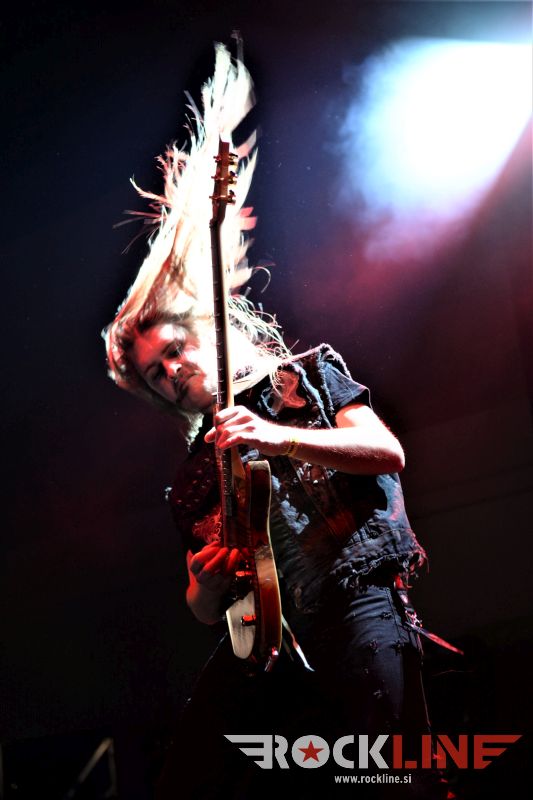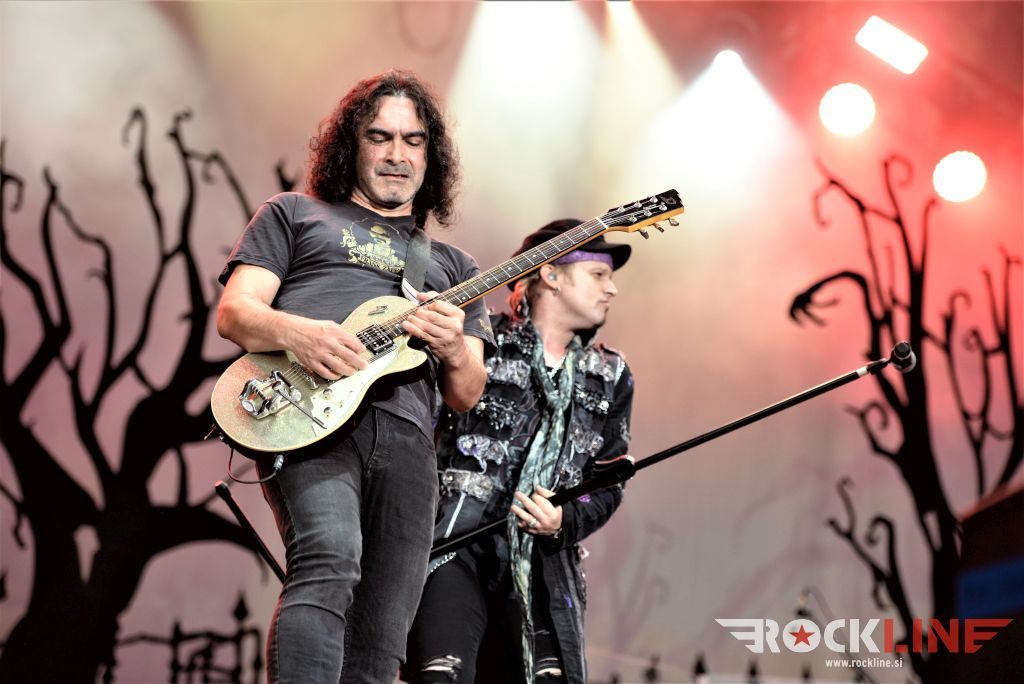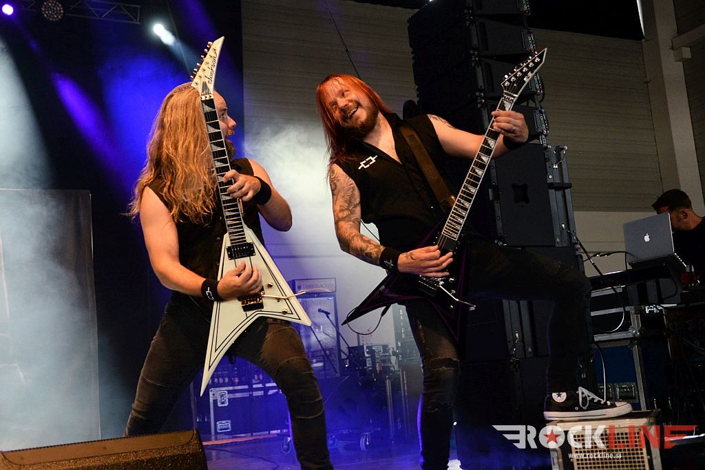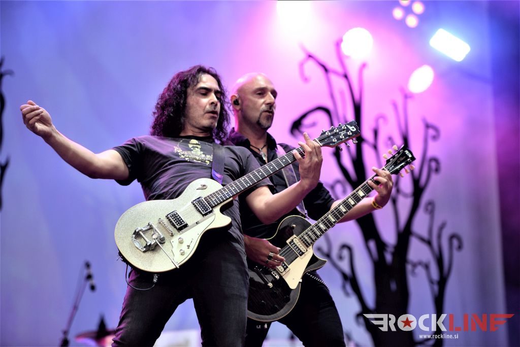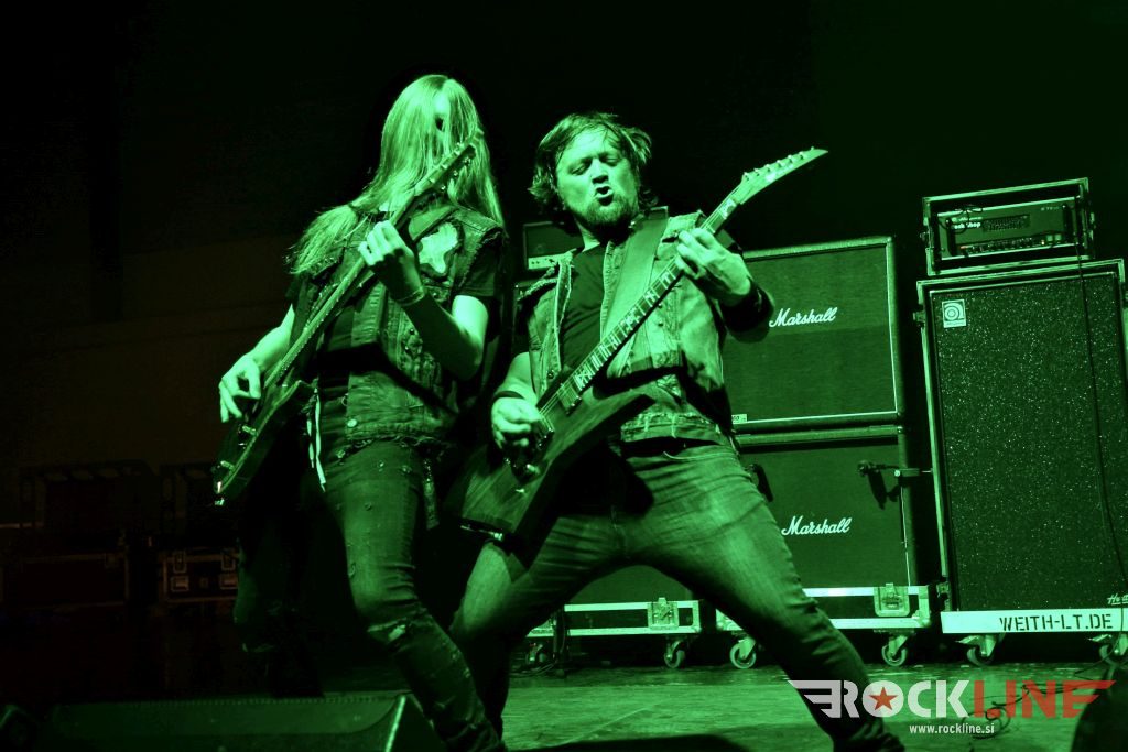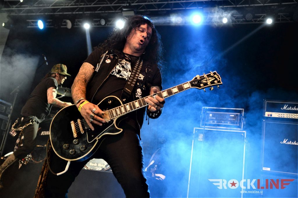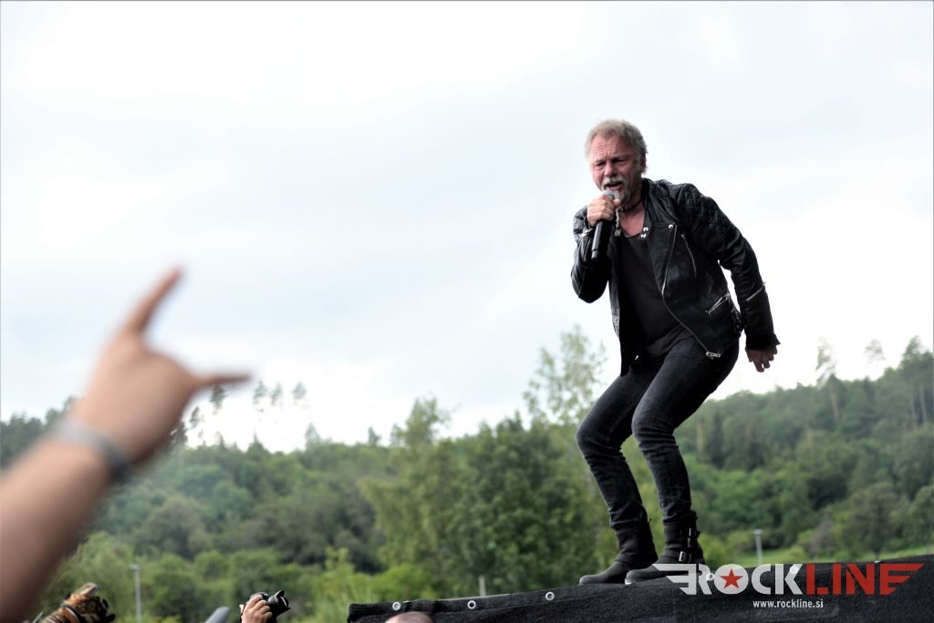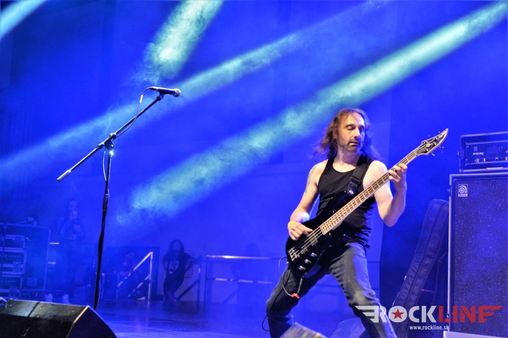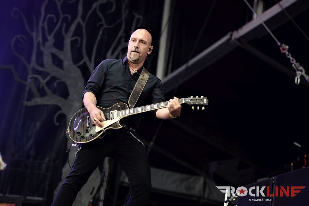 Sledil je nastop še ene kultne ameriške heavy metal zasedbe Metal Church, ki z vrnitvijo pevca Mikea Howea doživljajo pravi preporod. Bend je tako v presledku dveh let nanizal dva nova studijska albuma, aktualnega »Damned If You Do« prav v lanski jeseni. Skupino vodi neomajni »riffmeister« Kurdt Vanderhoof, na bobnih se je v ekipo vključil nekdanji W.A.S.P. bobnar Stet Howland – spomin na preteklo skupino ohranja njegova naličenost okrog oči, tu je izkušeni basist Steve Unger in mlad,i a silno agilni kitarist Rick Van Zandt, s katerim se je skupina predstavila pred leti na tolminskem Metaldays festivalu, ko je pel v skupini še Ronnie Munroe. Skratka. Set lista je to pot prikazala bolj kompleksno Vanderhoofovo plat komponiranja. Vanderhoof je sicer večplastno obtesan glasbenik, pravzaprav se glasbeno ne omejuje, to pa odraža tudi večkrat razgiban razvoj kompozicij, čeprav pripadajo Metal Church sicer okosteneli stari šoli metala. Tako je bend postavil v središče najnovejši izdelek »Damned If I Do« s katerega je izvedel v svežnju desetih skladb naslovno, By the Numners in The Black Things. En album »v rikverc«, se pravi predlani izdani album »XI«, je zastopala »Needle And Suture«, ki jo je bend odigral takoj drugo po vrsti. Skupina je vrnila v repertoar tudi nekaj več materiala iz obdobja, ko je glavne vokale za Michaelom Wayneom v ekipi prevzel Howe in sicer vedno vžigajočo »Hanging In Balance« klasiko Gods Of A Second Chance ter dve »Blessing in Disguise« točki, se pravi Badlands ter sklepno Fake Healer. Bend je pretežno statičen na odru, sploh oba kitarista, z Vanderhoofom na čelu, medtem ko je to statičnost povsem razbil hiperaktivni Howe, ki je pretekel kar se preteči da in preznojil hektolitre potu. Obrazna zariplost ter napete vratne žile v popoldanski pripeki so o tem nazorno pričale. Howe je sicer izvrstno vreščal, zadel vse najvišje lege, čeprav mu je prav pred koncem slišno pobralo nekaj moči. Izmed kultnih klasik se je bend lotil »Metal Church« klasike, sicer fenomenalne Beyond the Black, medtem ko sta ji delali družbo še dve »The Dark« kompoziciji, epska mini suita Watch The Children Pray ter Start The Fire. Bend stoji za svojimi avtorskimi stvaritvami nove dobe in to je glavno. Na odru vidno uživa in kemija, ki jo izžareva je briljantna. Kup hecov, med drugim tudi snemanje s smart phoneom basista Stevea Ungerja, ki je v tem nagajivo pristopicljal povsem do Vanderhoofa. Skratka. Bend seva izredno vedrino. Za še kakšno klasiko je skupini zmanjkalo časa, tako da jo bomo morali loviti na kakem izmed klubskih špilov. Upajmo, da se pojavijo na tleh stare celine znova čimprej, čim bliže in seveda na čim daljši turneji!