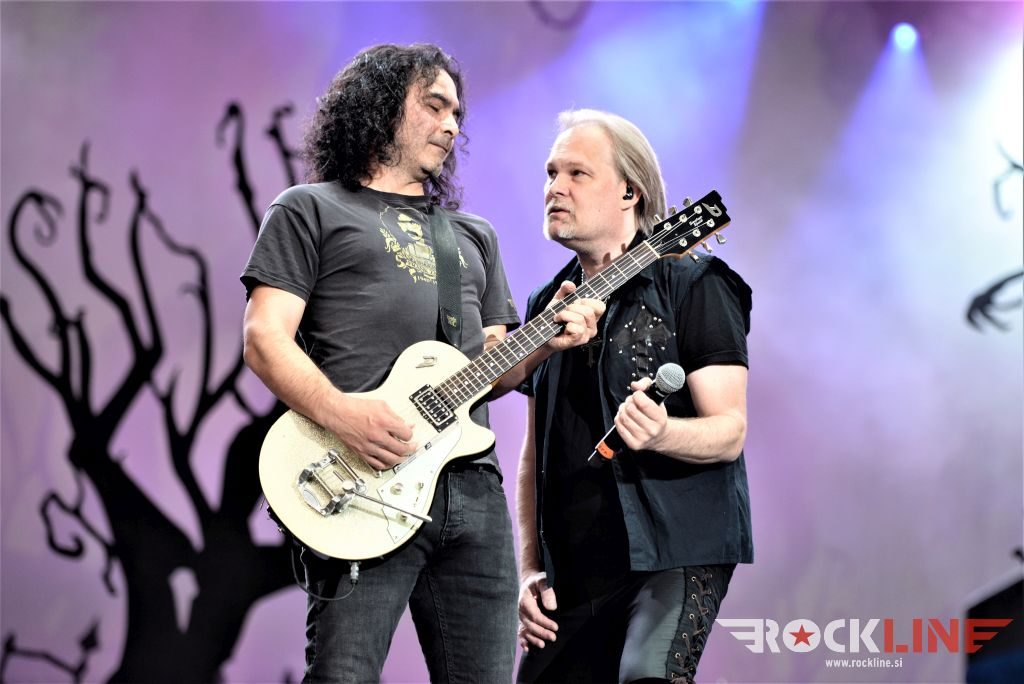 Repertoar je bil nekako smiselno sestavljen po svežnjih točk, ki jih izvajajo posamezni pevci na studijskih albumih, zato da je bilo menjavanja med potekom koncerta kar se da malo. Naj dodam, da »Moonglow« ni edino gostovanje citiranih gostov. Gostovali so na preteklih albumih. Tako je uvod pripadel Sammetu, ki ni pozabil v svojem šegavem slogu skozi domiselne vzgibe rabe humorja takoj razvedriti občinstva. K temu mu je pomagalo tudi škropljenje z neba, ki je presenetil prav vse. Med komadom Book Of Shallows se je Samett ozrl na cat walk in dejal: »Hudiča, ta košček odra je bil pred nekaj trenutki še suh? Ljudje, kako je to mogoče?« Skratka. Odrske kulise izdatno opremljene z dodatnimi podesti pred in za odrom, razširjena in posebej bogata je bila reflektorska razsvetljava, tu so bili celi topovi oziroma salve konfetov in nad vsem seveda, skoraj uro ter pol dolg spektakel, ki je zaobjel izvedbo točk z vseh albumov skupine (glej set listo spodaj). Eric Martin se je pojavil na odru ob izvedbi neverjetno domiselne in posrečene priredbe Sembellovega izvirnika skladbe Maniac, ki je bila uporabljena v glasbeni podlagi za film »Flashdance« (ah, ti sladka nostalgija osemdesetih)! Geoff Tate je odpel Alchemy, Invincible in namesto Kiskeja Reach Out For The Light, prvi izmed gostov pa se je na odru pojavil Jorn Lande, ki sta mu pripadli The Raven Child in Lucifer. In tako dalje…