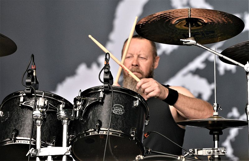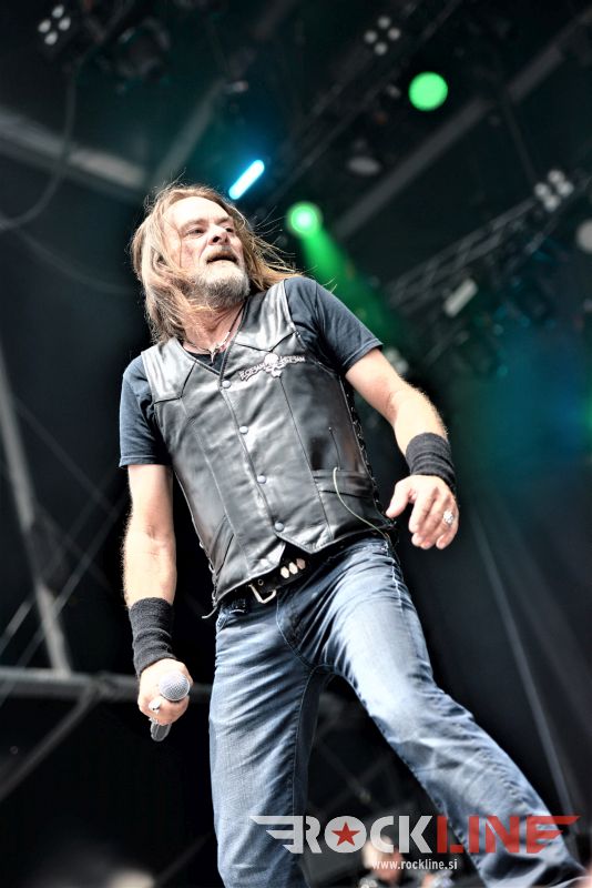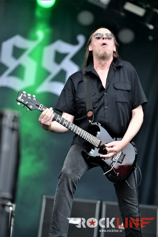 Naposled žanrska sprega! Ura je naenkrat štiri popoldan, ko se povzpnejo na glavni oder legendarni doom metalci iz Švedske Candlemass. Bend torej, ki je na sceno udaril v začetku osemdesetih, je v letošnjem letu izdal novi studijski album »The Dooor To Doom«, s katerim je dokazal svojo, že kar pregovorno doomovsko zagrizenost ter tradicionalno privrženost zvoku in slogu, ki ga je utemeljil zlasti s kultnimi albumi izdanimi v osemdesetih. Še več. V vrste je znova privabil svojega prvega pevca, tistega pred Messiahom, to je moža, ki je pel vokale na studijskem prvencu »Epicus Doomicus Metallicus«. To je Johan Längquist. Ta nikdar ni slovel po kdove kako posebni tehnični vokalni stesanosti, ko ga postaviš ob bok drugim Candlemass pevcem, zato so se porajala vprašanja, kako bo zvozil vokalne naloge. Bend je pripravil odlično set listo v kateri je igral skoraj izključno klasike osemdesetih let, se pravi material s prvih štirih albumov ter vpel poleg le eno novo skladbo, ki pa nikakor ni skazila set liste, to je Astorolous – The Great Octopus. Candlemass posedujejo izdelan avtorski zvok in slog. Ker so oprtani z malho izkušenj in neverjetno kilometrino, so tudi na tokratnem koncertu v Balingenu, preprosto dostavili briljanten nastop ter že samo s svojo pojavo konkretno popestrili programsko bero letošnje izdaje festivala. Längquist je bil suveren, v vsem suveren. Prav tako se je z leti spremenil v karizmatičnega sivolasega skodranega strička, ki je izredno dobro in spretno držal publiko čvrsto ob sebi. Karizme Messiaha seveda ne gre pričakovati, kot tudi ne nivoja eksekucije klasik skupine iz albumov na katerih je pel Messiah, se je pa Längquist povsem dostojno vpel v svojo nalogo in opravičil svoj status znova pridruženega legendarnega prvega pevca skupine. Bend je svoj epski črni marš skozi širjave prižganih sveč in trohnečih nagrobnih plošč, odprl z »Nightfall« klasiko The Well Of Souls (kasneje sta se ji pridružili še Dark are the Veils of Death in proti koncu Bewtiched), tu je edina »Ancient Dreams« točka Mirror, Mirror, pa nič manj edina »Tales Of Creation« točka Dark Reflections, medtem ko je bend pripeljal svoje črno mučnino in maševanje do zaključnega vrhunca, ko je (po pričakovanju) postregel še z dvema klasikama kultnega prvenca   »Epicus Doomicus Metallicus« in sicer A Sorcerer’s Pledge ter sklepno Solitude. Za to uro sta tudi oblačnost in sivina znova prekrili nebo. Le še nebo bi moralo znova »zajokati«, pa bi bila mera polna (Ne! Dežja smo imeli res preko glave)! Vse v vsem. Izvrstna predstava.
