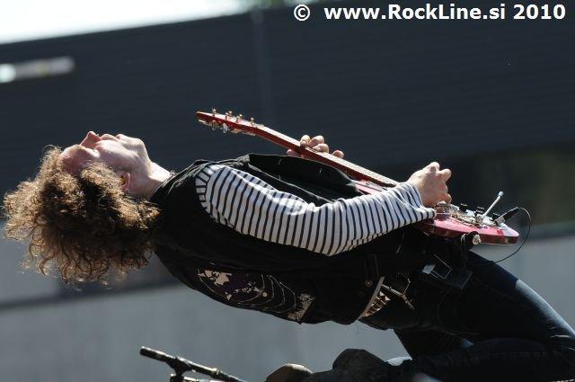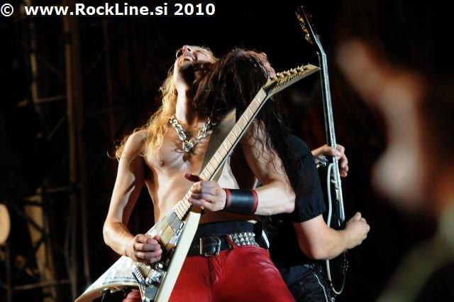 Natančno igranje, riffi okrašeni v harmonijah vodenih s tercami, pogosto trzanje preko riffov, aktivna igra in tekanje po odru, čupanje z ramo ob rami podedovano od Judas Priest in seveda Spandex vse povsod, krepko zategnjen ob mednožno mošnjo! Celo pričeske postrižene v pravem retro slogu metalskih veteranov. Bravurozna uigranost in za rosna leta udejstvovanja suvereno obvladovanje ogromnega odrskega prostora, je že takoj v začetku festivala prineslo na oder prvo izmed vseh lepih presenečenj, ki jih je še skrival dogodek!
