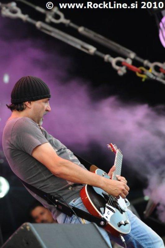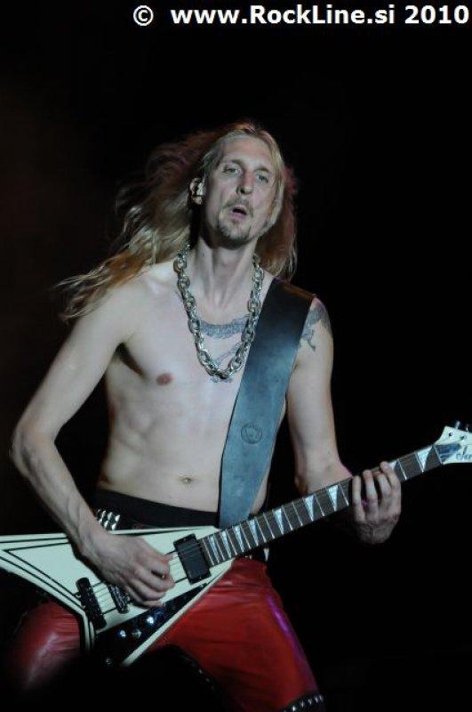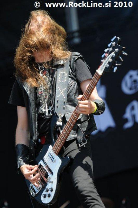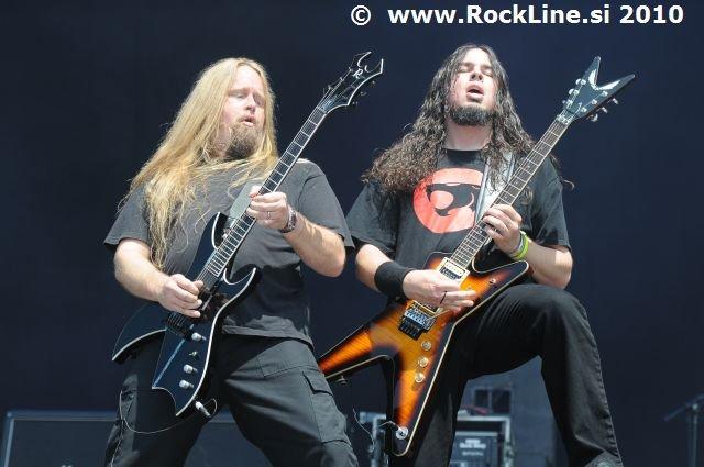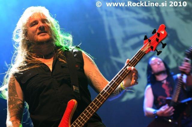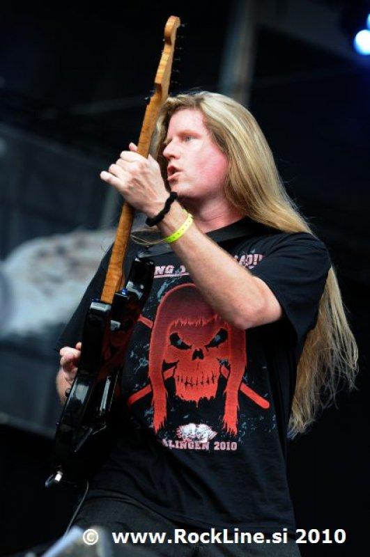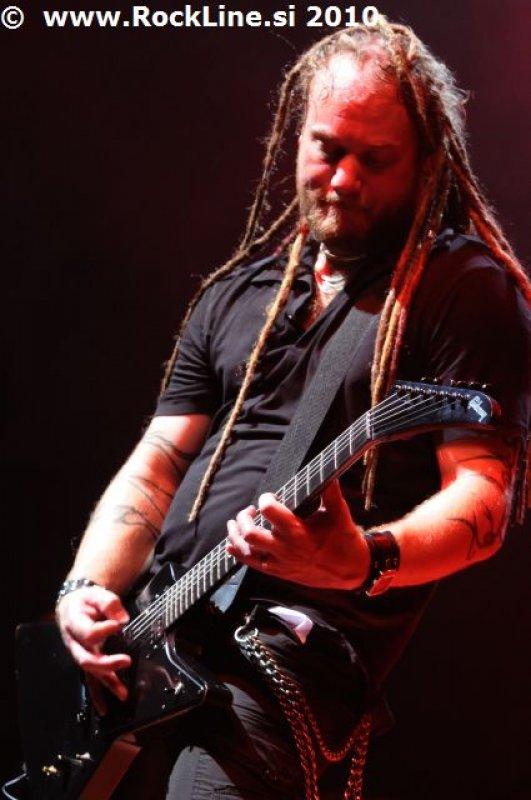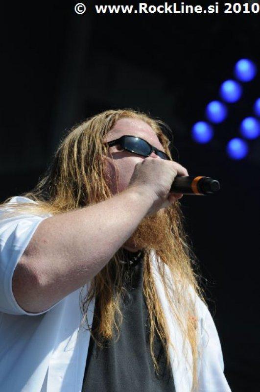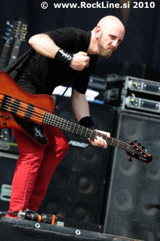 Če imaš v žepu albuma, kot sta “Forbidden Evil” in “Twisted Into Form” res, ne gre varčevati s strelivom, mar ne? Kvintet, ki je prelil krepko litražo znoja sredi neznosne opoldanske pripeke je usekal z Infinite (“Twisted Into Form”) ter pri albumu ostal skozi prve tri skladbe. Je še kaj lepšega, kot spremljati fanatično delo obeh kitaristov Locicera in Smytha, ki z nadnaravno hitrostjo drvita preko kitarskih vratov, ko se kar kadi od vse plejade udarjenih tonalitet, najbolj odštekanih kombinacij soliranja? Če lahko kje zares nad vsem uživamo, ko je govora o Forbidden, so to potem resnično kitarske solaže (“Dobro jutro!” ljubitelji Heathen in Testament). Russ Anderson, ki je po vsej verjetnosti najbolj trpel na soncu izmed članstva ekipe, to pot niti enkrat ni uporabil “cat walka”, pač pa se je bolj kot ne gugal v senci skozi 50. minut na glavnem odru, pokrit s sončnimi očali. “Rdečkar” kot je, gotovo ve, da zanj ni najbolje, če se nastavlja sončnim žarkom sredi poldneva. Russ je odpel suvereno, sicer ne najbolj silovito, kot bi človek pričakoval, a povsem zadovoljivo.