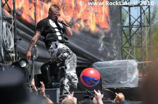 Skupina je pod odrom dotlej zbrala daleč največ privržencev pod odrom, ki so noreli v pripeki z zasedbo. Sabaton so izkoristili veliki oder v vseh pogledih. Sekstet v katerem sproža daleč največ odrske kinetike pevec Joakim Broden – mali človeški oklopnjak, glede na opravo in smešno zabavno kombinacijo Top Gun Ray Ban očal ter indijanskega irokeza, je privlekel na oder tudi prave pirotehnične učinke.