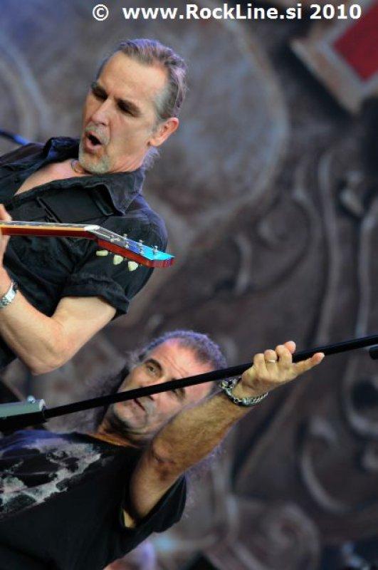 Veterani so pokazali, da z njimi ne gre češenj zobati! Bili so eni redkih predstavnikov tradicionalnejšega izročila hard rock godbe na festivalu, zato je bila obveza slediti koncertu od prvega do zadnjega diha še toliko večja. Uvodna Long Sticks Goes Boom je takoj nakazala,kakšno pot bomo potili naslednjo uro in še nekaj nastopa. Jedrnati, udarni riffi AC/DC tipa z občasno vsebnostjo “slide” tehnike kitarskega dvojca Von Arb – Kohler, s kančkom manj blues malopridnosti in spogledovanjem s tršim, heavy metalskim zvokom so stalnice Krokus muziciranja že vse od začetka glasbene poti na koncu sedemdesetih. Poleg avtorskih del iz vseh ustvarjalnih obdobij skupine so Švicarji zaigrali lepo število priredb, začenši z American Woman, preko večne klasike Born To Be Wild do velikega finala z Rainbow standardom Long Live Rock’n’Roll. Omenjene skladbe so bile razumljivo sprejete najglasneje, tudi sicer se Krokus lahko ponašajo z dobro podporo na nemških tleh, kar je za švicarske bande v Nemčiji že kar tradicija. Energičnost nastopa je temeljila na že precej sivolasem vokalistu Marcu Storaceu, ki je pridno izkoriščal usluge “cat walka”, puščice nalezljivega riffanja je streljal že omenjen kitarski par Von Arb & Kohler, za uigrano izvedbo pa sta pri Krokus zadolžena stara mačka v ritem sekciji, basist Chris Von Rohr in bobnar Freddie Steady. ki sta v ozadju poveljevala in zanesljivo priplula barko do pristanišča, odetega v tisočere srebrne konfetke.