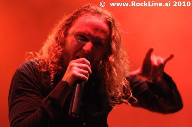 Ni še minilo deset minut od presenetljivega skoka na glavni oder vokalista Mikaela Stannea, ko so Švedi Dark Tranquillity z At the Point of Ignition že krenili na uro in pol dolgo potovanje skozi svojo studijsko diskografijo s povdarkom na februarja izdanem albumu “We Are the Void”. Edini pravi še delujoči predstavniki slavne gothenburške šole melodičnega death metala, ki je Gothenburg postavila na svetovni metal zemljevid, so s spevnimi skladbami zalučali rokavico zabave željni, agresivnejšim ritmom naklonjeni množici. Prepoznavnost so Dark Tranquillity našli s klaviaturnim spremstvom Martina Brändströma, katerega prisotnost skozi vso skladbo zna biti še kako privlačna za vse ljubitelje iskanja melodike v ekstremnejših metalskih zvrsteh, njegove melodije večkrat tvorijo celo glavno vlogo v intrih in izhodih iz skladb. Priporočljivo tudi za tiste, ki se navadno izogibajo melodeth zvokom! Band se je na notranjem odru znašel odlično, brez dvoma bi energija klubskih nastopov navajene skupine namreč na glavnem odru izpuhtela v zrak med zvezde, za jagodo na vrhu smetane pa je poskrbel zvok iz mešalne mize, ki je dobro poskrbel za v svetu melodičnih zvrsti še kako pomembno simbiozo na relaciji klaviature – kitari. Še enkrat več je svojo večstranskost dokazal karizmatični Stanne, ki mu prehodi iz globokega growla do čiste vokalne linije ne povzročajo niti najmanjših preglavic. Fani so zagotovo prišli na svoj račun, čeprav sem, roko na srce, glede na sloves Švedov pričakoval večjo gnečo pod odrom. Razlog gre iskati v dejstvu, da je Bang You Head!!! namenjen prvenstveno heavy metalskim privržencem, zato so se v celotnem seznamu nastopajočih Dark Tranquillity znašli na samem vrhu ekstremnosti in posledično manjšemu zanimanju publike, kot bi ga dobili na katerem od drugih festivalov.