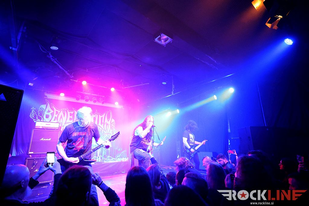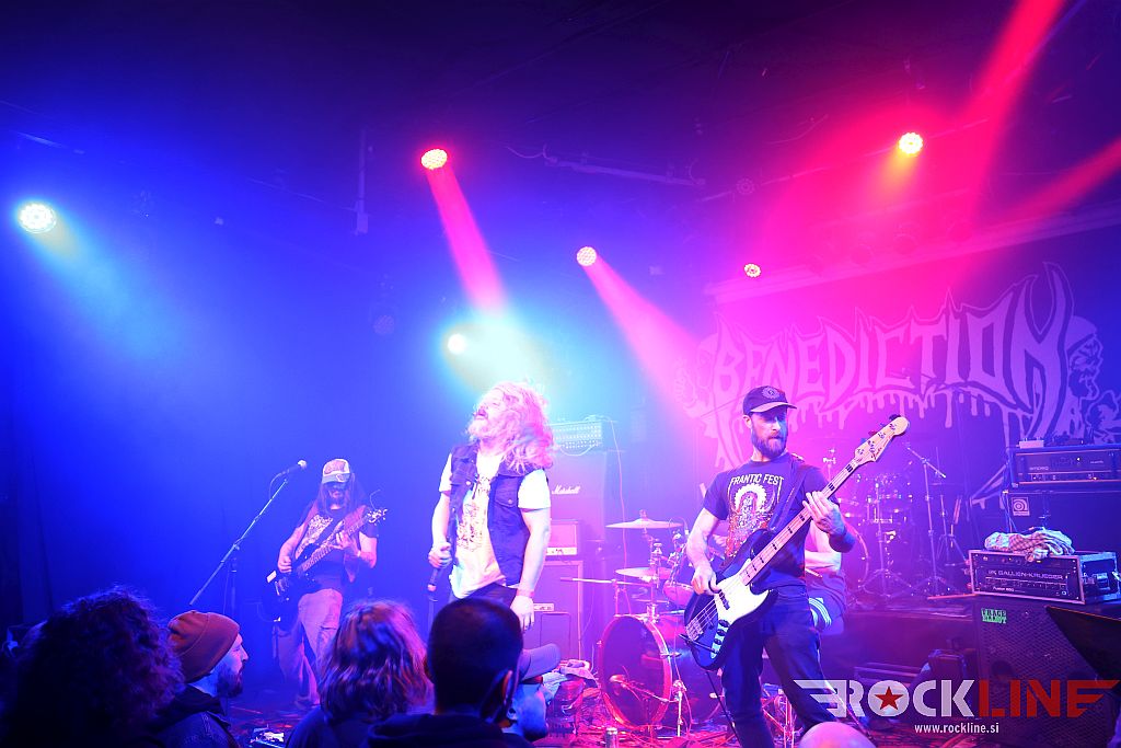 Benediction so legende death metala. V Sloveniji niso neznanci, vendar pa glede na več kot zavidljivo ero svojega delovanja, pri nas niso ravno pogosto nastopali. A pozor! Leta 1991 beležimo njihov prvi obisk. Takrat so nastopili v Mariboru. Leta 1999 pa so se ustavili prvič tudi v Ljubljani! Pred tremi leti so bili glavni nosilci festivala Metaljot Raspaljot v Laškem. Vmes so nastopili pri nas tudi leta 2013 na festivalu Metaldays (takrat v postavi z Anaal Nathrakh vokalistom Daveom Huntom – RockLine recenzija koncerta) in v oktobru leta 2008 na Metelkovi!