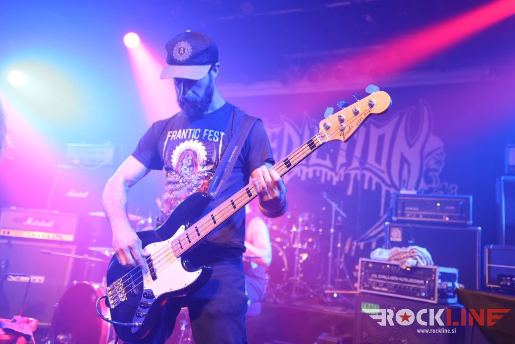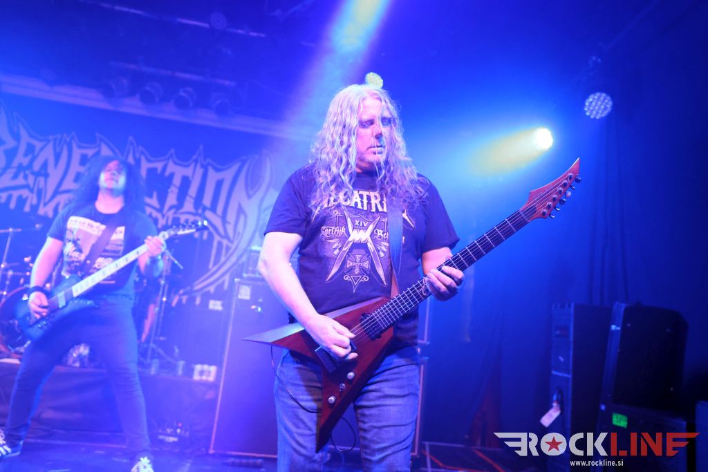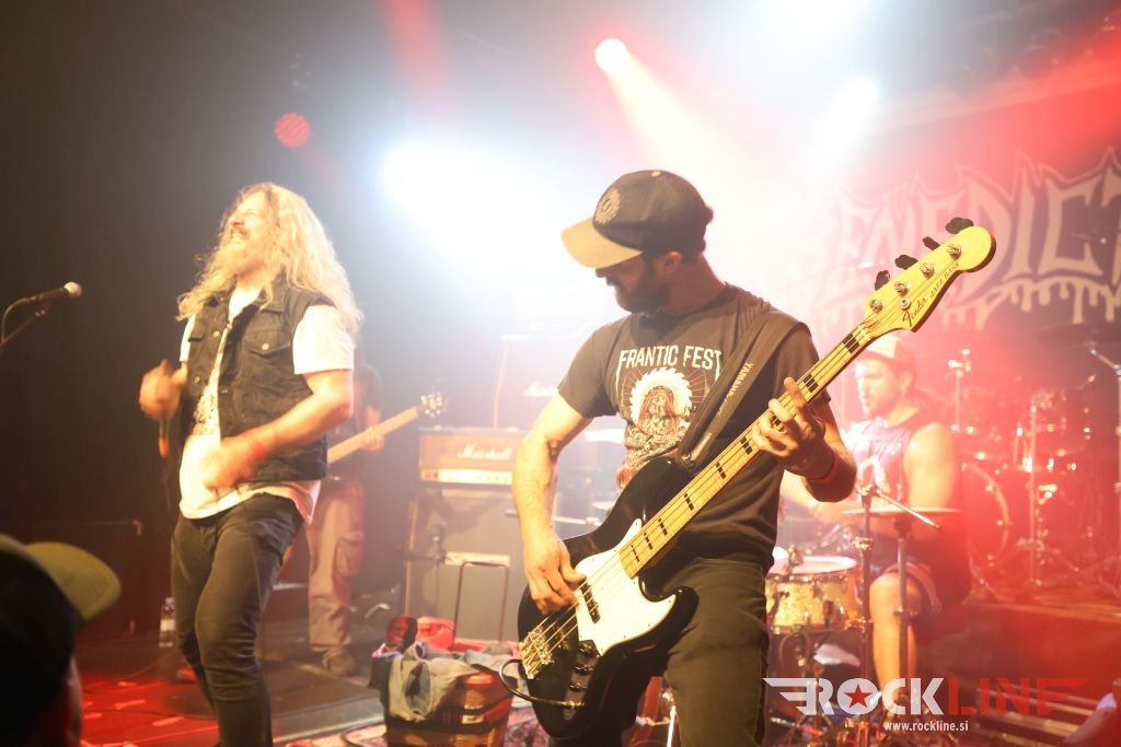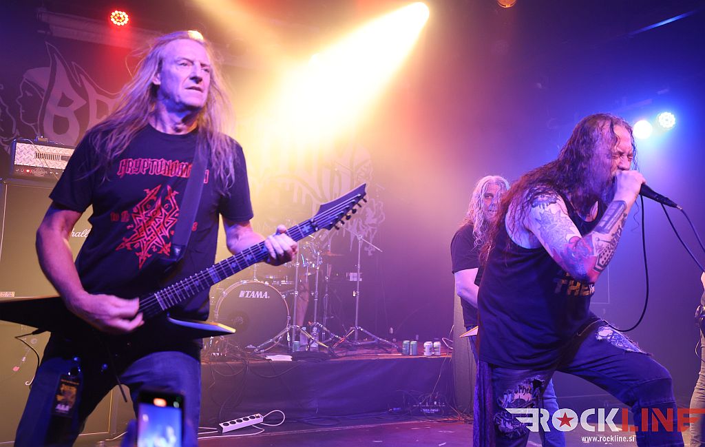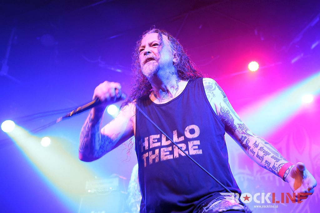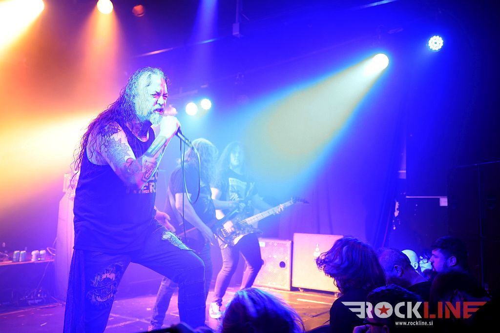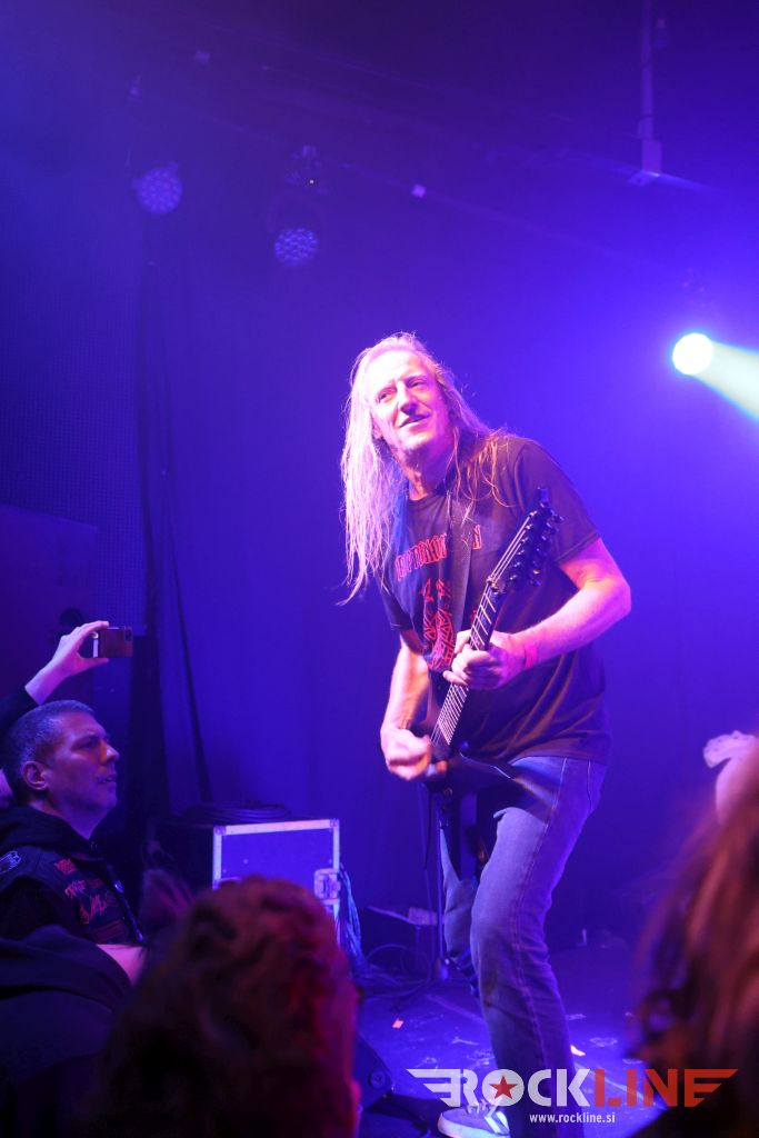 Zvok v vsem spodoben in zadovoljujoč, razen nemara v pasažah, kjer se je delo v že tako minimaliziranih solažah, nekoliko potuhnilo v sami zvočni sliki. A zloveščega masakriranja, ki je skozi plamteče zublje goltalo prizorišče, ni primanjkovalo. Bend je koncertni uvod odprl z novejšim materialom aktualnega albuma in predhodnika “Scriptures” (2020), potem pa kmalu presekal atmosfero in nas popeljal v nedrja starejših klasik, kot je naslovna točka prvenca “Subsconscious Terror” (1990), pa za njo Vision In The Shround (“The Grand Leveller”, 1991) ter Violation Remain iz albuma “Transcend The Rubicon” (1993). Bolj surovo, bolj ‘do kosti’ in bolj primordialno od tega čemur smo bili priča, pravzaprav v aksiomu ekstremnega metala ne gre! Nobenega lepotičenja, nobene protetike, dodatne navlake. Samo frontalno in? V vsem rušilno. Ura in deset minut z dodatkom vred! Prehitro so tekle minute!