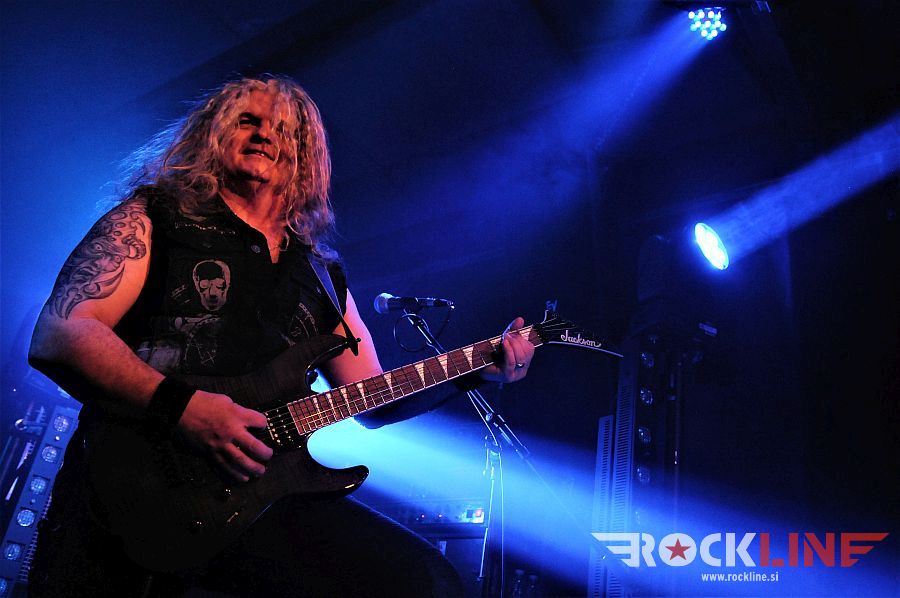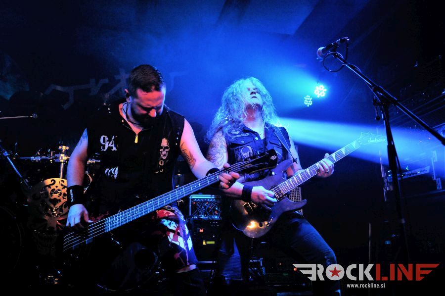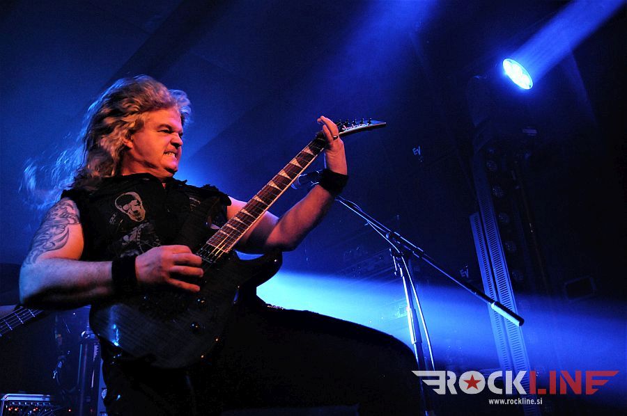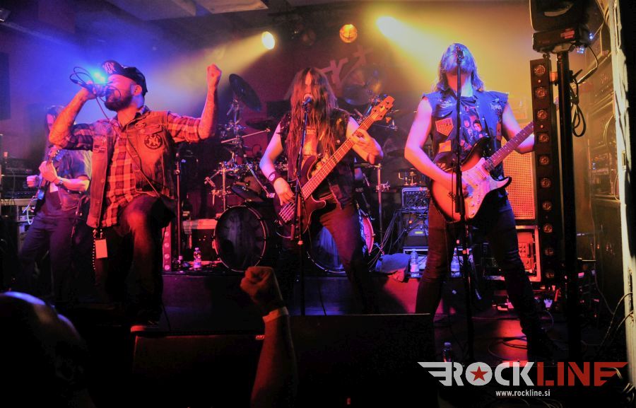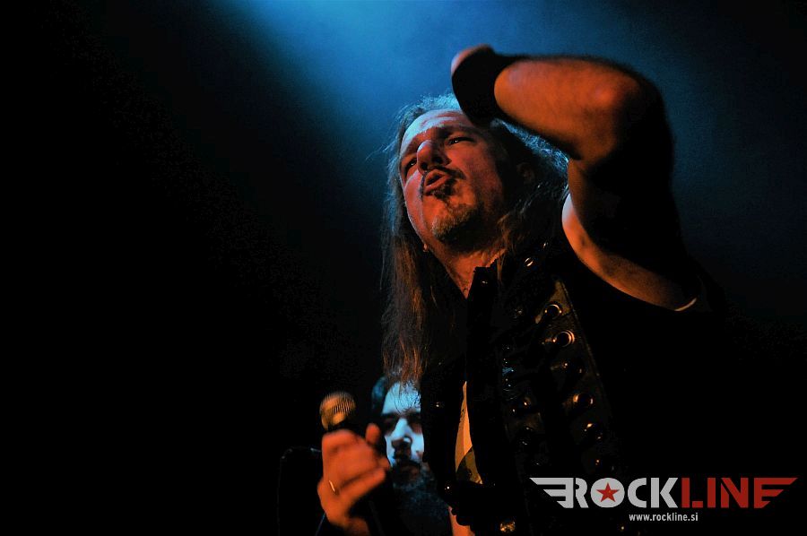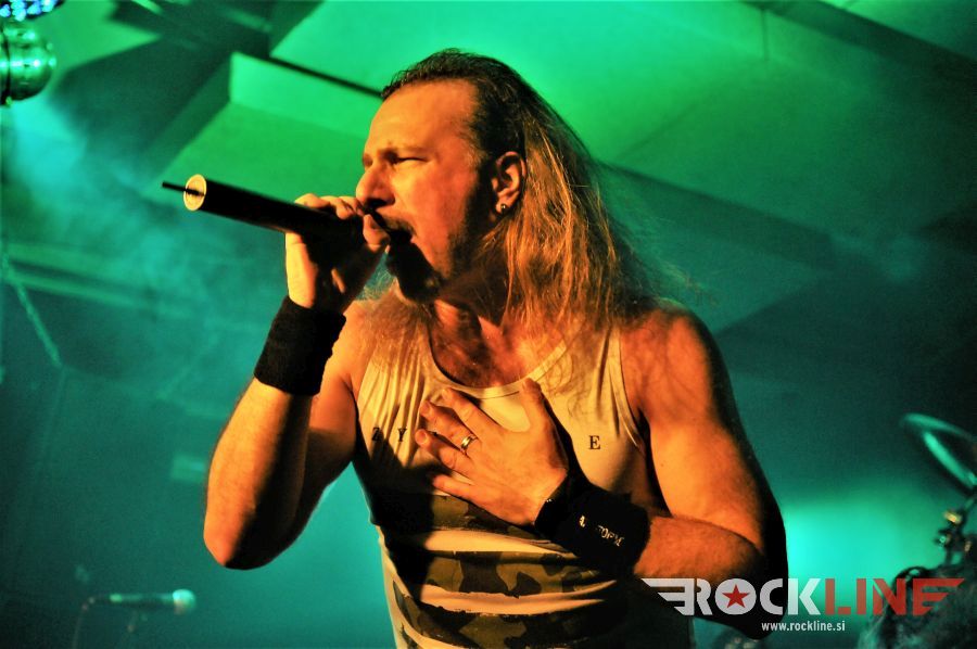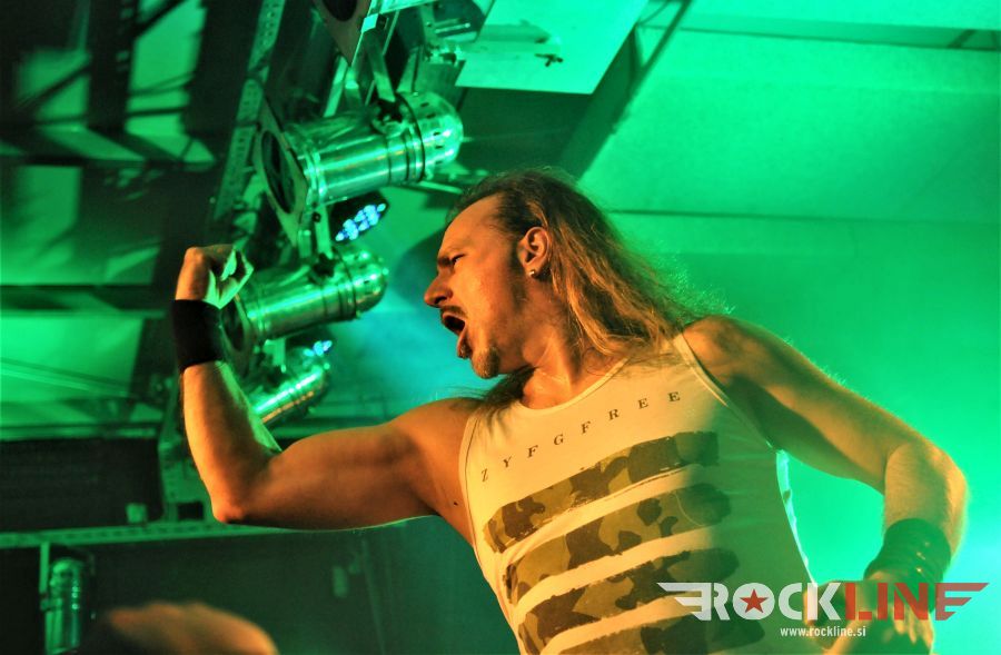 Mob Rules, zasedba, ki smo jo v lanskem letu ujeli na nastopu v sklopu nemškega festivala Bang Your Head!!!, je bend, ki praznuje letos 25. letnico obstoja, obenem pa minevata natanko dve dekadi od izdaje njihovega studijskega prvenca »Savage Land«. Pred leti, zlasti po albumu »Ethnolution A.D.«, so razširili svoje aranžiranje, v bombastiki in epskosti, pa se tako s predhodnikom »Tales From Beyond (2016), kot tudi najnovejšim “Beast Reborn« – recenzija TUKAJ, spogledujejo energetsko tudi z vibracijo projekta, kot je Avantasia. Pred dvema letoma so prerasli v sekstet ter dodali v postavo dodatnega (ritem) kitarista Sönke Jenssena. Bendu poveljuje karizmatični in danes edini originalni član skupine Klaus Dirks, ki ni pozabil nase povezniti nekaj baročno okrancljane konfekcije, z viktorijanskim cilindrom vred. Na prvi pogled spominja mimobežno na Urbana Breeda (Serious Black, Bloodbound). Klaus Dirks ostaja izvrsten vokalist. e je izvrsten vokalist. Dirk je odlično pel, čuti se da je njegov učitelj Ronnie James Dio. Karizme mu ne primanjkuje, prav tako pa s svojimi taktičnimi prijemi nagovarjanja občinstva, izkazuje veliko suverenost ter izkušenost, če ne kar rutino. Obenem mu ne primanjkuje niti smisla za nadvse simpatično duhovičenje. Bend je prikazal izvrstno uigranost, ko je marširal skozi nove skladbe (Children’s Crusade, Sinister Light ter uvodna Ghost of A Chance), kot tudi skladbe albuma »Tales From Beyond« (Somerled, On the Edge, My Kingdom Come), ki se kreativno in vibracijsko vsekakor zelo dobro dopolnjujeta oziroma medsebojno navezujeta. Bend je začinil koncert z izvedbo dveh klasik iz verjetno njihovega najbolj prepoznavnega albuma kariere »Hollowed Be Thy Name«. To sta dve skladbi, brez katere bi jih feni kje v Nemčiji verjetno linčali in sicer: In the Land of Wind And Rain ter naslovno skladbo s tega albuma, ki je sklenila koncert. Na set listi sta svoje mesto našli še »Ethnolution A.D.« skladba The Last Farewell ter Black Rain vzeta iz albuma »Among the Gods«. Izredno kompakten in uigran nastop, okrepljen z izvrstnim soliranjem odličnega Svena Lüdkeja, teatralnostjo Dirksa, kot tudi zelo dobro ozvočenim nastopom. Odlična predpriprava ter ogrevanje za nastop nosilcev večera.