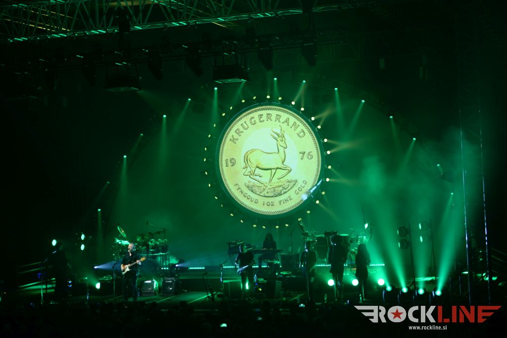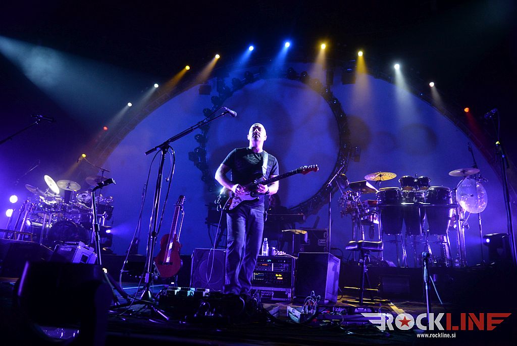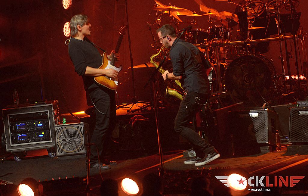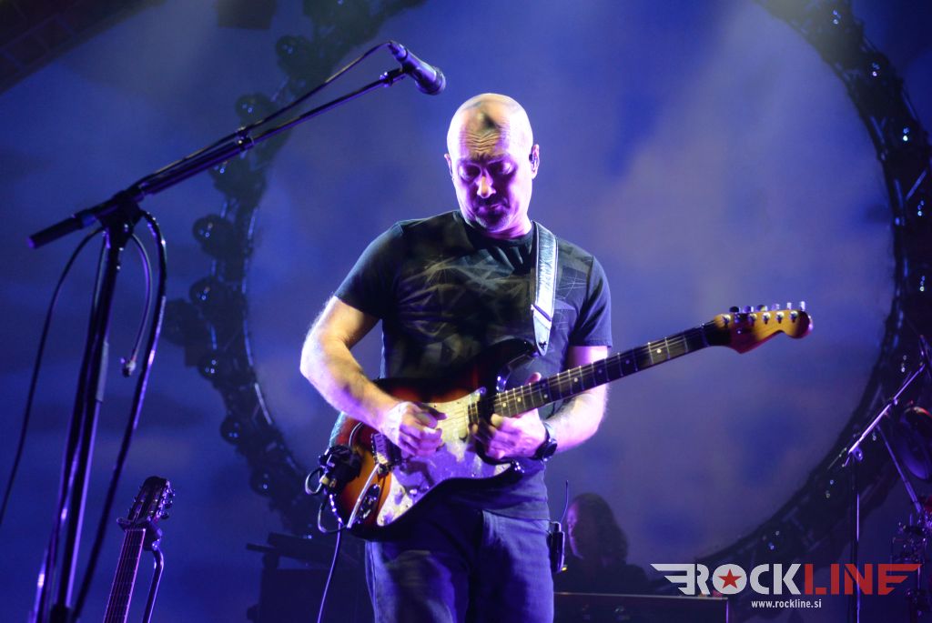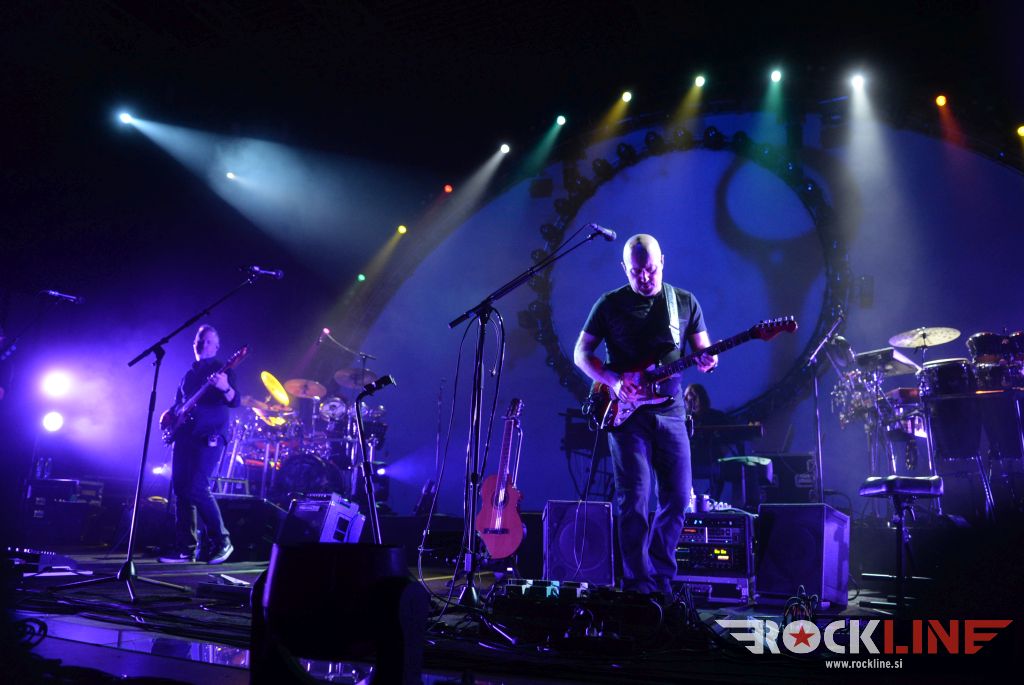 Že s samo opremo kopirajo originalne kitare Davida Gilmourja, izvedba pa vse to v vsem opravičuje. Prvi del je bil dejansko posvečen obdobju delovanja Pink Floyd v eri brez Watersa. Se pravi zadnja dva albuma (Sorrow je prinesel prav tako enega vražjih vrhuncev). Za drugi del si je izmed skladb »The Division Bell« albuma bend privarčeval le A Great Day For Freedom. Minute so letele kot sekunde, vrhunec prvega dela pa je bil definitivno »Animals« ep Dogs (vrhunsko presenečenje setliste), ki je bil izveden ‘od glave do pete’, pri čemer so Brit Floyd uvodoma nadražili publiko s Pigs On The Wing (Pt. 1), kot to veleva ta fantastični in blago prezrti Pink Floyd album. Prav Dogs je bil eklatantni primer perfekcije, ki se je držijo Brit Floyd. Večina nasnetih kitar slišnih laiku na originalni verziji, je odrsko interpretiranih s pomočjo obeh kitar, prav tako pa to velja za vokale, ki se na studijskem izvirniku prelivajo, oziroma dopolnjujejo. Česar nista zmogla Darlington in Cattell, so dopolnile harmonije spremljevalnih vokalistk. Mojstrsko! Dlakocepsko. Seveda pa reinterpretacija ‘Gilmouresk’ vse od solaž, do samega zvoka, ki lovi original v piko, večkrat odnaša glavnino vse pozornosti in prevzetnosti!