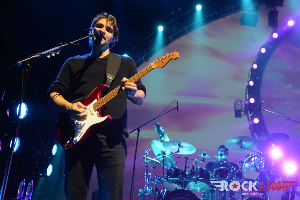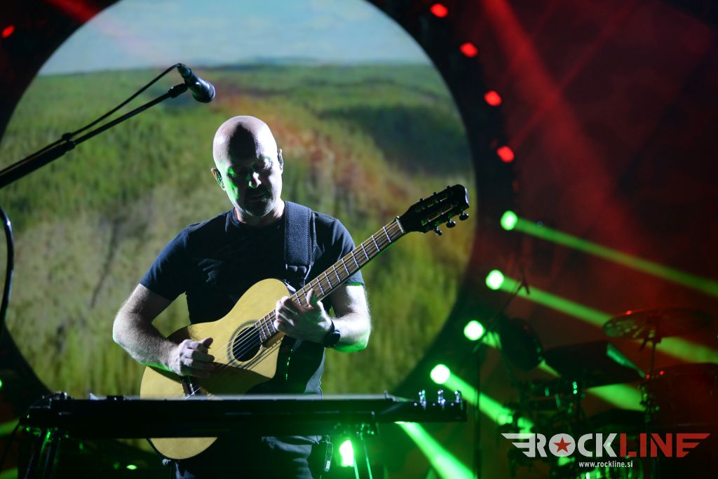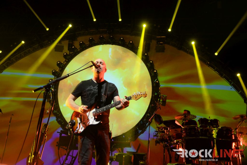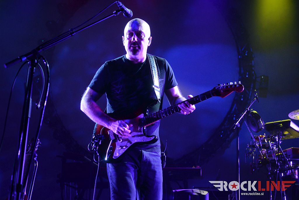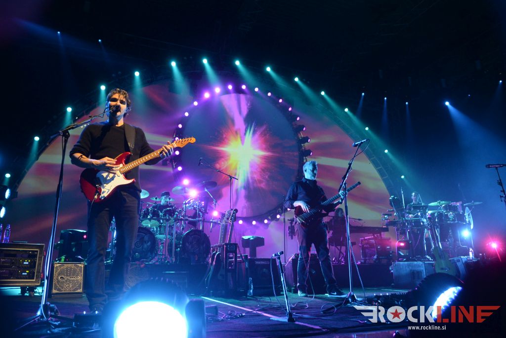 Že s samo opremo kopirajo originalne kitare Davida Gilmourja, izvedba pa vse to v vsem opravičuje. Prvi del je bil dejansko posvečen obdobju delovanja Pink Floyd v eri brez Watersa. Se pravi zadnja dva albuma (Sorrow je prinesel prav tako enega vražjih vrhuncev). Za drugi del si je izmed skladb »The Division Bell« albuma bend privarčeval le A Great Day For Freedom. Minute so letele kot sekunde, vrhunec prvega dela pa je bil definitivno »Animals« ep Dogs (vrhunsko presenečenje setliste), ki je bil izveden ‘od glave do pete’, pri čemer so Brit Floyd uvodoma nadražili publiko s Pigs On The Wing (Pt. 1), kot to veleva ta fantastični in blago prezrti Pink Floyd album. Prav Dogs je bil eklatantni primer perfekcije, ki se je držijo Brit Floyd. Večina nasnetih kitar slišnih laiku na originalni verziji, je odrsko interpretiranih s pomočjo obeh kitar, prav tako pa to velja za vokale, ki se na studijskem izvirniku prelivajo, oziroma dopolnjujejo. Česar nista zmogla Darlington in Cattell, so dopolnile harmonije spremljevalnih vokalistk. Mojstrsko! Dlakocepsko. Seveda pa reinterpretacija ‘Gilmouresk’ vse od solaž, do samega zvoka, ki lovi original v piko, večkrat odnaša glavnino vse pozornosti in prevzetnosti!