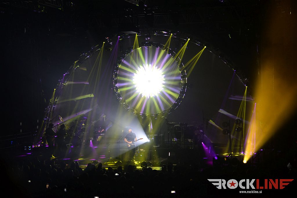 Pred začetkom so odmevali v dvorani zvoki enaki tistim, ki so jih Pink Floyd uporabljali na »The Division Bell« turneji. Zvoki vzeti iz pragozda. Regljanje žabic, šum obilnih kapelj dežja in podobno. Bend je odprl z Astronomy Domine. Z uvodom so mimobežno segli v psihadelično ero Pink Floyd, potem pa preskočili v ero brez Watersa, ko je sledila buditeljska Learning To Fly. Natanko tako kot se je odvijala The Division Bell turneja pred 30. leti. No, in tu je že tisti na moč ganljivi Pink Floyd rekviem imenovan High Hopes. Fascinantni in neminljivi nagrobnik, ki si ga je skupina Pink Floyd postavila na repu albuma »The Division Bell«, ki s koprnečo melanholijo in magijo, dobesedno ‘zruši z nog’. Že uvodoma so Brit Floyd imponirali z neverjetno prožnostjo vseh treh glavnih vokalistov, izjemno pretkano porazdeljenostjo glede prevzemanja vodilnih solaž in medsebojnega navezovanja obeh kitaristov, pri čemer je svoje poglavje dostavila seveda ‘steel pedal’ solaža Damiana Darlingotna v bombastičnem zaključku epske High Hopes. Usklajenost je vrhunska, čuti se da je ta bend ogromno preigral skupaj. Nič jim ne uide. Tudi zvok v dvorani je bil vrhunski tega večera! Ljudje v transu hipnoze. Otrpli. Seveda salve navdušenja. Brit Floyd so prebudili z lahkoto strasti in emocije podprte z veliko nostalgijo, ki nas veže na mogočne Pink Floyd. Bend je izpustil izmed »The Division Bell« klasik igranih na turneji pred 30. leti le What Do You Want From Me.