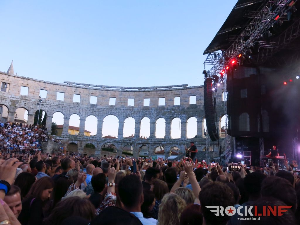 Bil je eden tistih, redkih suhih dni v izteku julija, sicer obilno založenega s strupenim nalivanjem, zato je bilo tokratno potovanje proti puljski Areni, kamor vselej radostno zahajamo, velika sprostitev ter velik užitek in veselje. Malo sva bila pozna in tako precej po sreči in poceni (!!!) parkirala avto v prijetni bližini prizorišča kamor so v kolonah bredle množice. Krasen dan, krasna energija. Serija sproščenih figur, polnih nasmehov. Vibracije so jasno naznanjale, da bo to nepozaben koncertni večer. In ta sklep si lahko potegnil, še pred njegovim začetkom. Glede na izkušnje preteklih srečanj z Bryanom in na podlagi izjemnih vtisov, ki jih zapuščajo njegovi koncerti, je bilo torej jasno, da bo to še en popolnoma zmagovit koncertni spektakel. To je bila tista vzmetnica oziroma katapult do katerega občasno prideš in te nenadejano odstreli za nekaj časa daleč, daleč stran od stresnih tegob, ki si jim sicer dnevno izpostavljen.