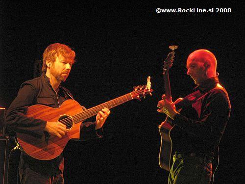 California Guitar Trio so nastopali praktično v centru Milana, točneje v teatru Leonardo Da Vinci. Koncert se je pričel nekaj minut preko 21.00 ure. K sreči brez predskupine. Trio in Tony Levin so bili sprejeti v nabito polni dvorani z velikim navdušenjem. Za dvig temperature na pravi nivo, so odprli koncert s pospešeno Melrose Avenue (“CGT + 2”, 2000). V hudomušno razgibani skladbi, s pravim orientalskim pridihom je trio s Tonyjem Levinom v trenutku spravil občinstvo v intenzivno pozibavanje. Olja na ogenj je prilil Blockhead izpostavljene figure osnovnega motiva, kjer so pobje takoj pokazali eno svojih imenitnih zaščitnih znamk, ko so v trenutku ustvarili harmonični preplet treh kitar. Perfektni kontrast otvoritve je predstavljal surfersko obarvani Unmei, kjer je stopil v ospredje mojster Hideyo, medtem ko je Beethovenova zapuščina pridobivala na krilih vrtoglave hitrosti brzenja strunskih harmonij, da na koncu že nisi več vedel ali so fantje še pri Beethovenu, ali pa so iz njega že razvili Čmrljev let. Pa ostanimo še malo v klasičnih vodah in pri Bachu s Prelude Circulation, ko prime za njo v roke svoj znameniti stick Tony Levin in Richards napove sledečo skladbo kot: “Iguana rossa!” Red Iguana je znova napolnila dvorano z odlično dozo svobodnjaškega eksperimentizma. Korenine učnih let pod budnim očesom strička Frippa in taktirko Tonyjevega sticka, so zavrtele izkušnjo v dvorani povsem na glavo. Rahlo živčno podkovane linije v prvem delu, so v nadaljevanju zamenjali cerebralni “soundscape” kolaži. Enkratna dinamika mnogoterih razpoloženjskih stanj! Zbir avtorskega materiala nadaljujejo fantje preko povsem nove skladbe Turn Of The Tide, potem pa v dvorani preko skladb Eve in Andromeda vzpostavijo mehko sanjavo subtilno zvočno zaveso vzorcev, ob kateri se ustavi čas in te izkustvo ponese v nek povsem nov, še neodkrit prostor.