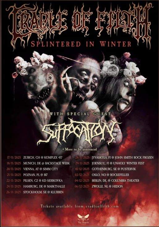 Cradle Of Filth najavljajo termine “Splintered In Winter” turneje za Evropo v letošnjem novembru in decembru, na kateri jih bodo spremljali floridski death metalci Suffocation.