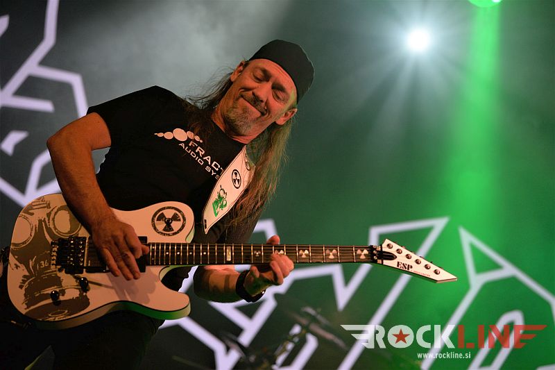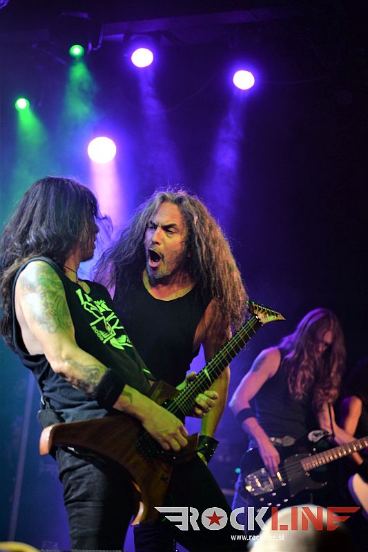 »Night Of The Living Thrash« torej! Nič manj, nič več. Natanko to kar veleva naslov turneje! Pristna in prvinska energija stare šole thrash metala z manifestacijo in v luči eksekucije, ki ti vzbudi v hipu željo čimprejšnje ponovitve! Ali povedano drugače, kdor se tega večera ni znašel v ljubljanski Cvetličarni, se je definitivno moral nekje resno izgubiti!