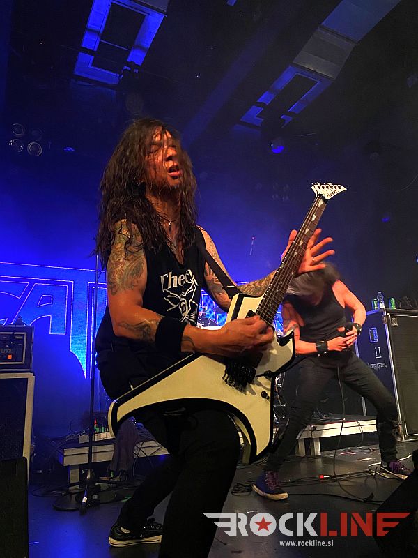 Osegueda se je znova predstavil, kot eden najbolj nalezljivih frontmenov thrash metala. Ne le da je njegov orjaški vokal monstruozno funkcioniral, pač pa je znova razkazal nekaj telovadnih akrobacij, se nenehno rokoval s privrženci v prvih vrstah, z nagovori med komadi pa vztrajno podžigal publiko, da mu je ta jedla iz roke! Koncertni nastop je ne glede na to, da je Mark tokrat govoril več kot običajno, potekal z izjemno dinamiko. Bend nam ni pustil dihati. Zvok zelo dober! V prvih vrstah se je Marka slišalo malo manj, zadaj pa so bili gradniki zvočne slike optimalneje razporejeni!. K temu je treba dodati presunljivo novo predstavo bobnarja Willa Carolla, podprto s stasito bolščavimi linijami bas kitarista Damiena Sissona in mera je polna. Kot britev ostro in usklajeno riffovsko mitraljiranje kitarske naveze Cavestany/Aguilar pa ostaja svoje sorte štorija. Tokrat so Death Angel sklepni klasiki prvenca The Ultra Violence pripeli »The Art Of Dying« klasiko, to je bodičasto, skrajno porogljivo in pogubno Thrown To the Wolves ter dostavili svoj finalni kroše.