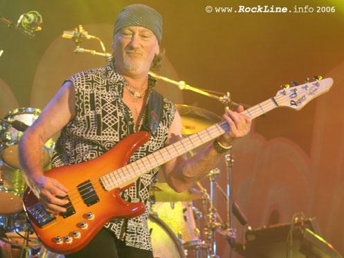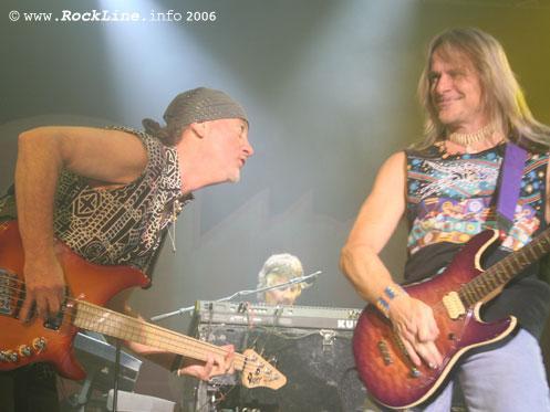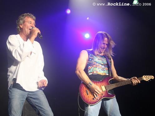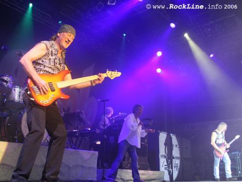Kakšen uvod pripravlja naš stari dobri Paice? Bo znova solistično stopnjeval uvodni ritem in nas odpeljal v Highway Star ali? Tu so! Narod jih bučno pozdravi! Paicev “rolling” in? Fantje vpadejo v Pictures Of Home. Štimunga je bila praktično takoj “s prve” perfektna. Klasika je izpadla nostalgično in sam začetek je napovedal, da bo tokrat koncertno druženje z legendami, tisto pravo. Skupina ni dolgo čakala s predstavitvijo lani izdanega albuma “Rapture Of The Deep” (2005) in nadaljevala ognjevito s Things I Never Said. Sledili sta klasiki Hush ter Strange Kind Of Woman in prvi občutek se je izkazal za pravega. Zlasti je presenetil Ian Gillan, ki je prvo kot prvo naredil nov velik osebnostni korak in shujšal tako, da je izgledal neverjetno postavno, kot da bi možakar štel 40 let manj, kot jih ima sicer. Letos bo napolnil 61 let (20.08.2006 in uganka za čarovnice: Maybe he is a leo,… or maybe he is not…) in odlično se drži. Res da Gillan ni več dolgo Gillan sedemdesetih kar se vokala tiče, pa dobro. Kdo pa danes še je izmed njegovih vrstnikov v formi iz sedemdesetih? Glenn Hughes verjetno edino. Še kdo? Skratka možakar je spretno krmilil skozi vokalne glasbene forme in pazil, da v visokih tonalitetah ohranja moč vokala, tako da je močno skrajšal “screame”, ali pa jih je z improvizatorsko žilico zvozil v globji tionaliteti. Skratka spretno rutinsko izkušeno. Vselej nasmejani Ian Gillan nas je nekajkrat dodobra nasmejal med koncertom s svojimi izjavami, posebno pa takrat, ko je med Lazy in kasneje v nadaljevanju (je bil to Space Truckin’) namesto “screamov”, “kokodajsal”. Odlično je del komad Rapture Of The Deep, ki je nekakšen adekvat ali novodobni Perfect Strangers. Z dobršno mero simfonične epskosti, odet v arabski melos, je prvikrat zresnil prisotne in jih popeljal v kratko stanje transa, zlasti v izhodnem delu. Sledila je vrnitev na realna tla z najboljšo možno izboiro. Legendarno našponano kanonado Fireball, ki se je po desetih letih znova znašla na set listi. To je bil prvi mini vrhunček koncerta. Tudi Steve Morse se je razživel med to pesmijo in svojo razpoloženjskost je od tu naprej skozi koncert le še stopnjeval. Glover je konstantno podžigal publiko in fantje so delovali kot, da so prišli dejansko uročiti in spremeniti v prah Wiesen. Igrali so na polno in na odru vidno uživali ob pogledu na nabito dvorano v kateri so se pod njihovimi klasičnimi takti kobalile glave naokoli. Kako so Purple še danes priljubljeni in popularni je dokazoval zlasti Ian Gillan, ki mu je uspelo s sleherno gesto ali gibom spraviti ljudi pod odrom k sodelovanju. Narod je prepeval s skupino, hkrati pa je na znak Gillana usklajeno vihtel roke v zrak, kadarkoli se je Gillan za to odločil (sploh med divjimi Aireyevimi solažami na klaviaturah).