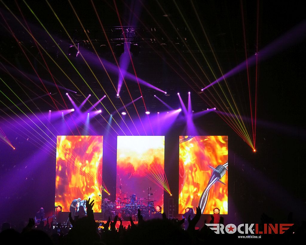 Osvežitev presahlih grl in uvodni film v drugi del koncerta nas popelje znova v parter Arene! Ta je minil še hitreje od prvega. Bend je uvodoma napovedal izid šestnajstega studijskega albuma “Parasomnia” (izšel bo februarja 2025) ter izvedel v fraziranju mračno in nabrito koračnico Night Terror. V tem delu je bend podžgal publiko zlasti z skorajda nadobvezno Under A Glass Moon ter še dvema zapovrstnima “Train Of Thought” šrapneloma (Vacant, Stream Of Conciousness). Vse je bilo pripravljeno na vrhunec. Octavarium! 24. minutna epska simfonija. Progresivnometalska kača, kjer je bend dejansko znova v vsem opravičil tisti rek, ki se ga od nekdaj drži, ko prideš na njihov koncert: “Nemogoče je mogoče”! Na njihovih koncertih postane prav vse mogoče. In da. To je treba slišati (in videti), ker besed, ki bi korektno približale vse tisto kar se zgodi v tem ‘sistemsko urejenem kaosu’, človeštvo preprosto še ni izumilo. Niti niso potrebne. Vibracija stori svoje! Naravnost povedano – ‘bolAAAAno in do konca utrgano’!